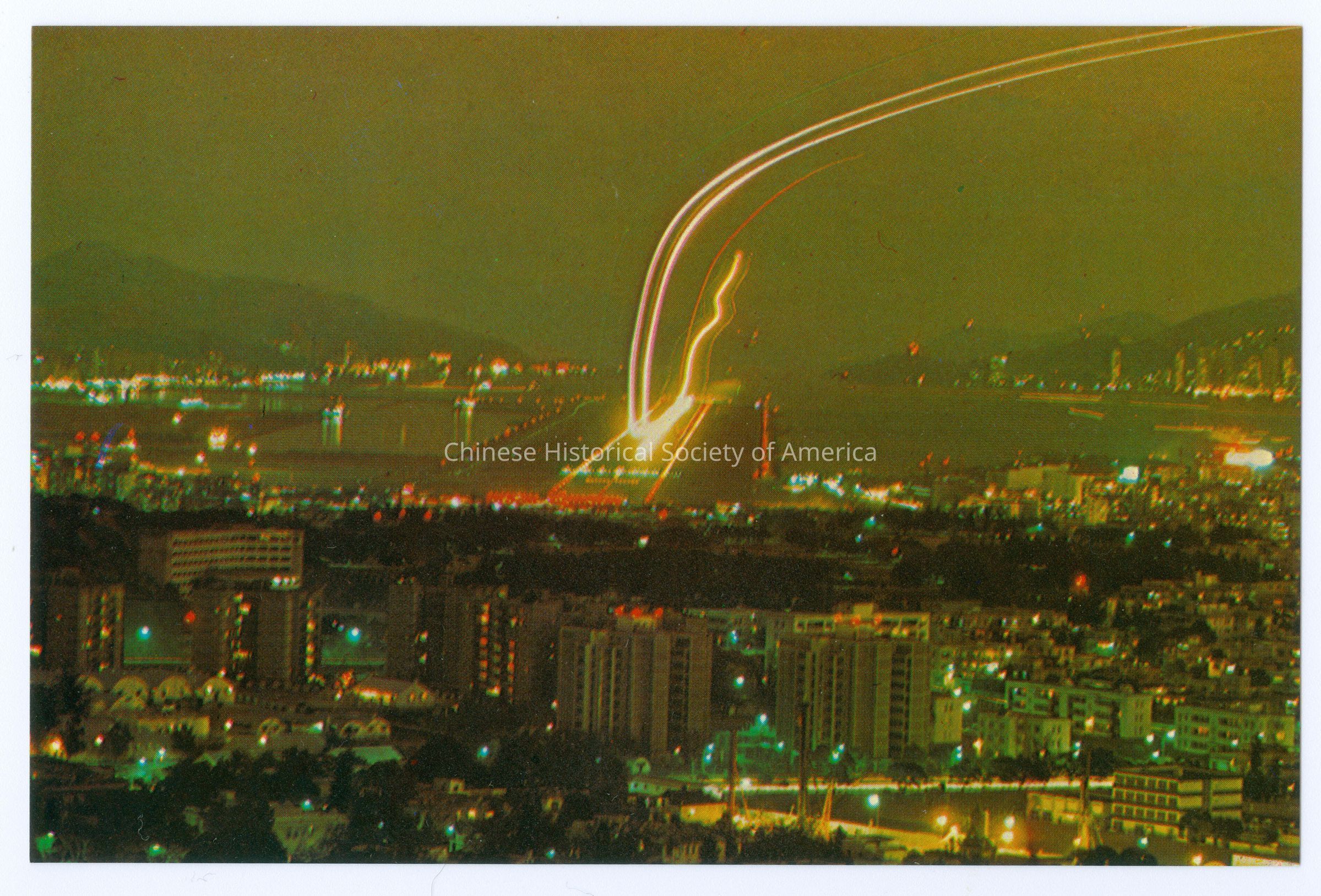 Postcard Set, China, Hong Kong, View of Plane Making a Night Landing at KaitakEntry/Object ID
