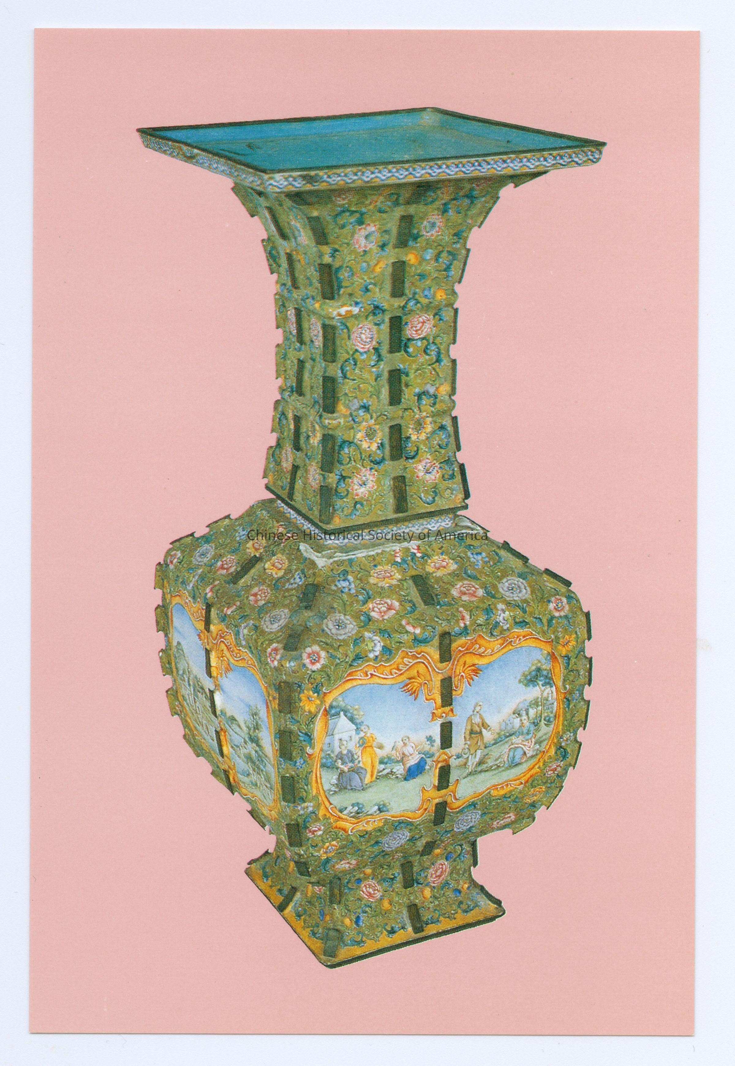 Painted-enamel vase with decor of Western-style figures. Ch'ien-lung period (A.D. 1736-1795).Ch'ing dynasty.Dimensions