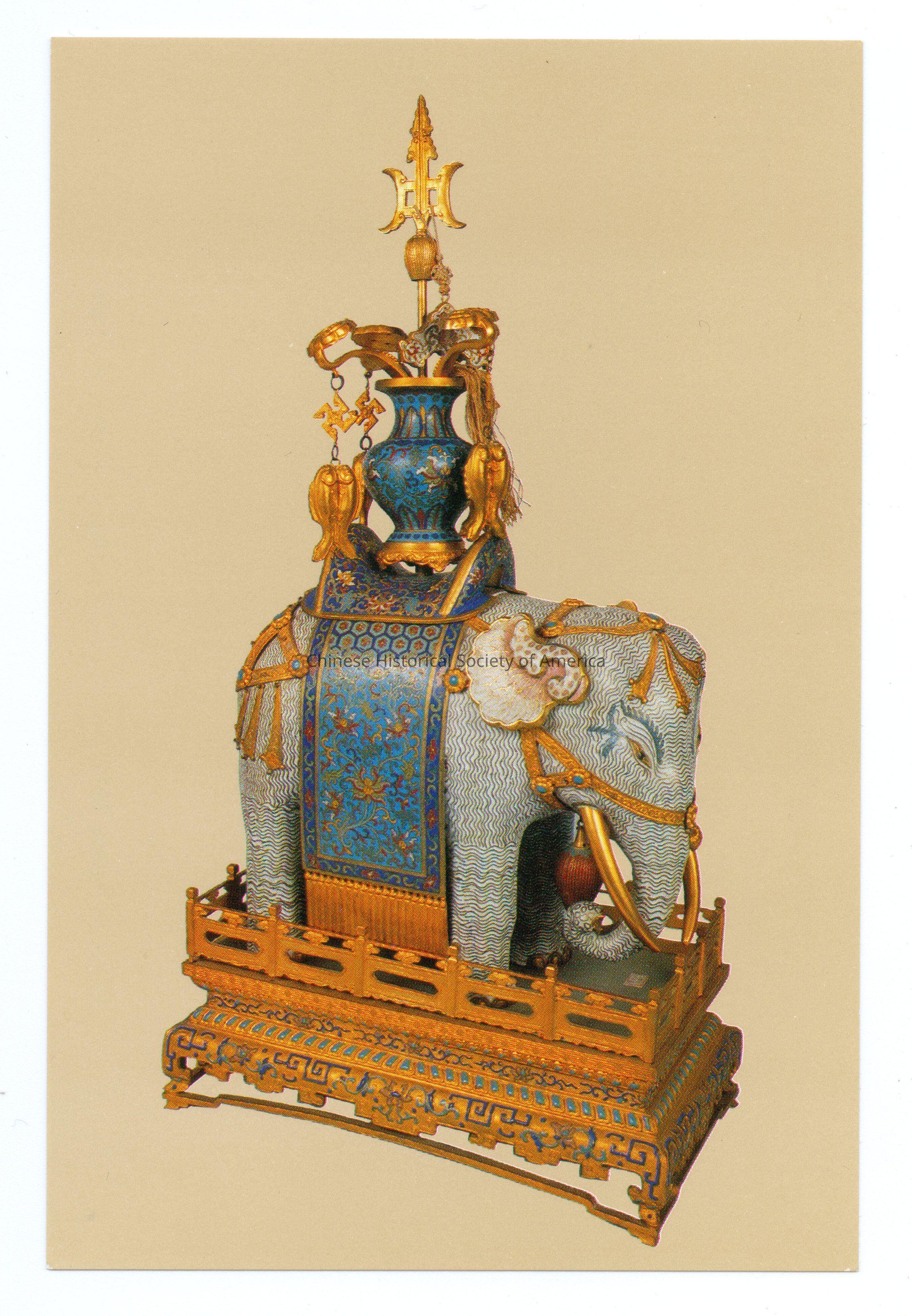 Cloisonne elephant with a vase on its back. Ch'ing dynasty (A.D. 1644-1911).Dimensions