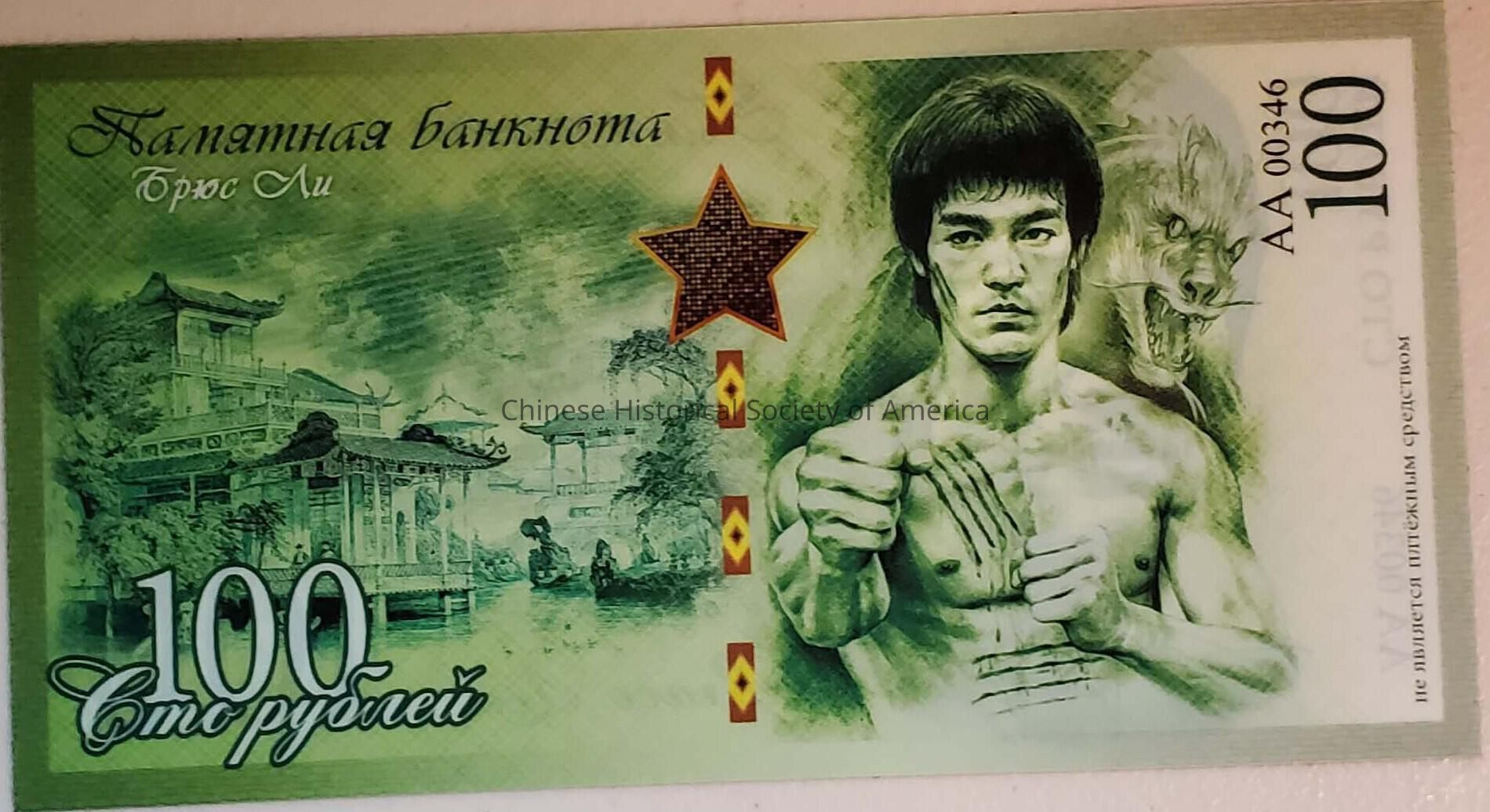 100 CTO Ruble bank note with image of Bruce Lee on it. 100 CTO equals approximately $1.00 USDContext