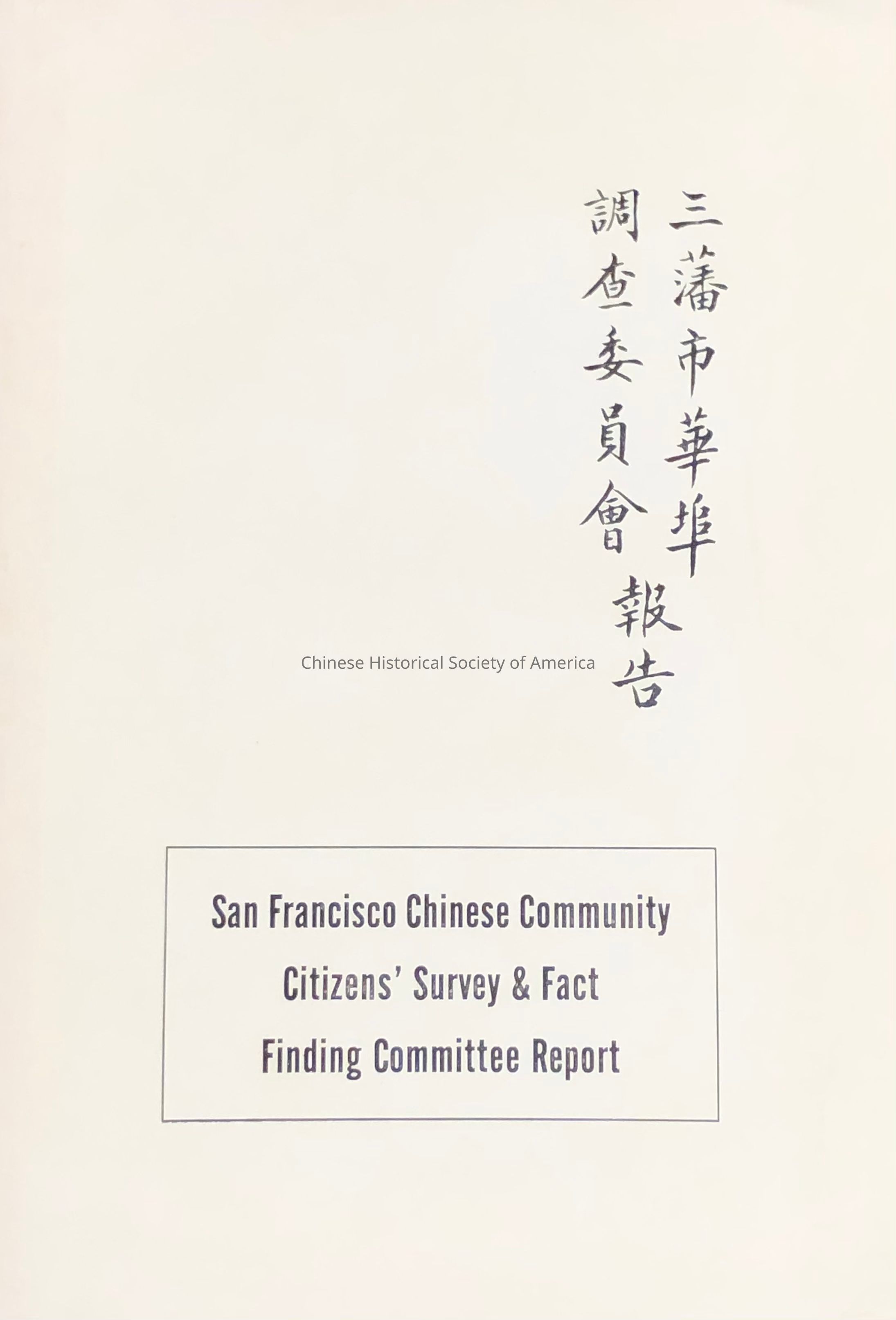 San Francisco Chinese Community Citizens' Survey & Fact Finding Committee ReportEntry/Object ID