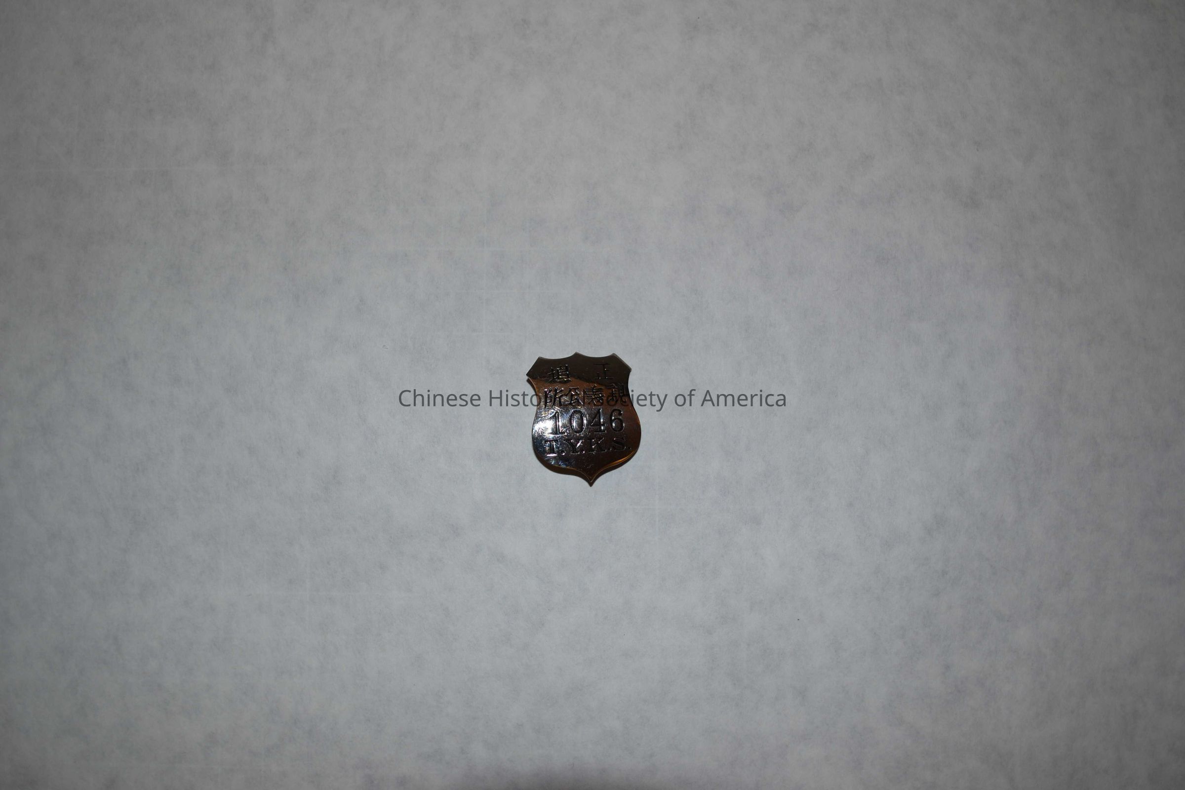 a shield-shaped badge with words 1046 T.Y.K.S