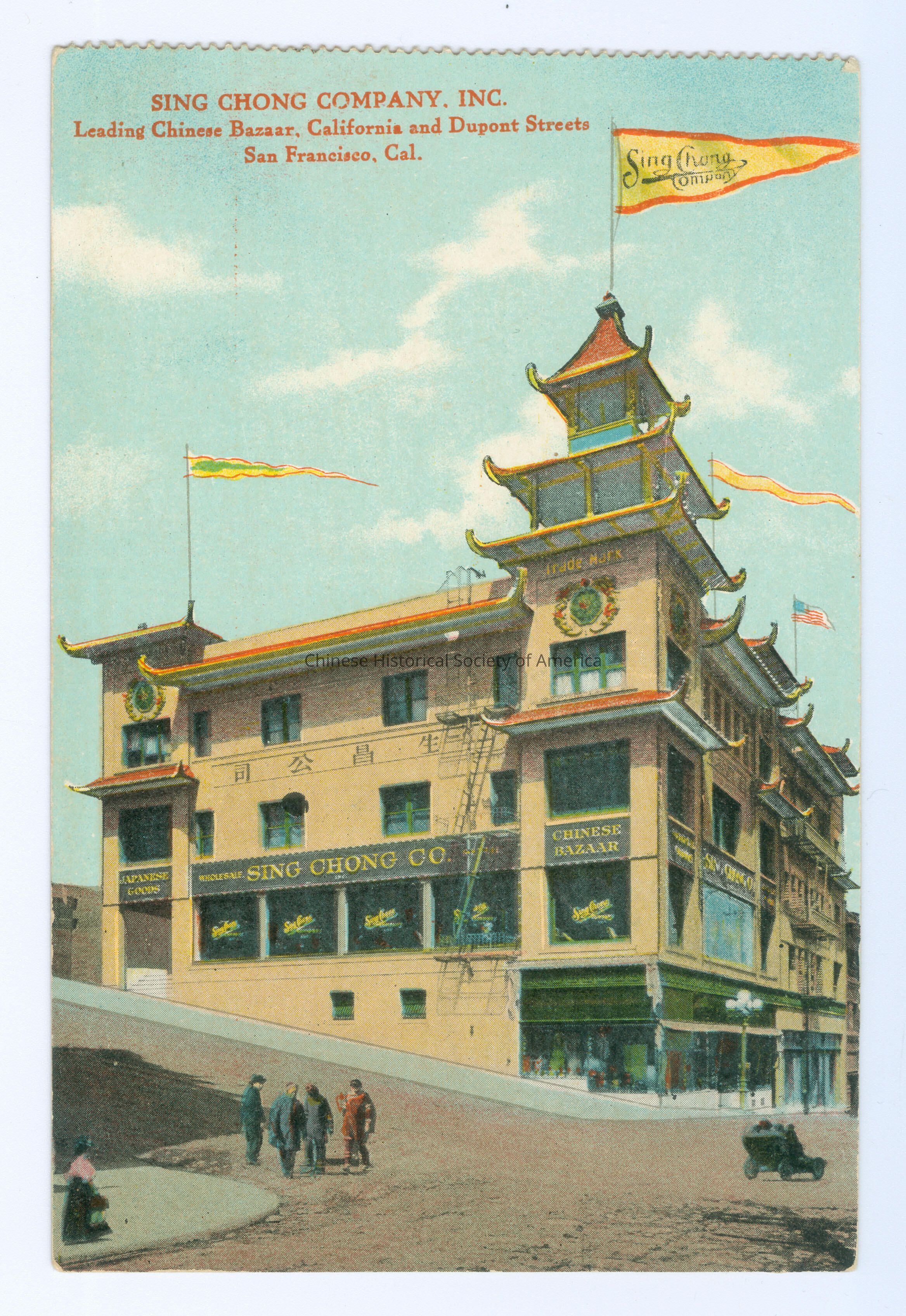 Front: Caption: "Sing Chong Company, Inc. Leading Chinese Bazaar, California and Dupont Streets San Francisco, Cal." Back: Old Accession #: N/A