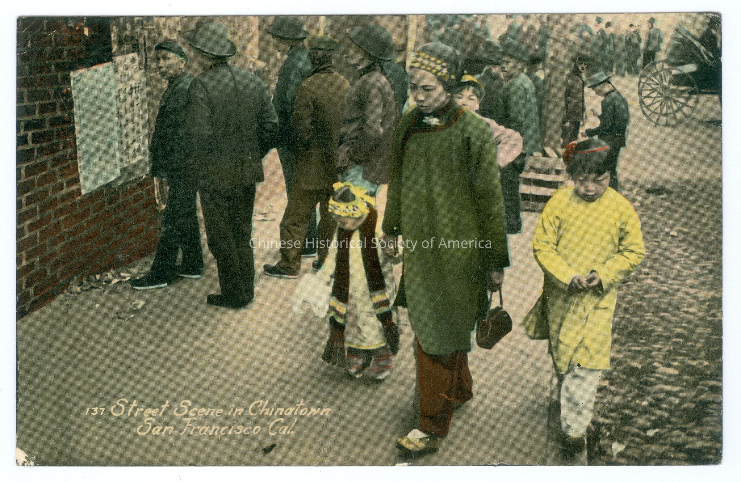 Front: Caption: "137 Street Scene in Chinatown San Francisco Cal." Back: "14095-Pub. By Richard Behrenst, San Francisco, Cal." Old Accession #: N)