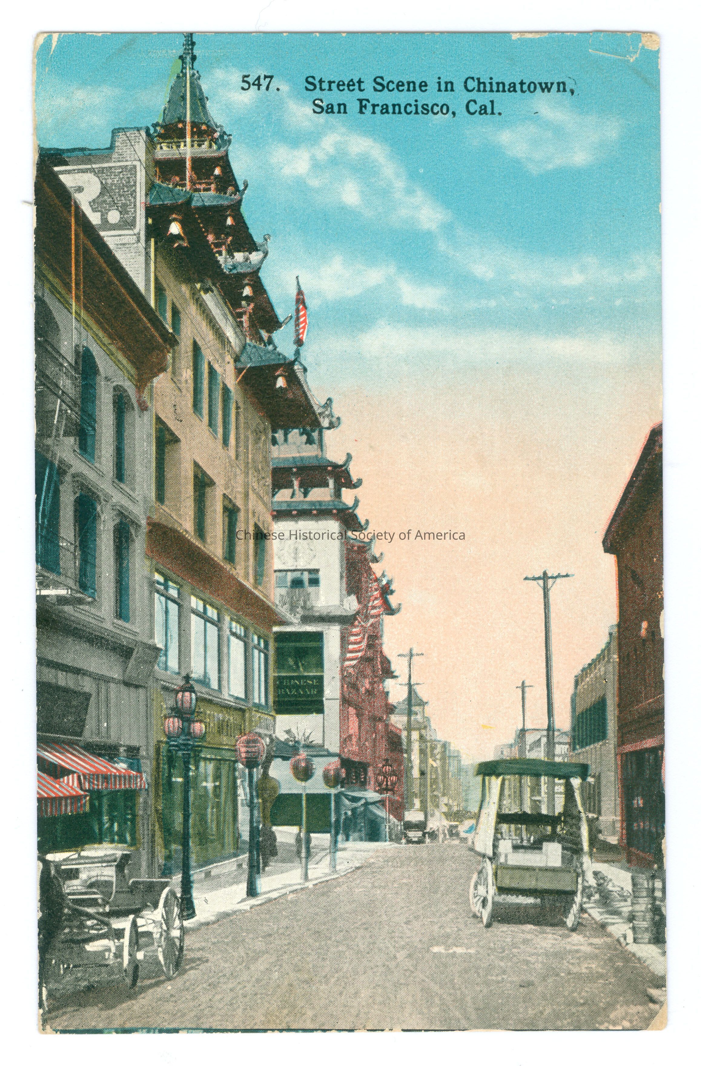 Front: Caption: "547. Street Scene in Chinatown, San Francisco, Cal." Back: "B"; "Bought 12/17/78-)EF", handwritten in pencil. Old Accession #: )EF