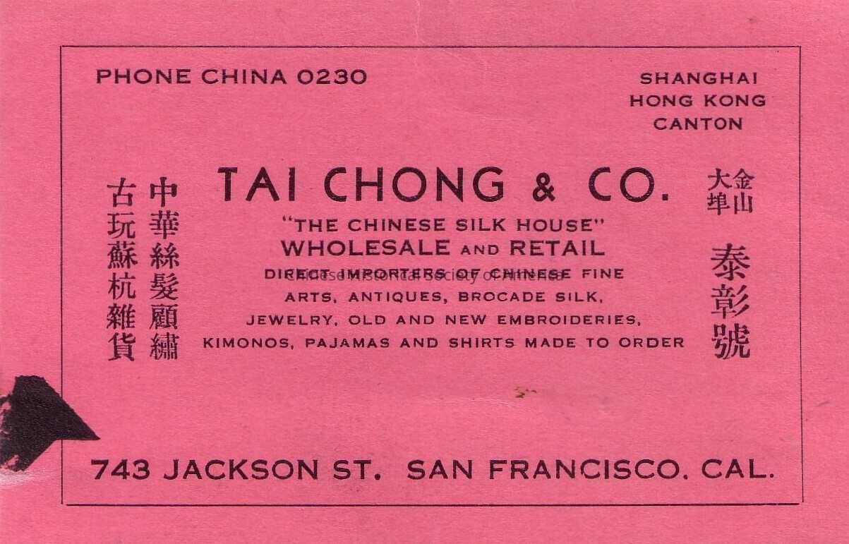 TAI CHONG & CO "The Chinese Silk House"