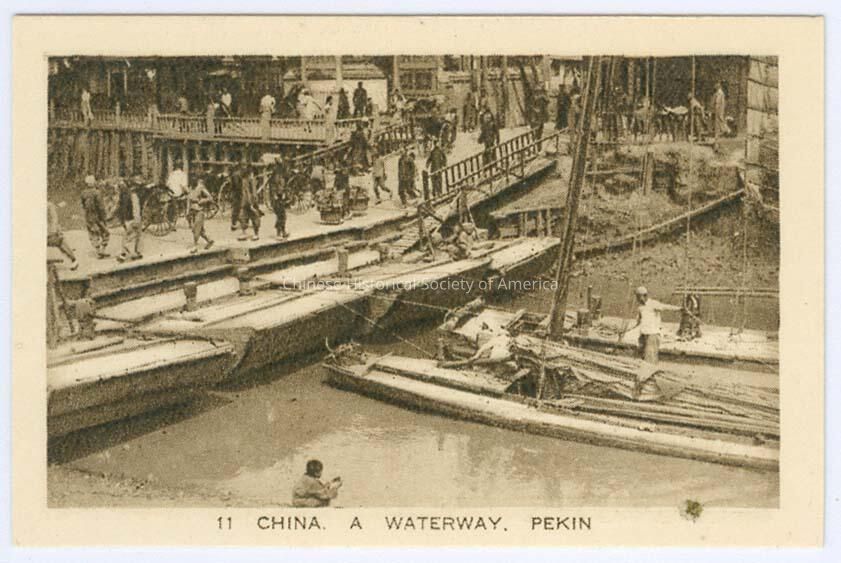 B&W. Photo. England; London; M.E. Notaras Ltd.: Front: Caption: "11 China. A Waterway, Pekin." Back: "Silver Car Cigarettes A Good Quality Virginia Cigarette Made By M.E. Notaras Ltd. London", there is an illus. of cigarettes in a canister. Old Accession #: N/A