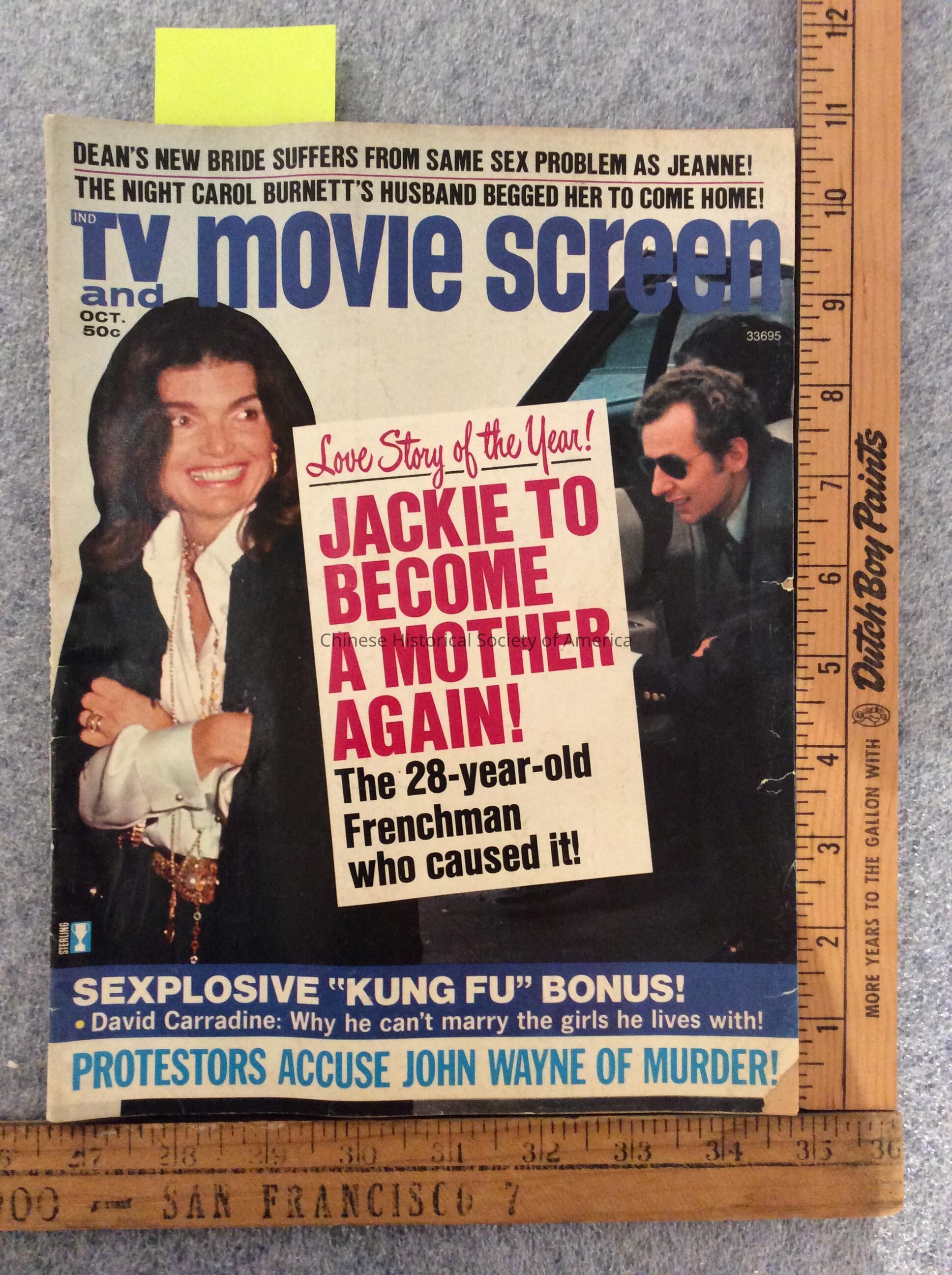 "TV and Movie Screen" at the top of the front cover, Jacqueline Kennedy featured at the left side of the front coverDimensions