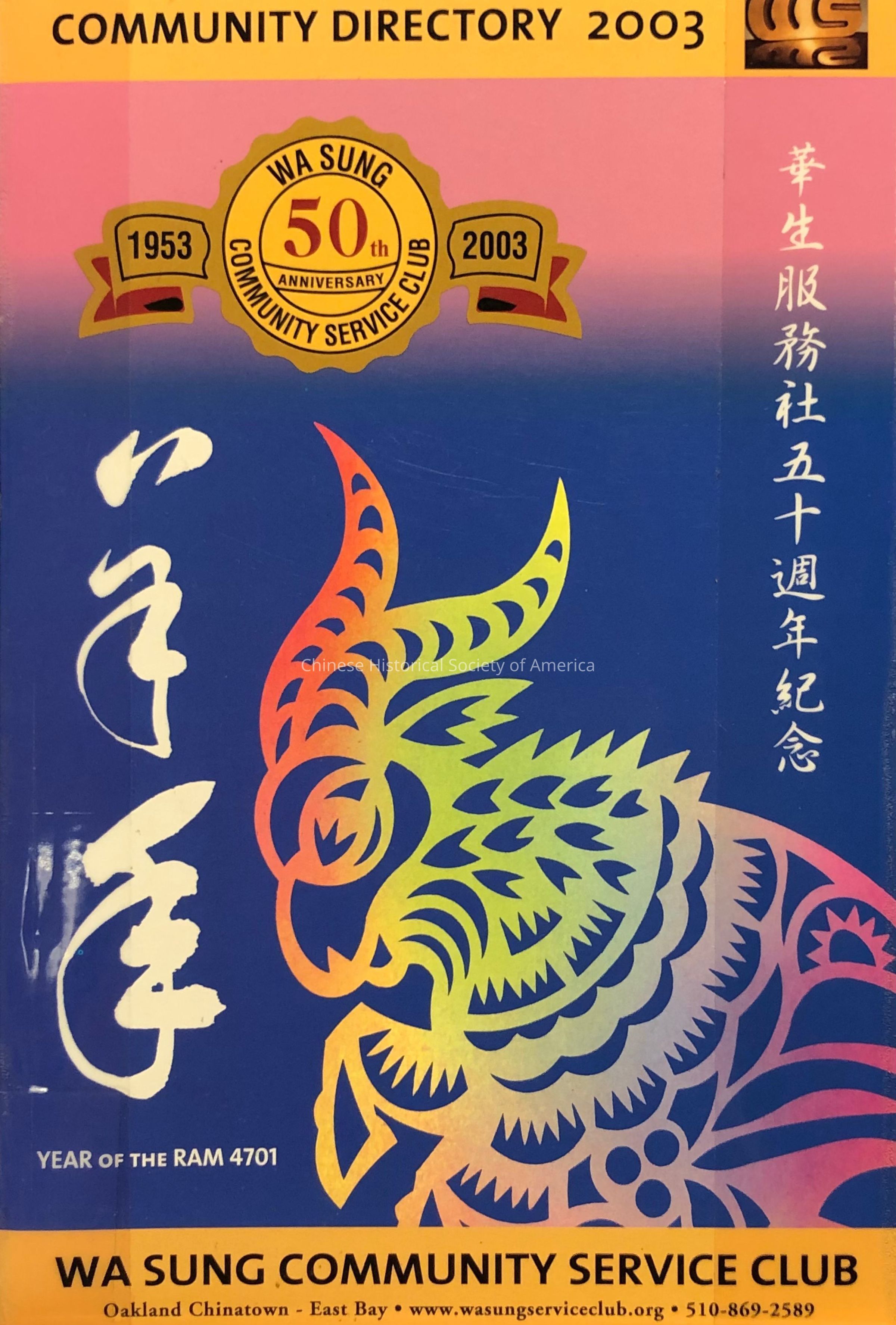 Wa Sung community directory for 2003 in Oakland's Chinatown.Dimensions
