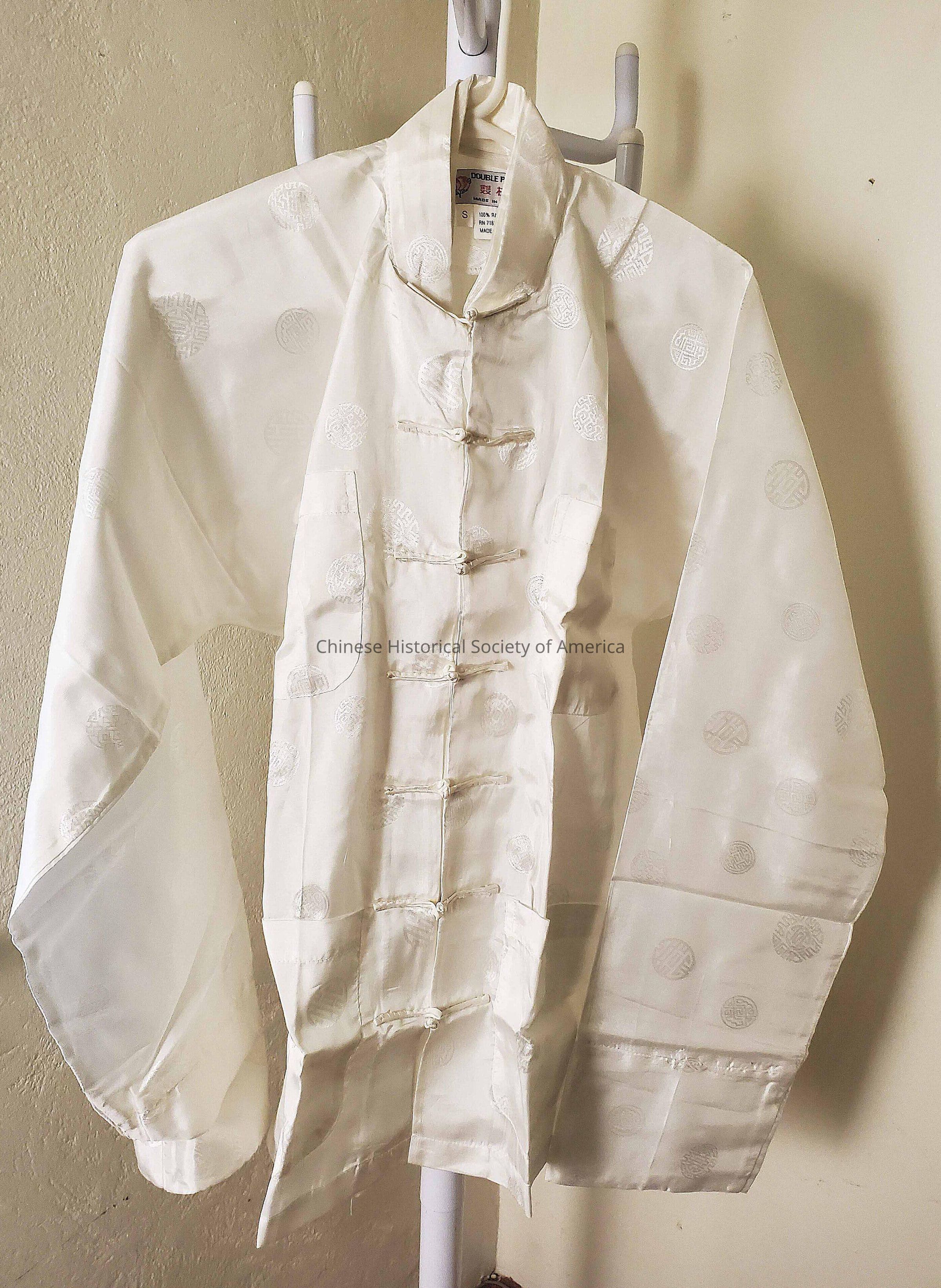 Chinese style white shirt to be used under the blue silk jacket when displayed