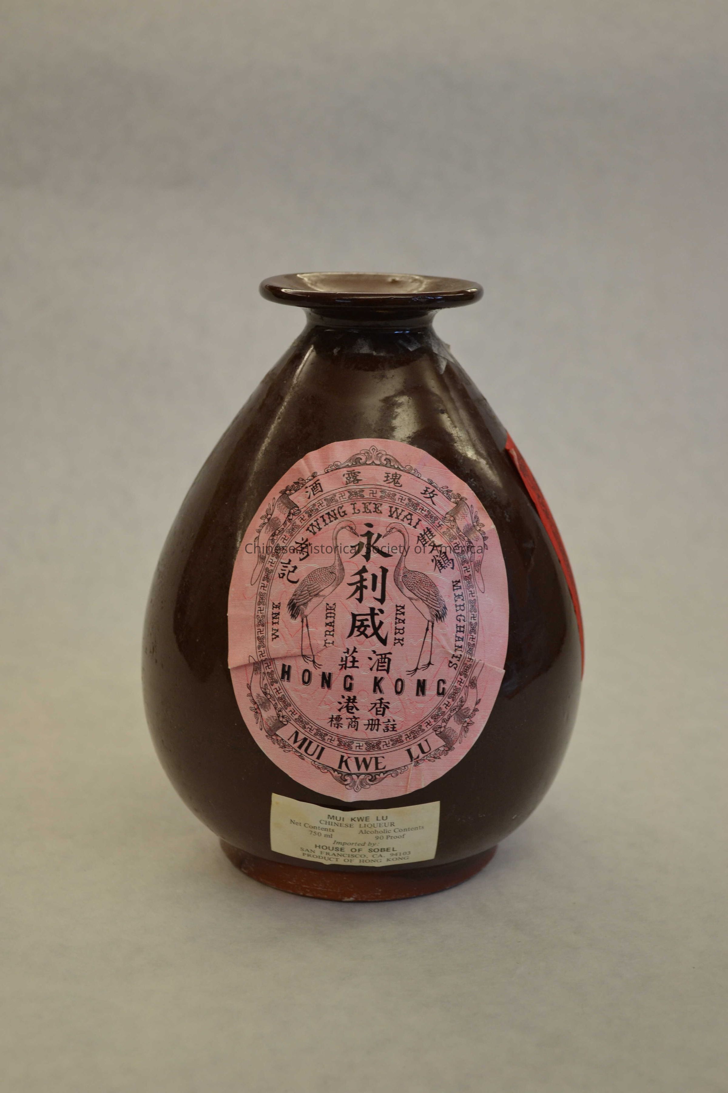Brown bottle with label "Wing Lee Wai, trademark Hong Kong" It was a drink that was in high demand, but the distribution of this drink stopped when it was smuggled into America.Dimensions