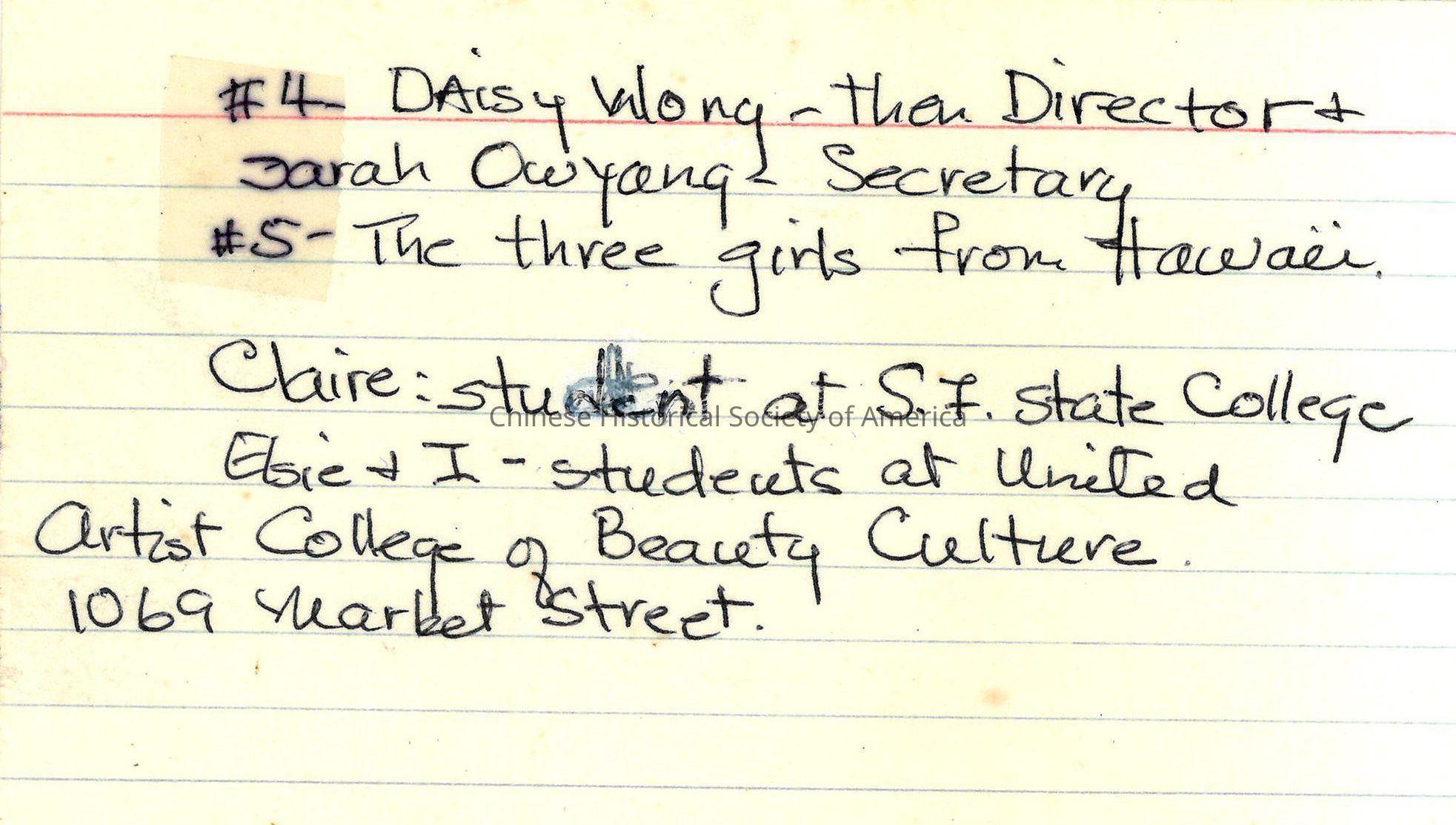 YWCA index cardEntry/Object ID
