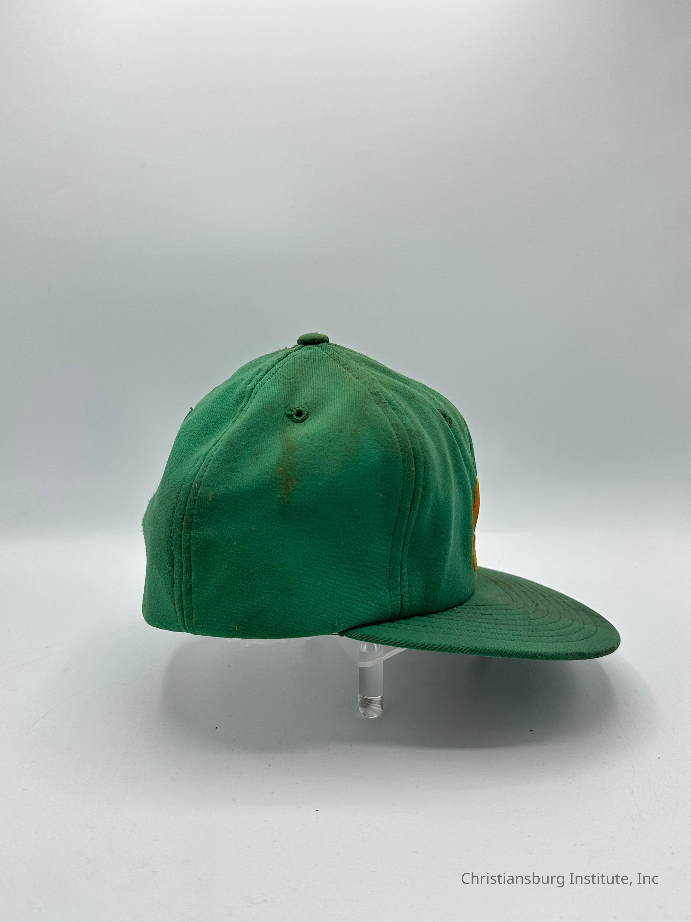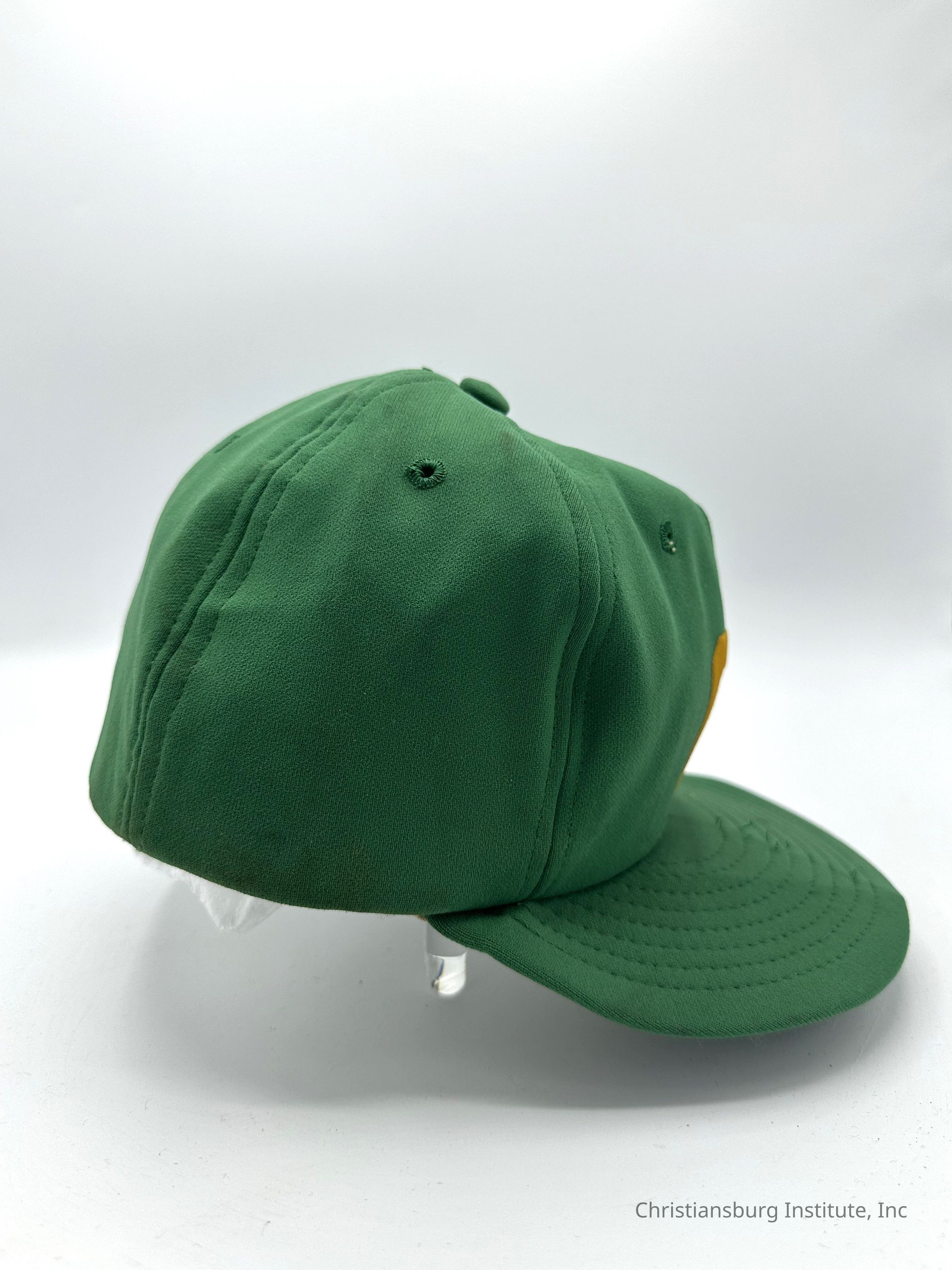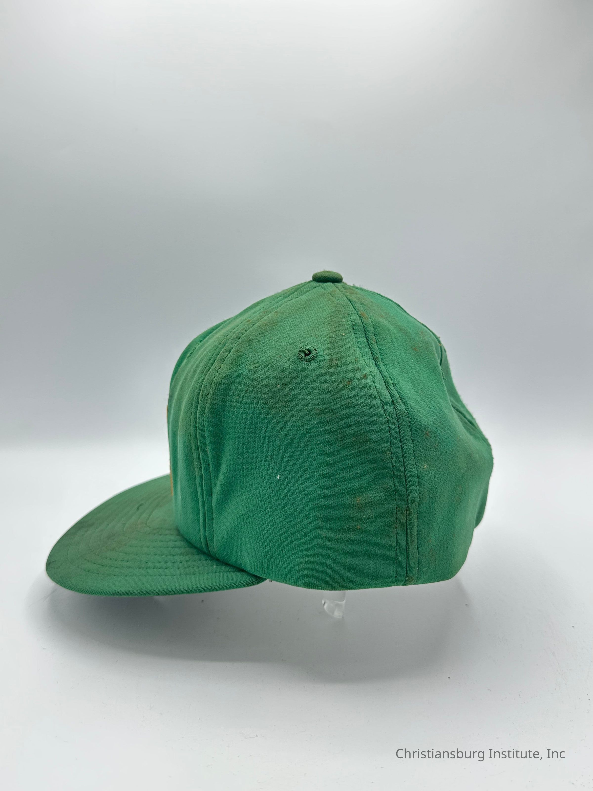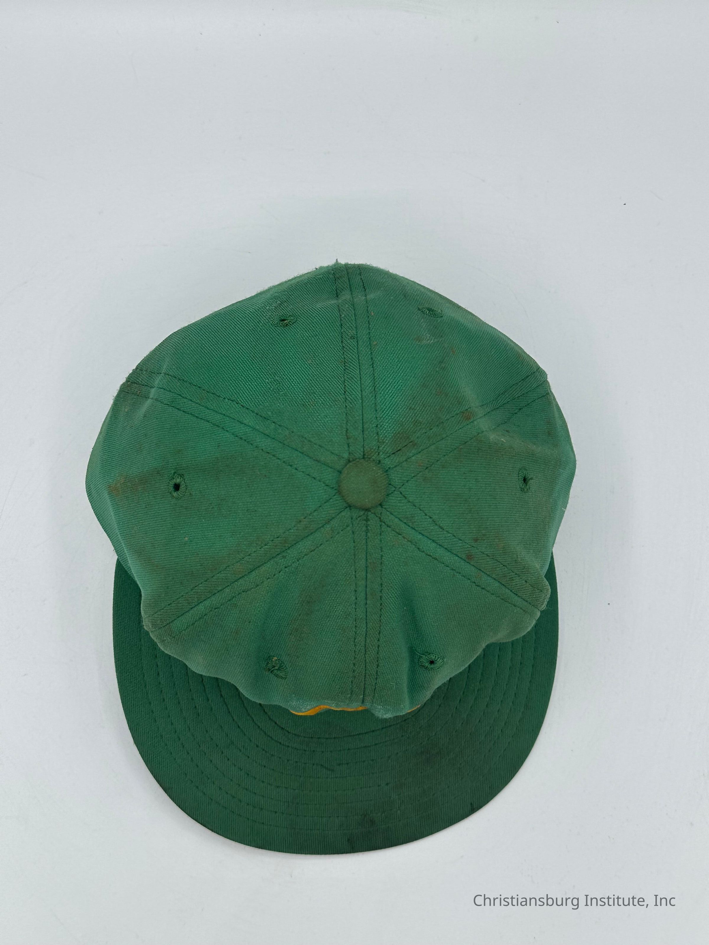 Two green baseball caps made by Stevens Caps with the letters CI on the front of the cap, undated.Collection