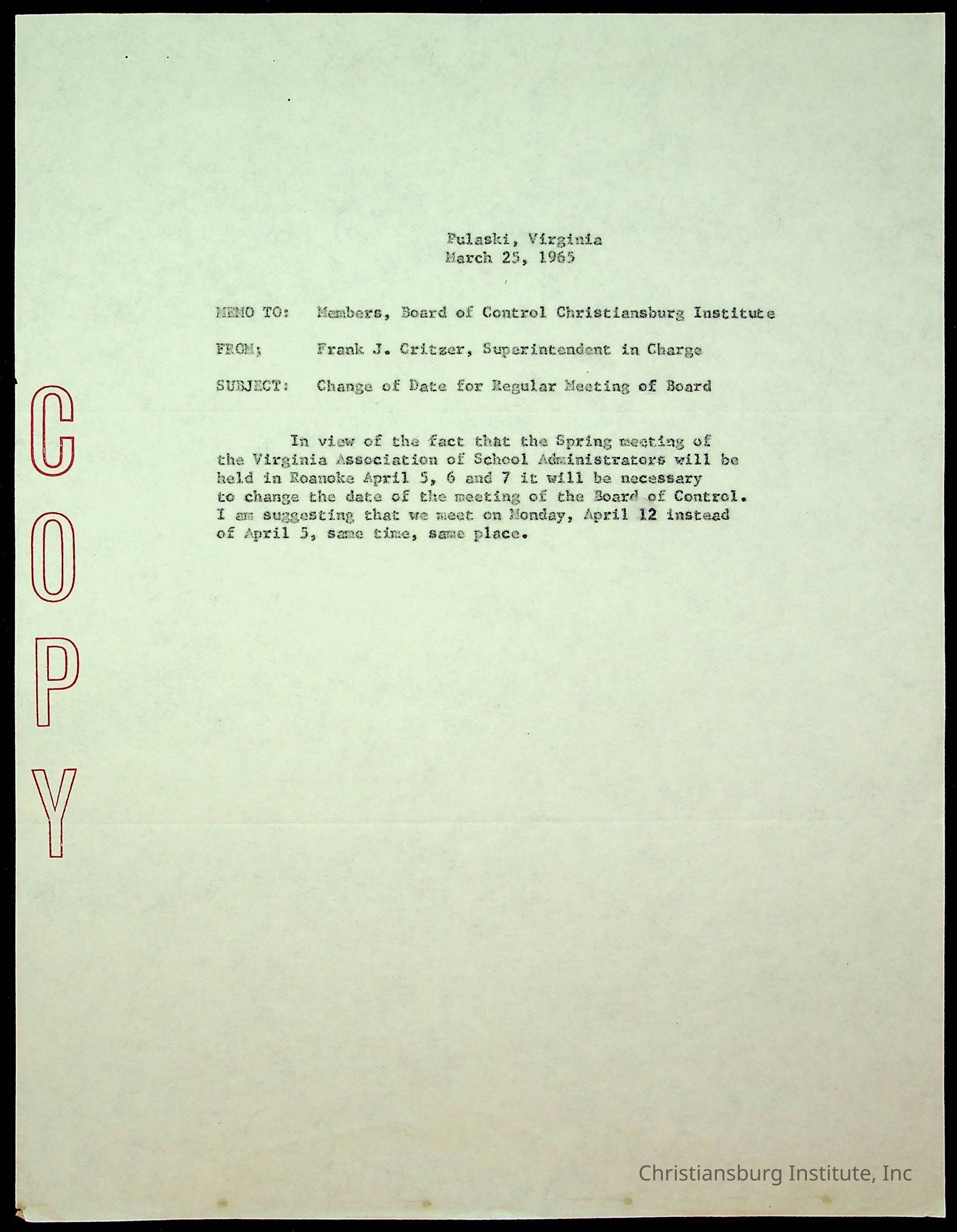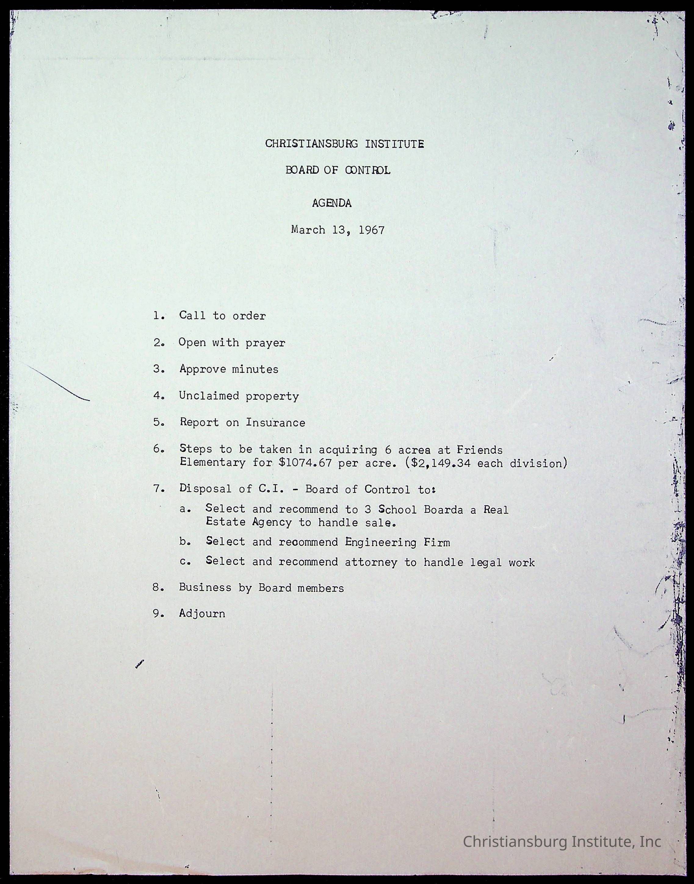 An archive of miscellaneous financial documents that relate to Christiansburg Institute, circa 1960s including; correspondences, loan documents, board meetings, and notes.Collection