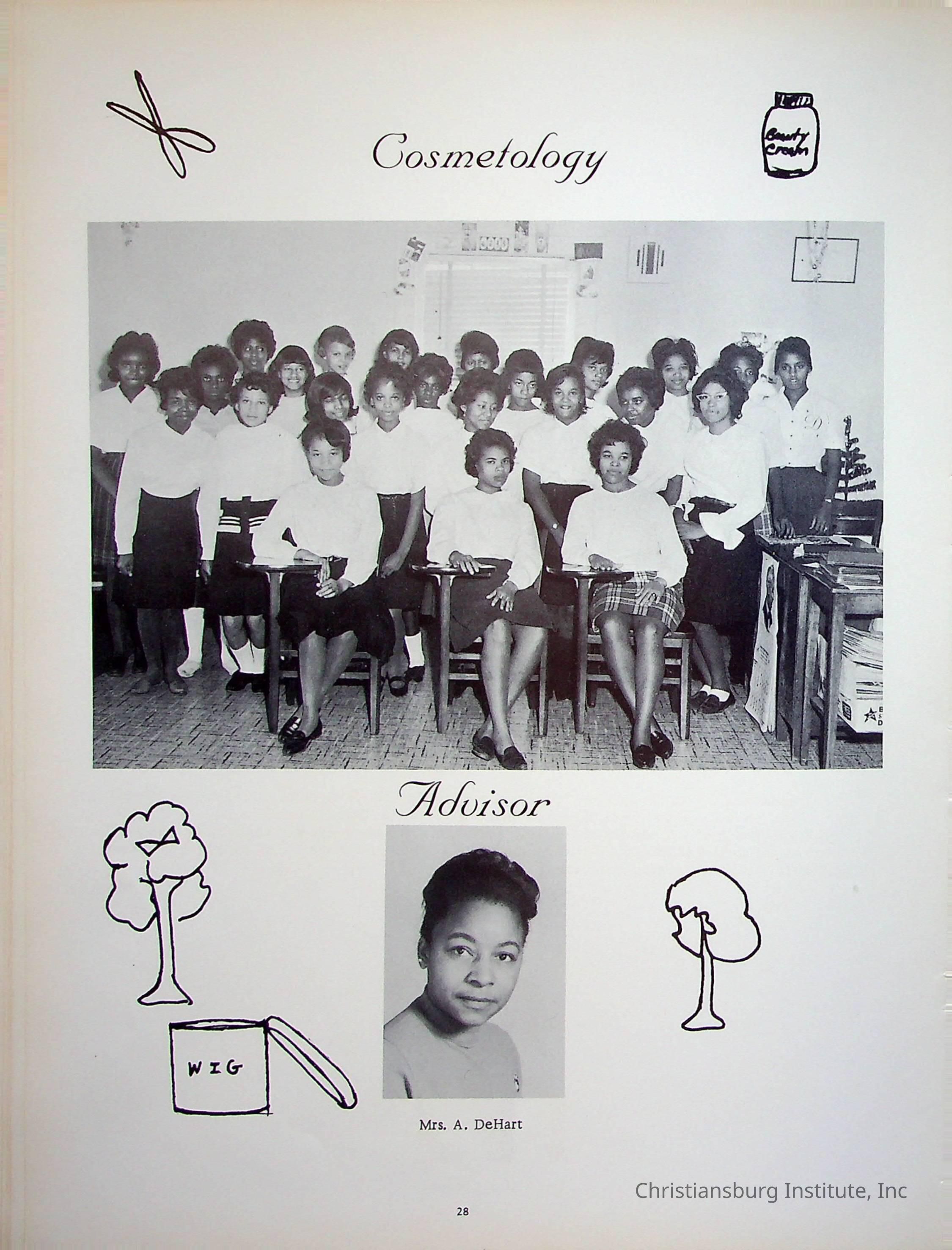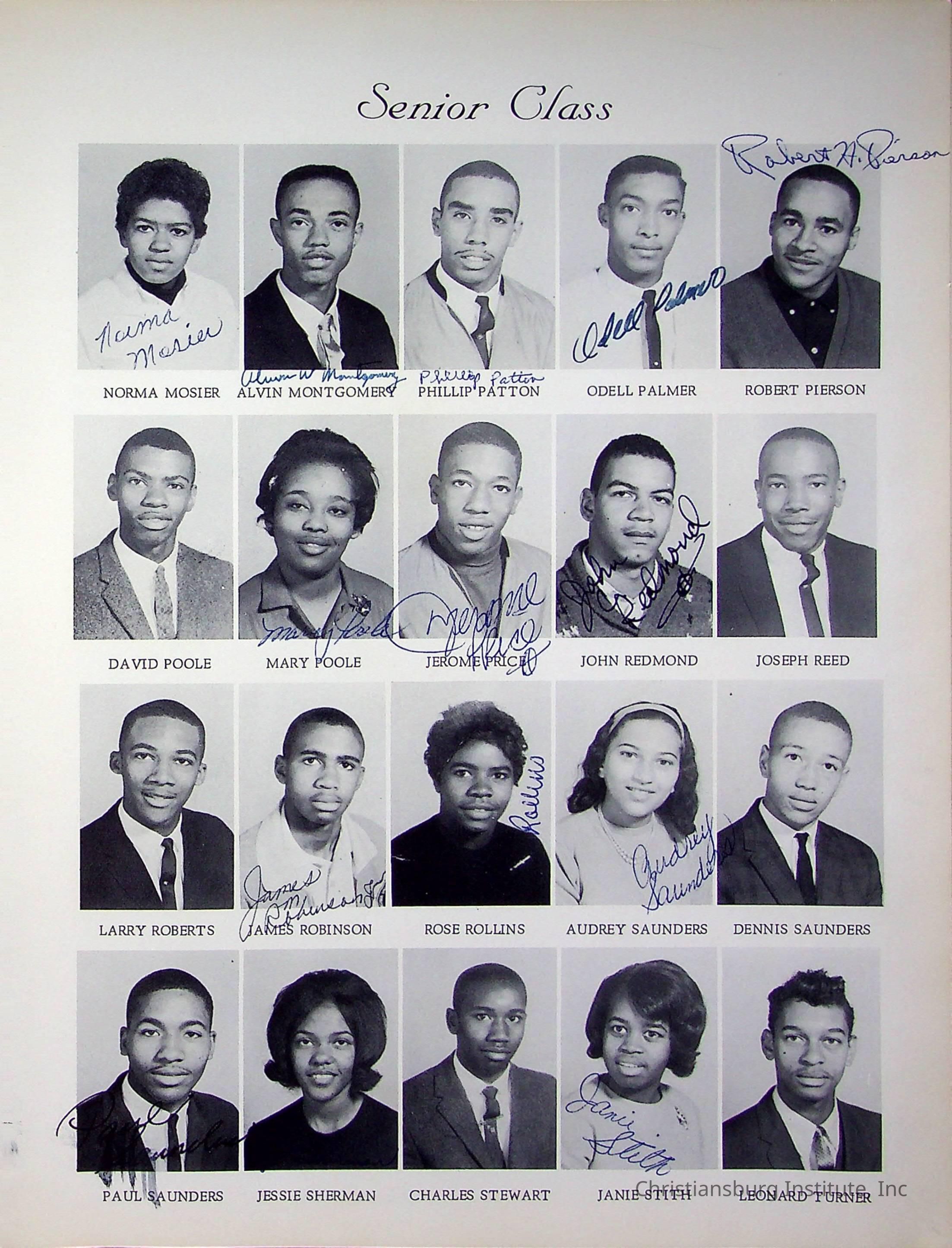 Tigers the Christiansburg Institute yearbook from the year 1965. The 1954 yearbook includes photos of faculty and staff, clubs, and classes. Z. S. Holmes' name is written inside the front cover.