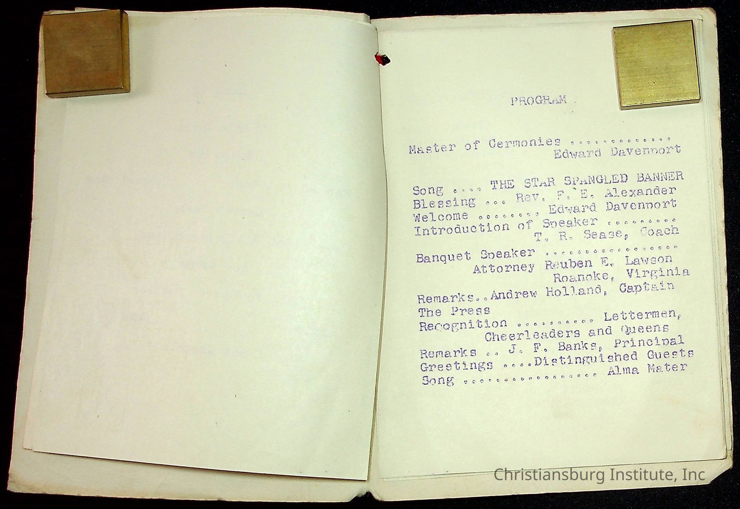 A second copy of an event program for the Second Annual Banquet at Christiansburg Institute on February 10th, 1950.Collection
