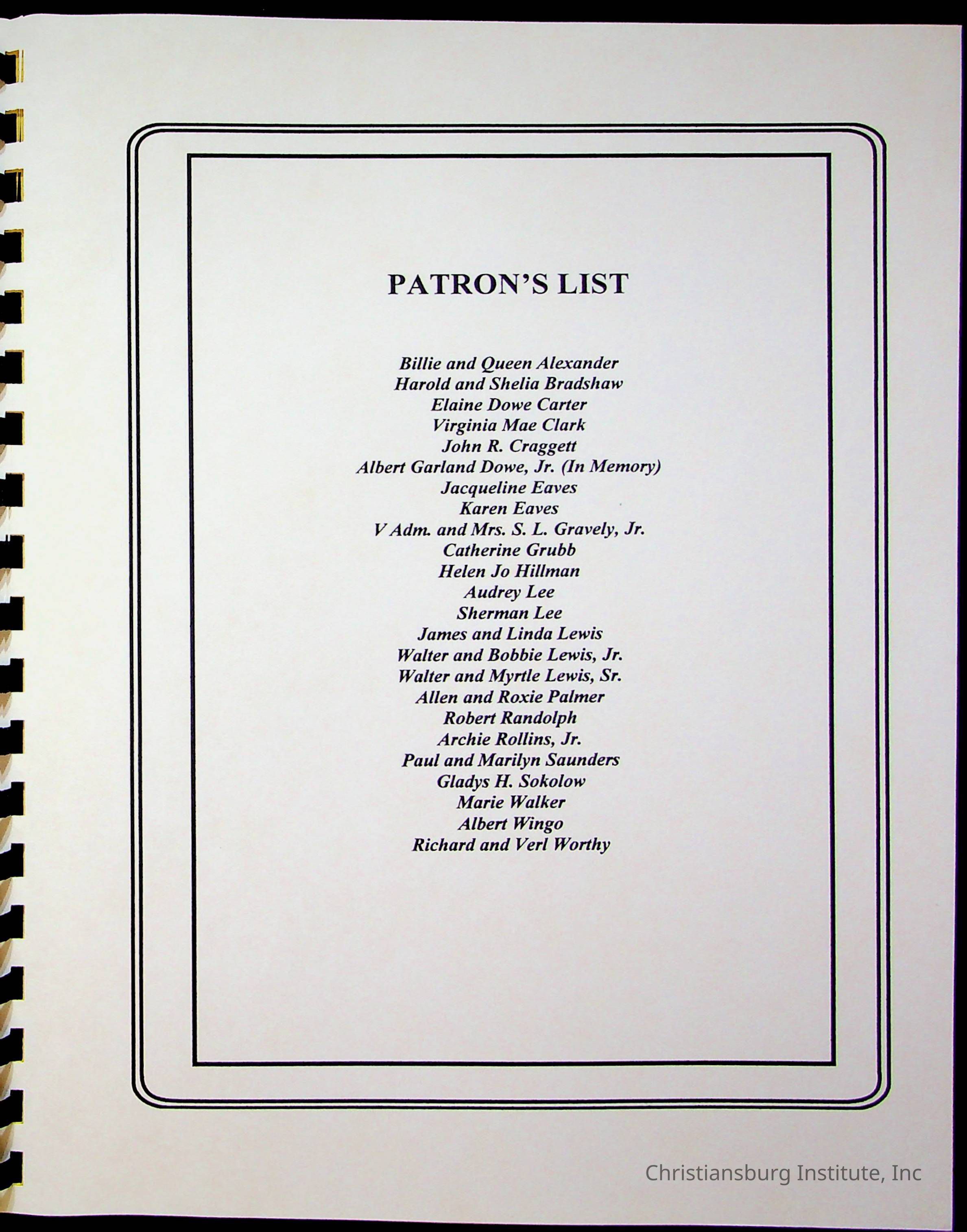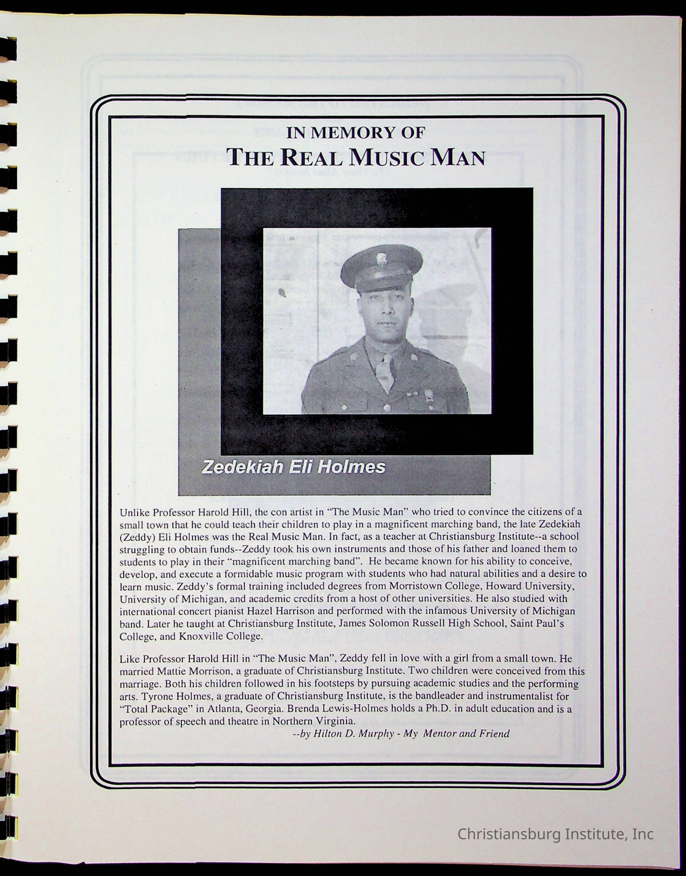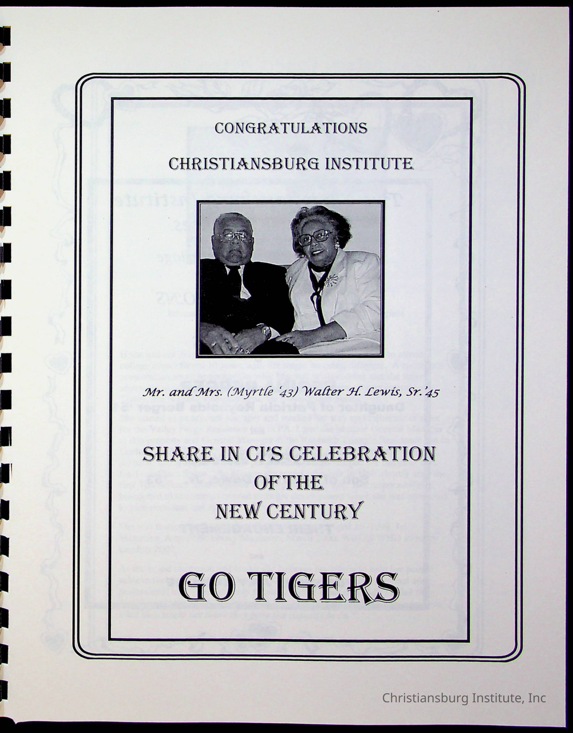 The official program and souvenir book for the Christiansburg Institute Alumni Association reunion that took place on July 1st-2nd 2000 at the Best Western Red Lion Inn in Blacksburg, Virginia.