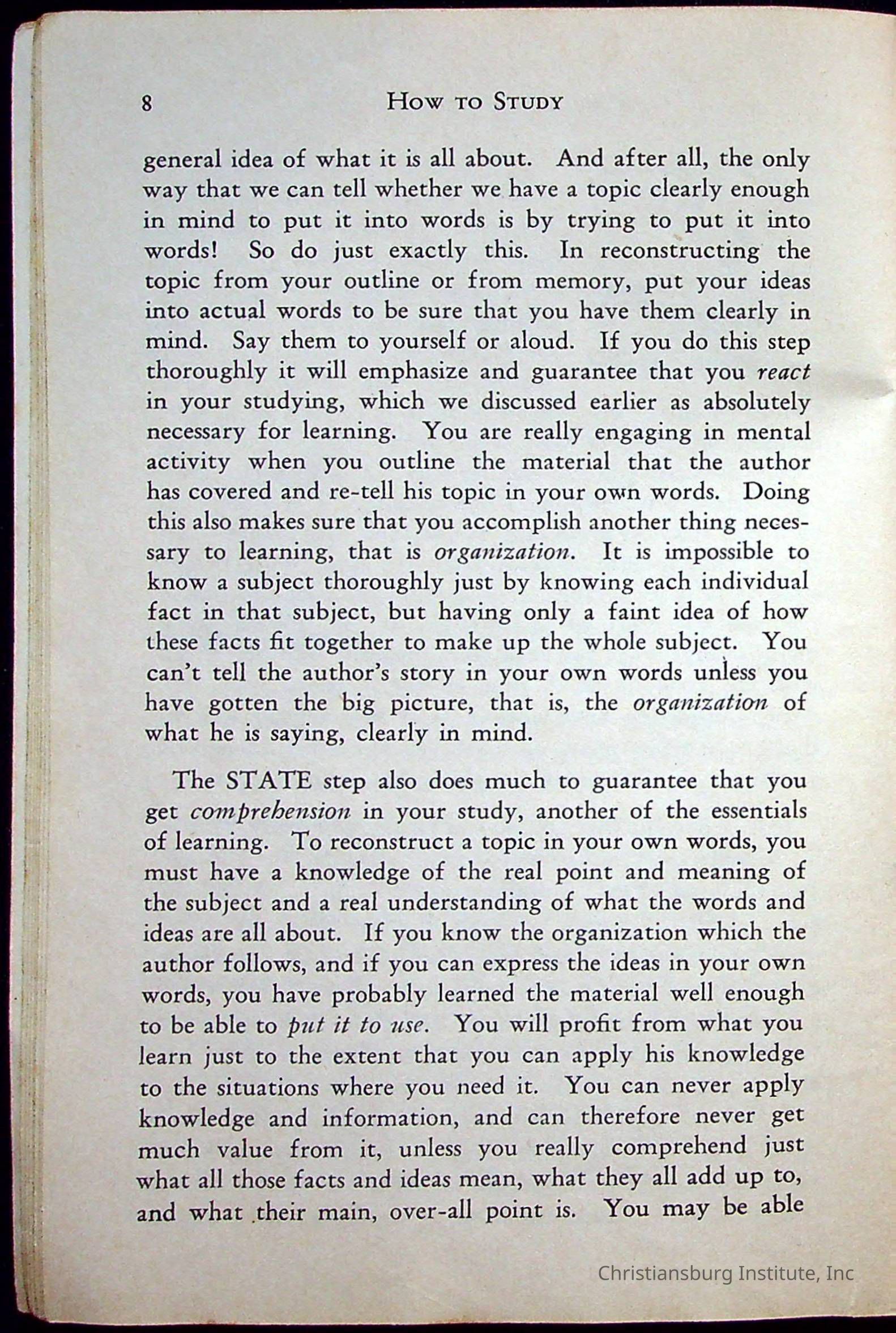 How To Study, Staton 1959Description