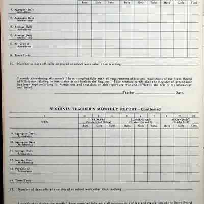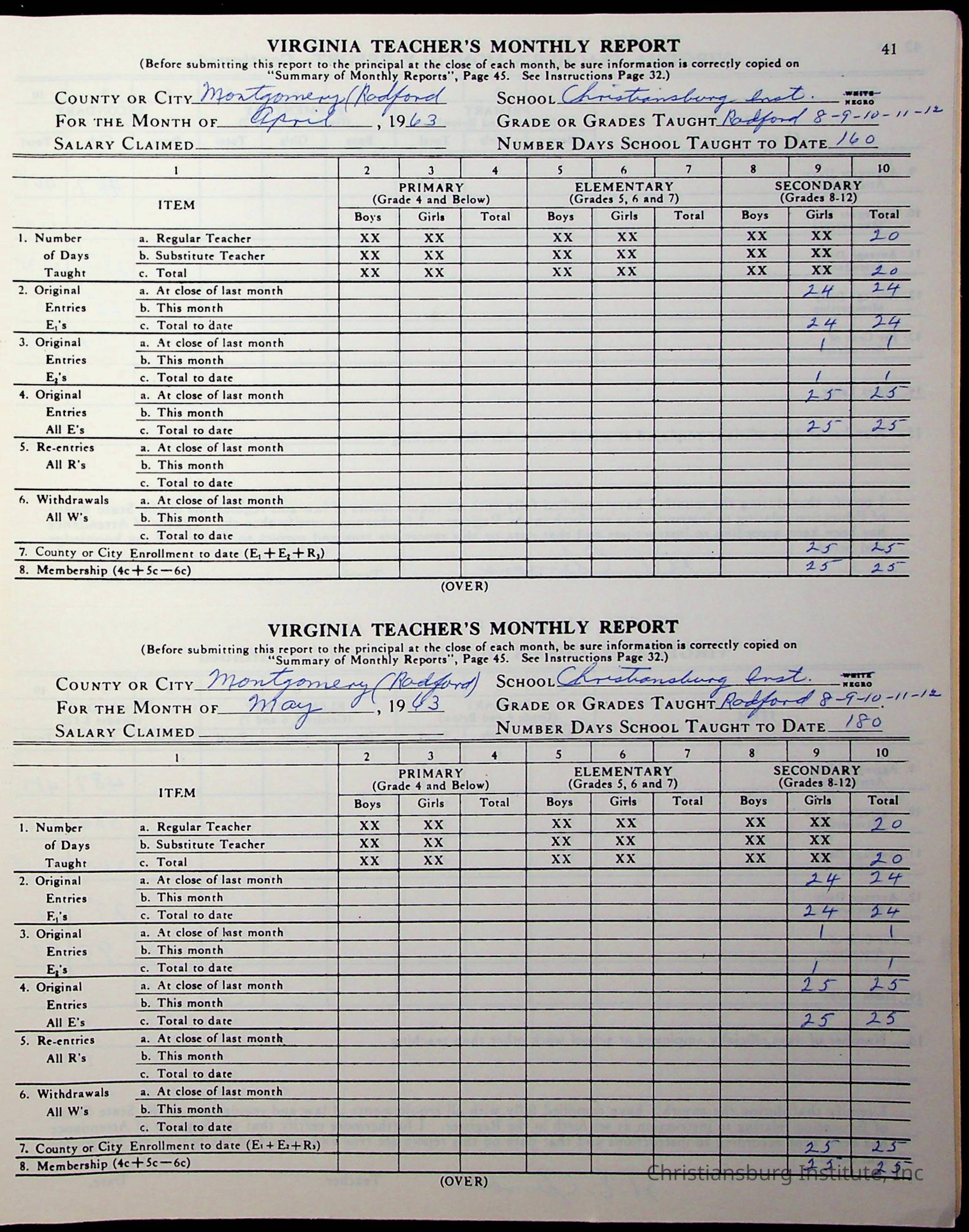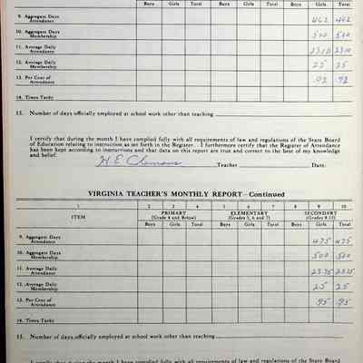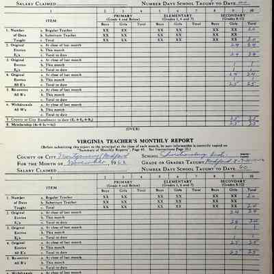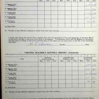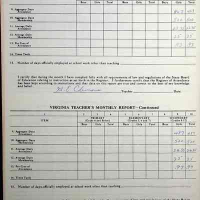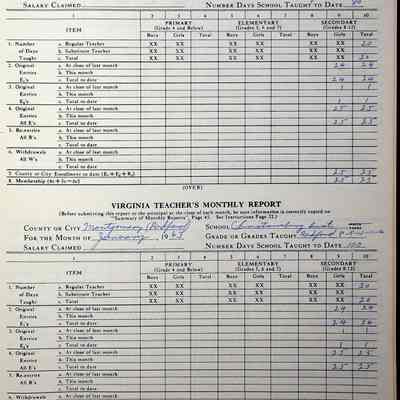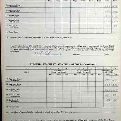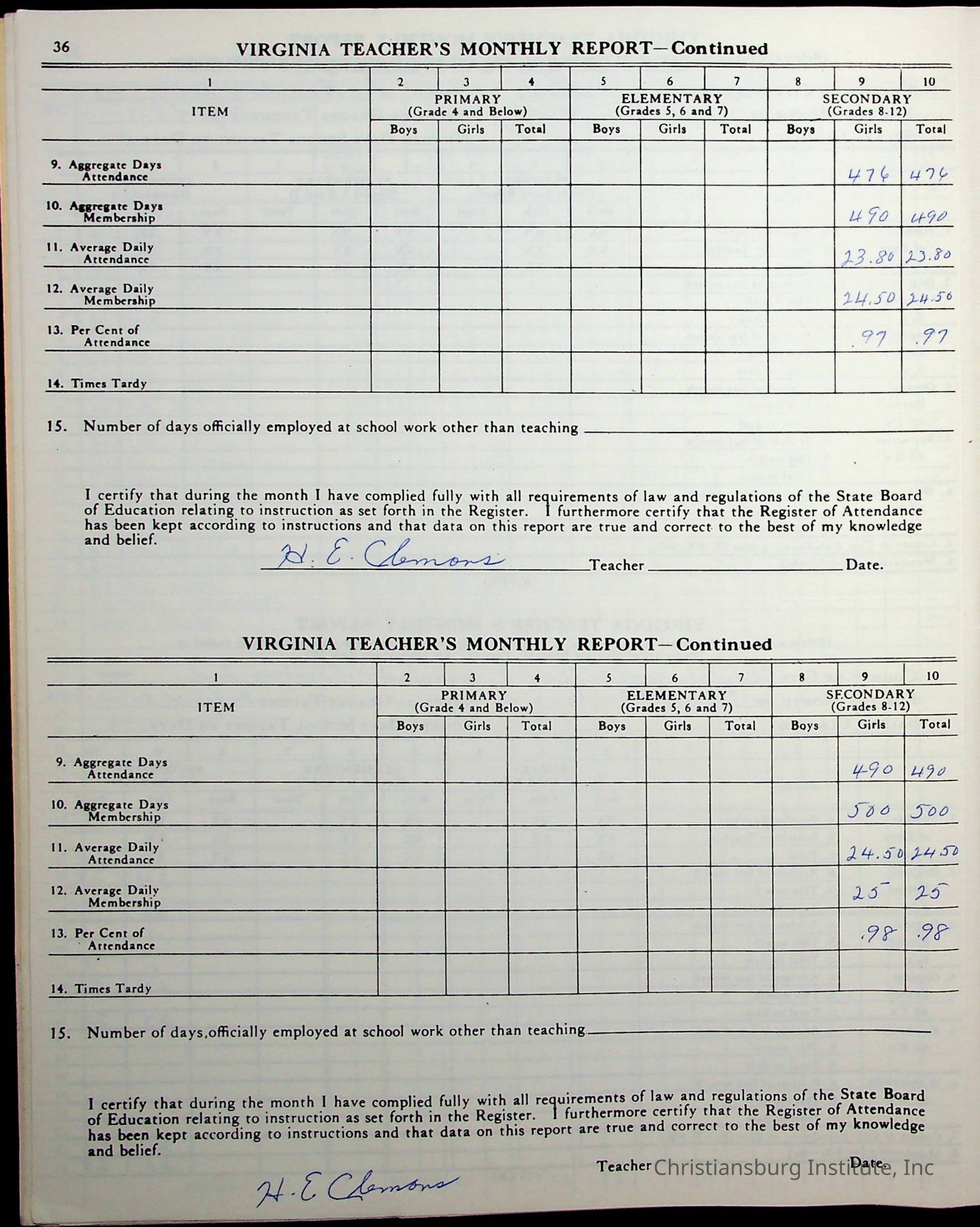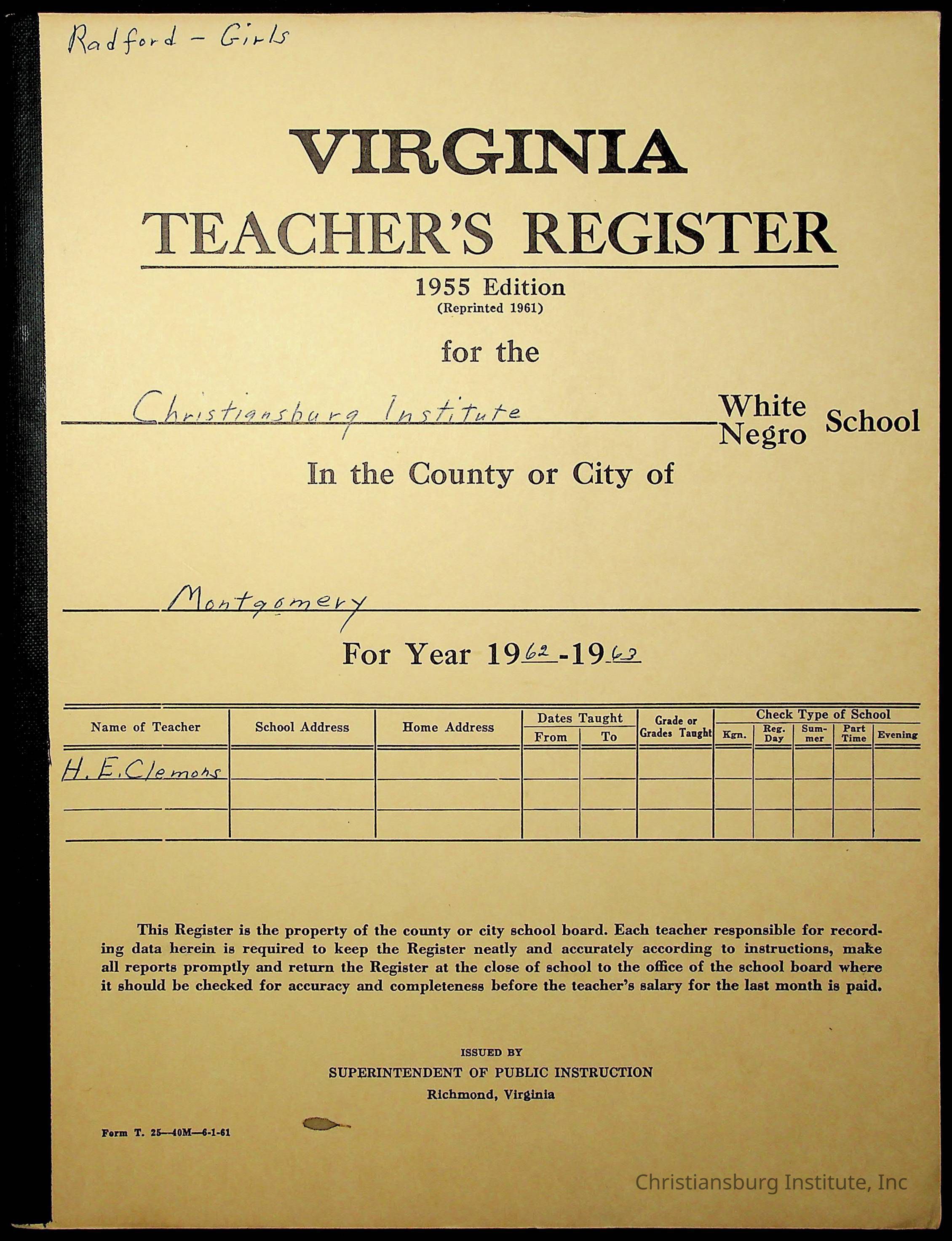 VA Teacher’s Register for H.E. Clemons, 1962-1963 (Radford Girls)Scope and Content
