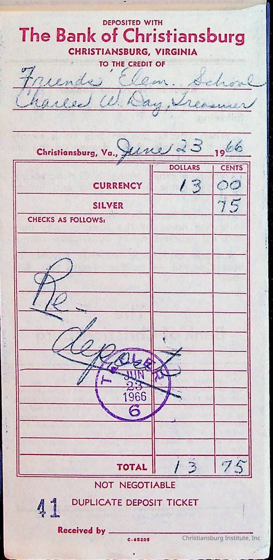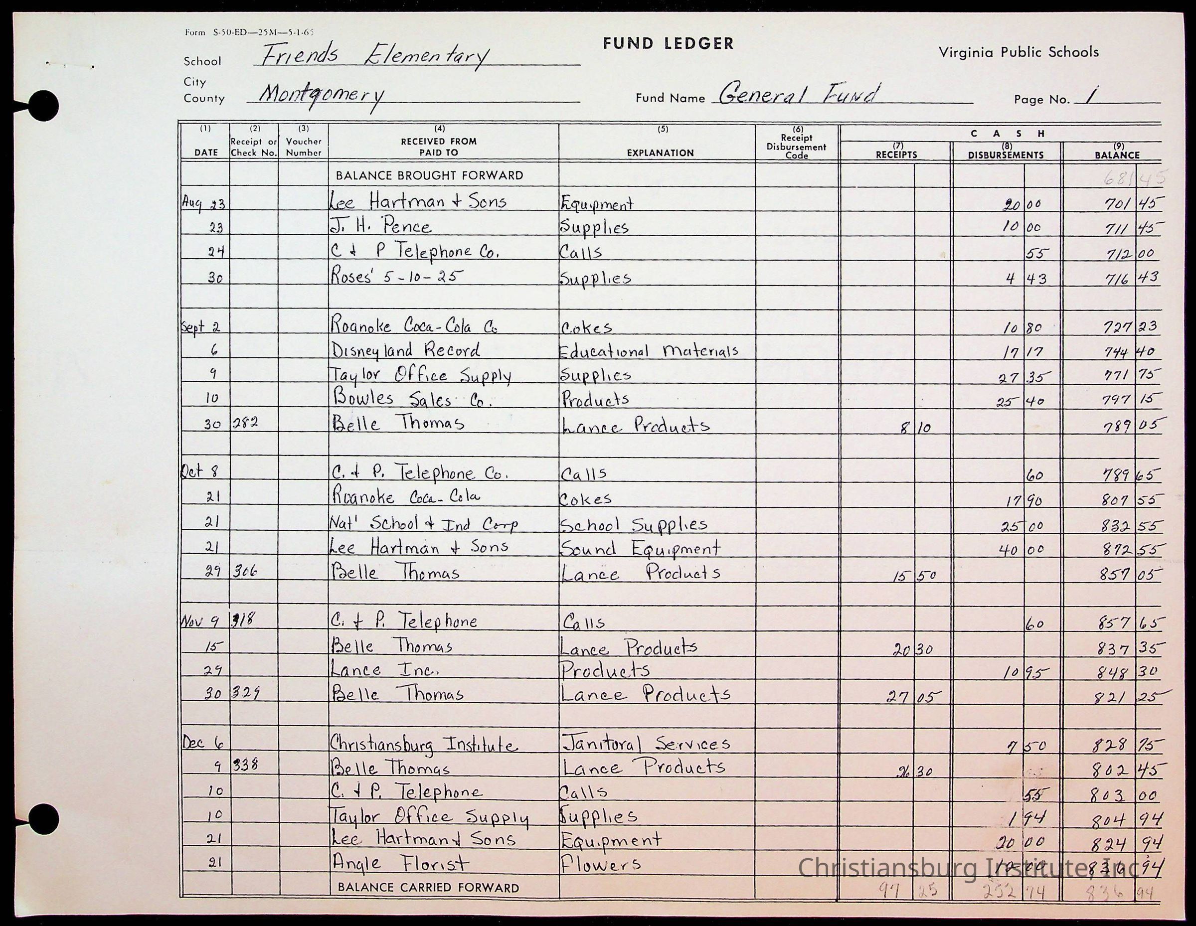 Friends Elementary Cash Receipts and Disbursements Records, 1965-1966Tags