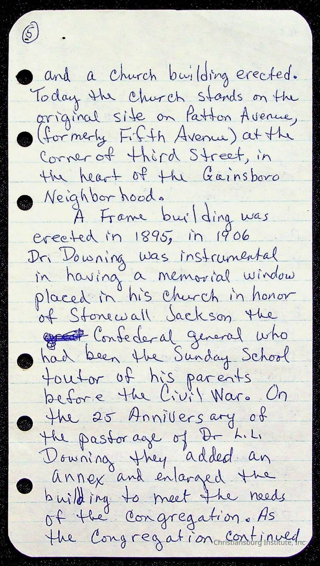 The church histories section of the paper archives of Fifth Avenue Presbyterian Church written by Michael Blankenship, undated.Collection