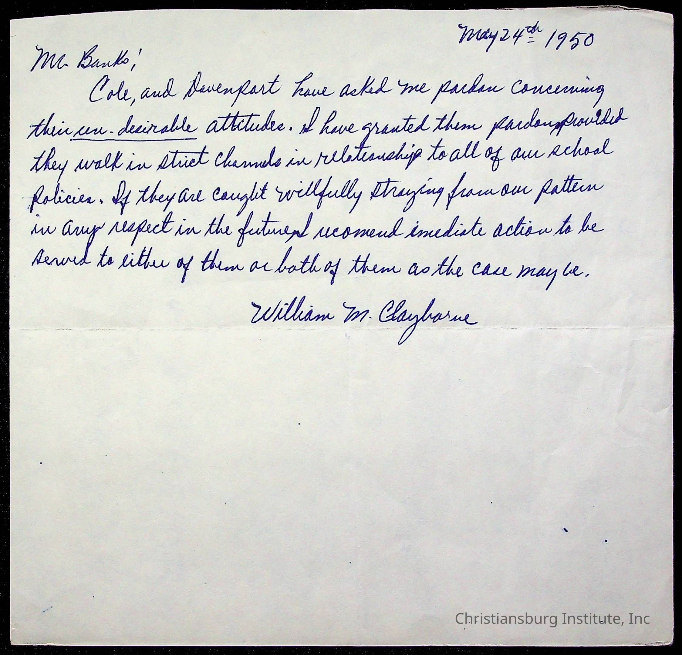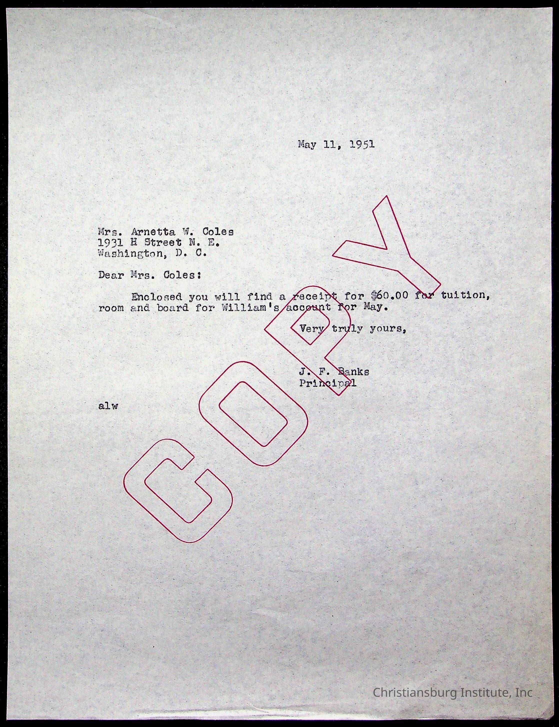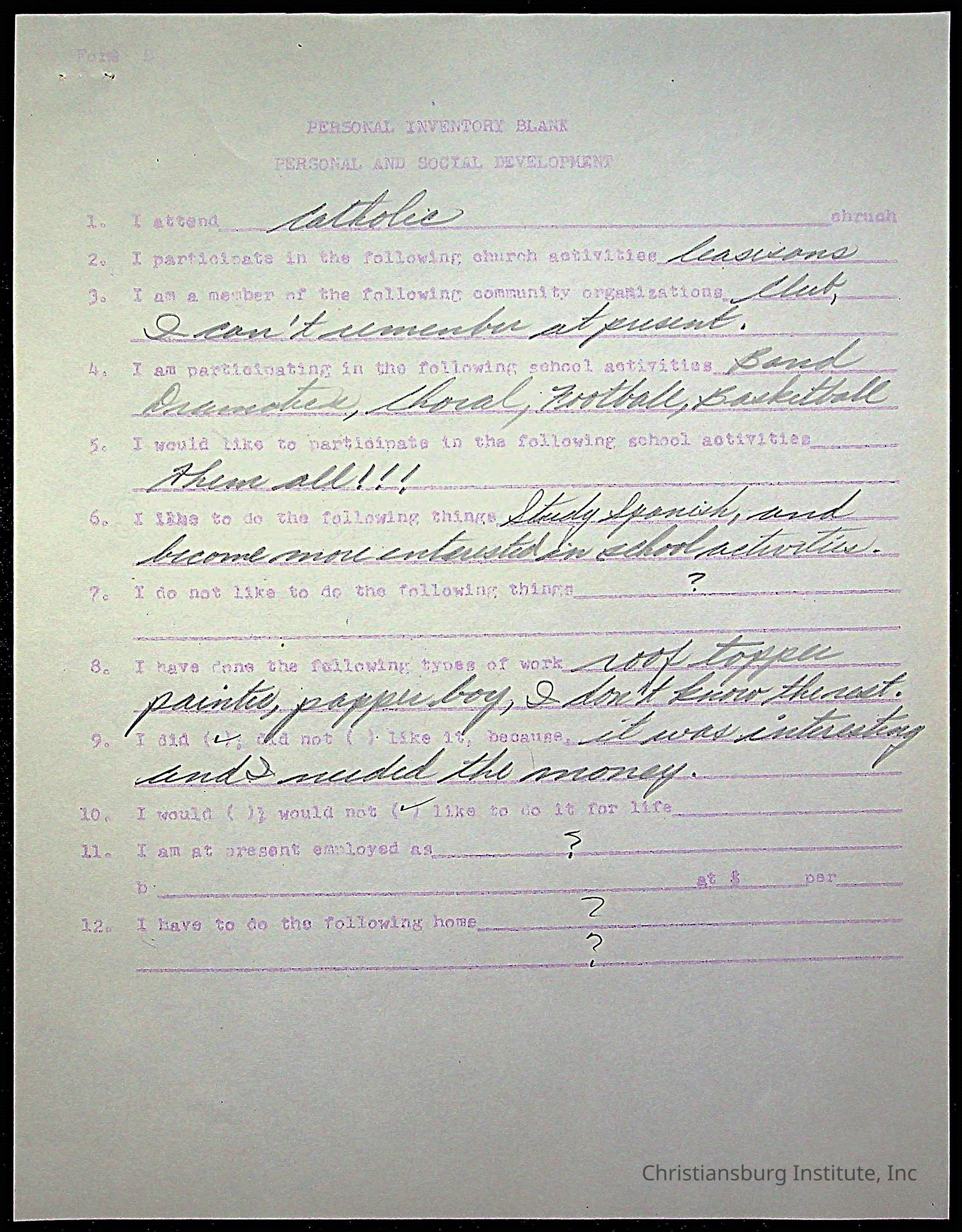Copyright has been assigned to Christiansburg Institute Museum & Archives by Montgomery County Public Schools. For permission to publish materials created by the donor, contact CIMA@christiansburginstitute.com. Materials not created by Christiansburg Industrial Institute may still be under copyright.