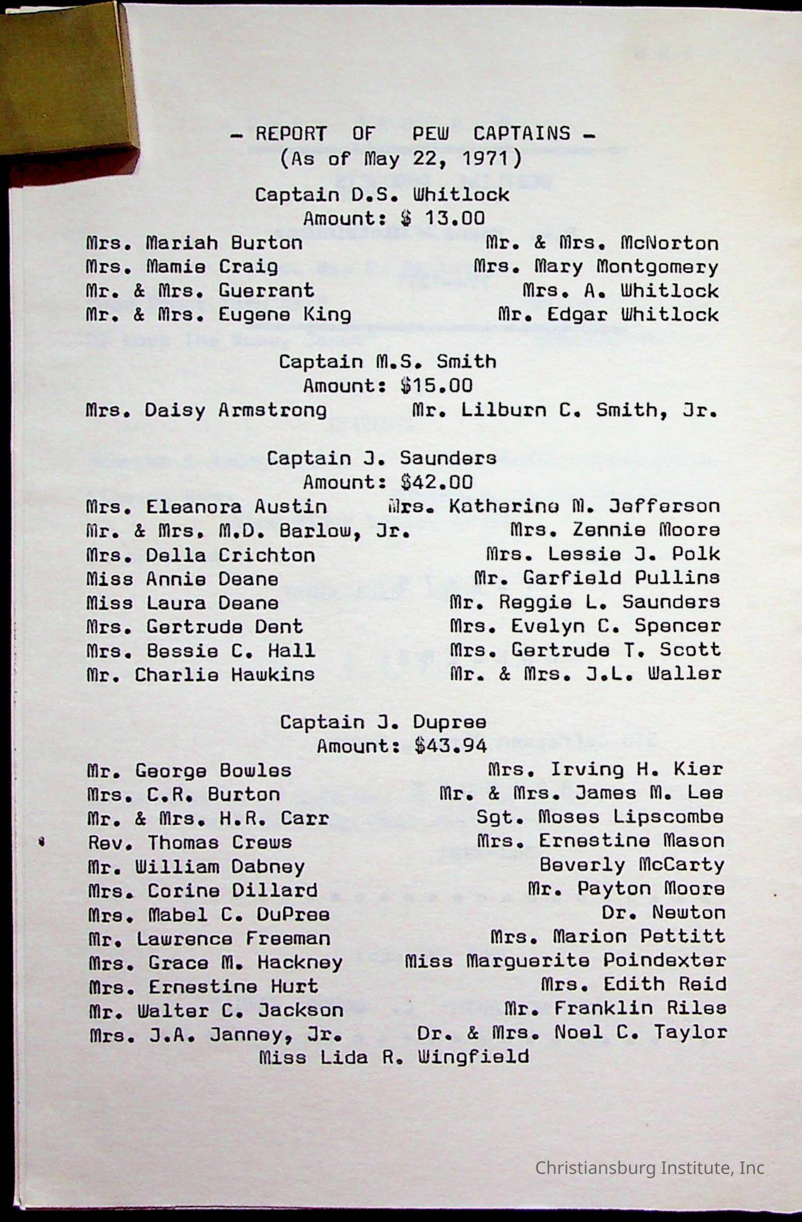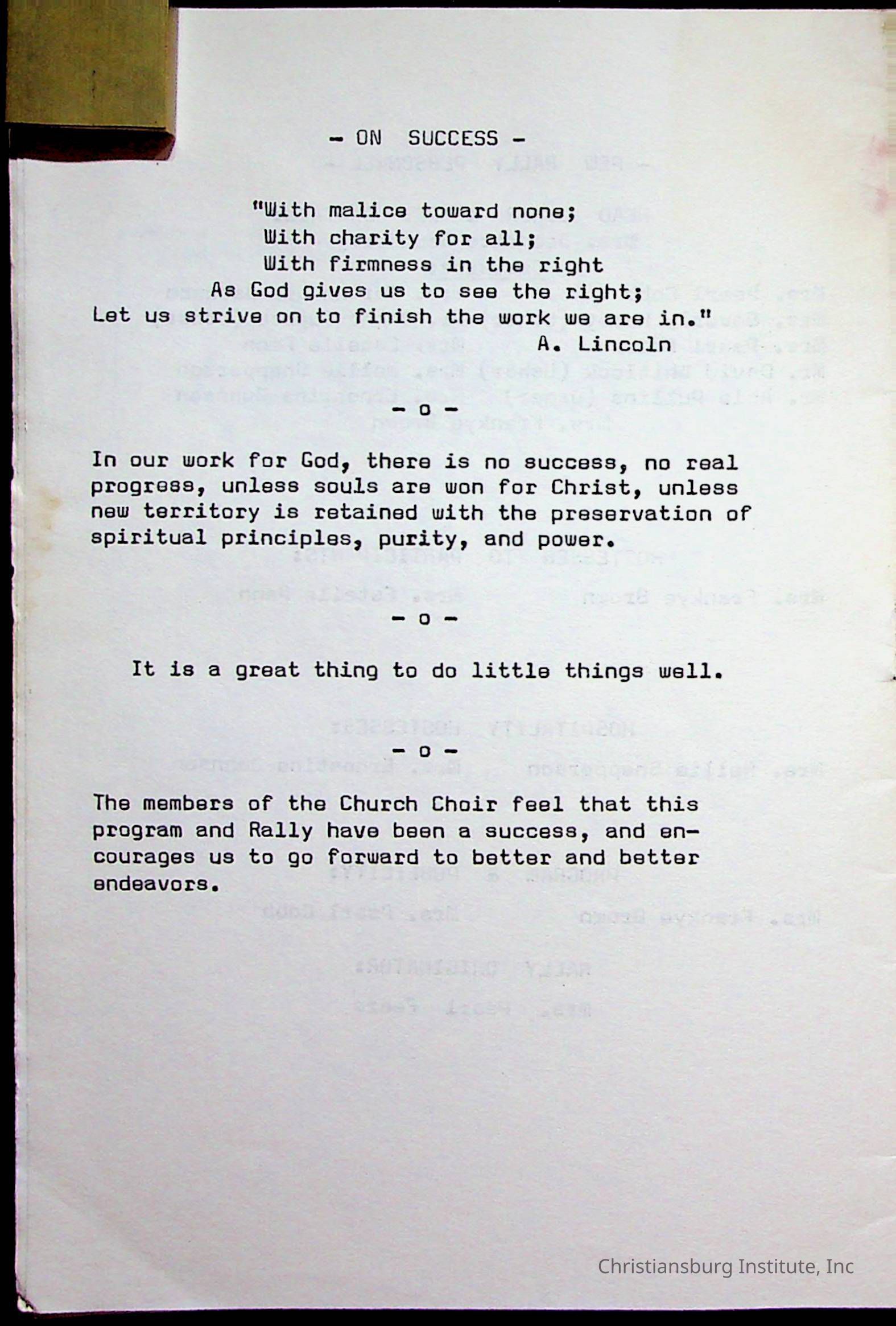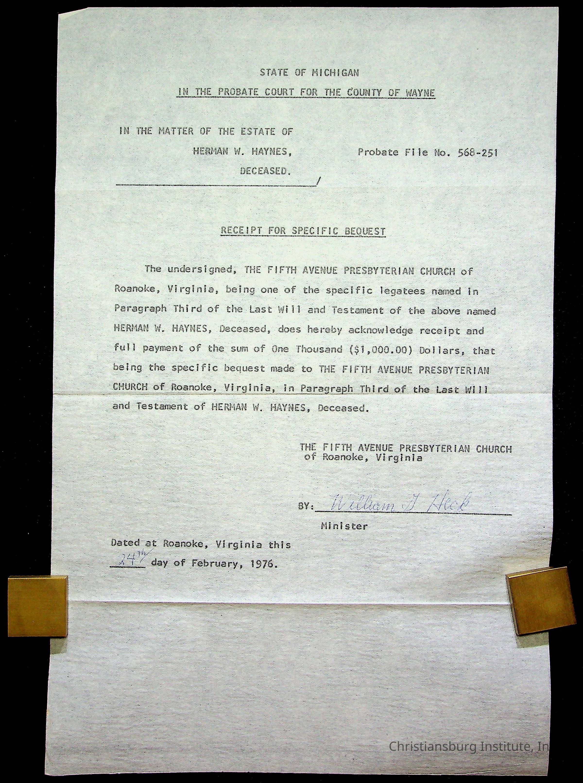 Copyright has been assigned to Christiansburg Institute Museum & Archives by Fifth Avenue Presbyterian Church. For permission to publish materials created by the donor, contact CIMA@christiansburginstitute.com. Materials not created by Fifth Avenue Presbyterian Church may still be under copyright.
