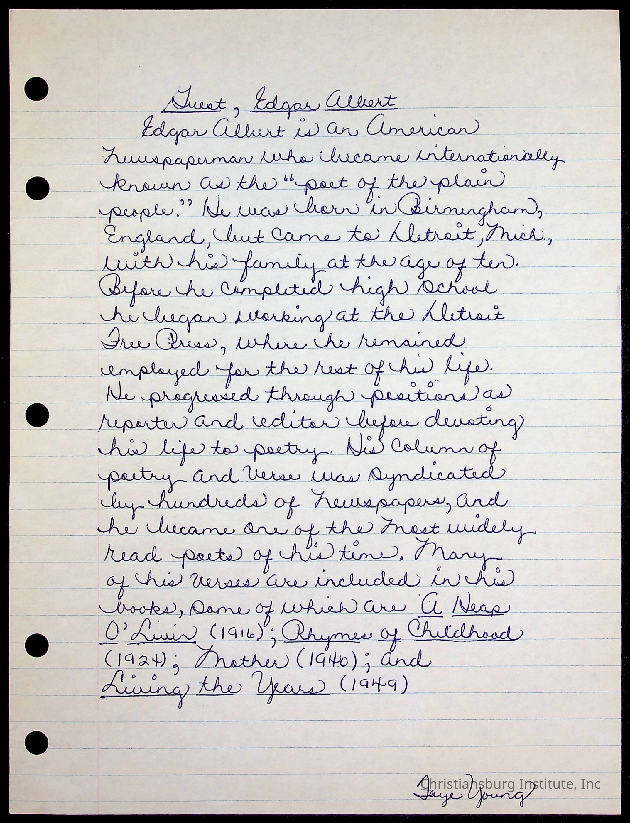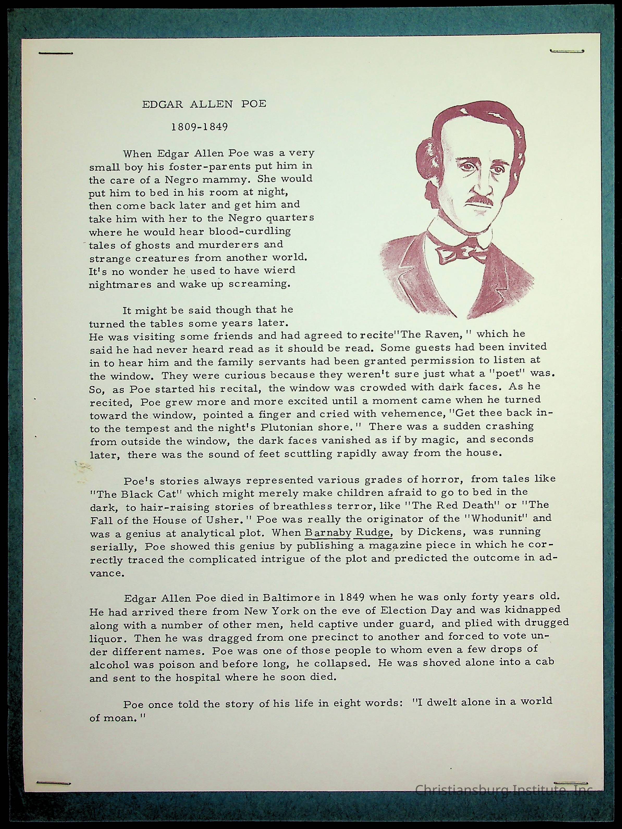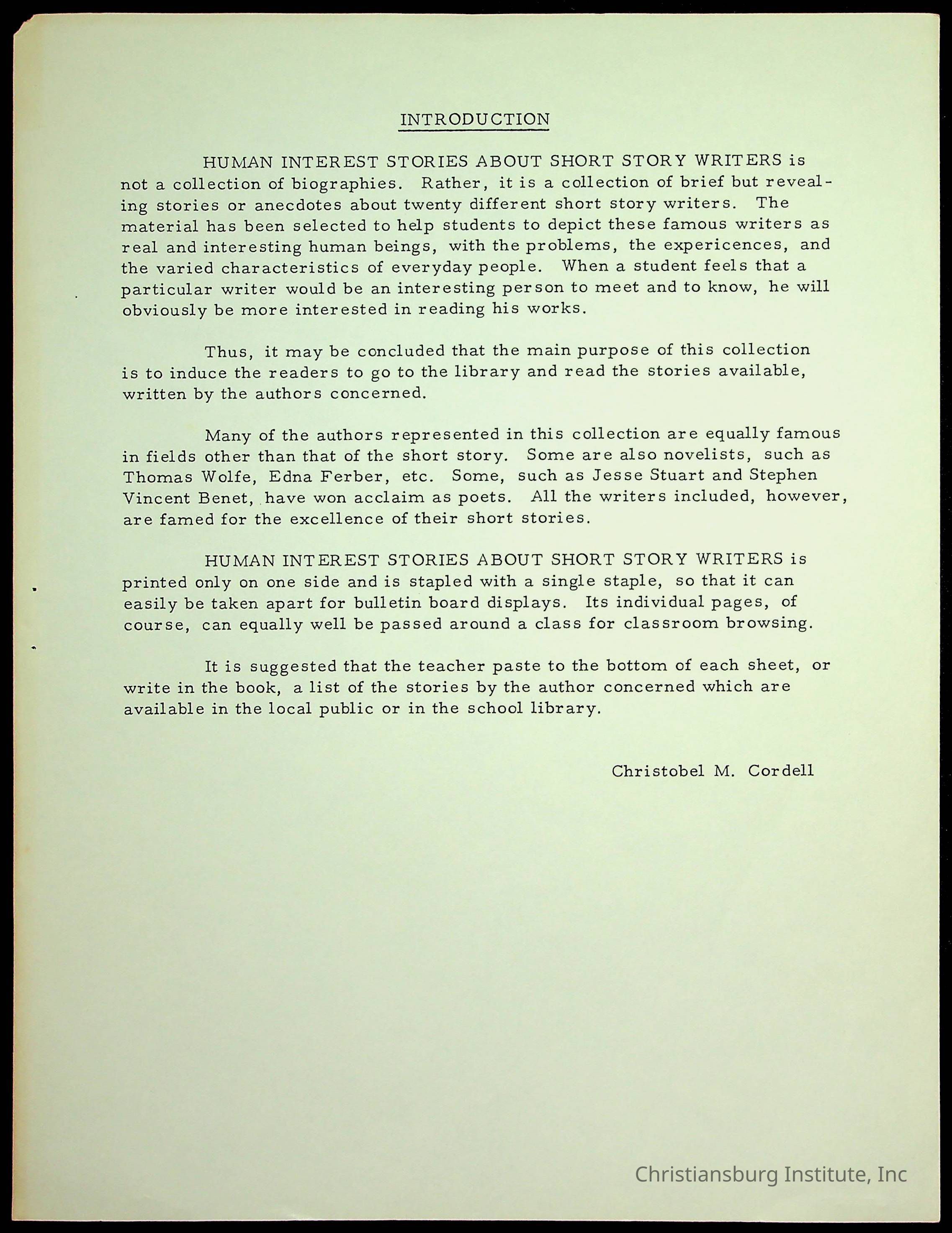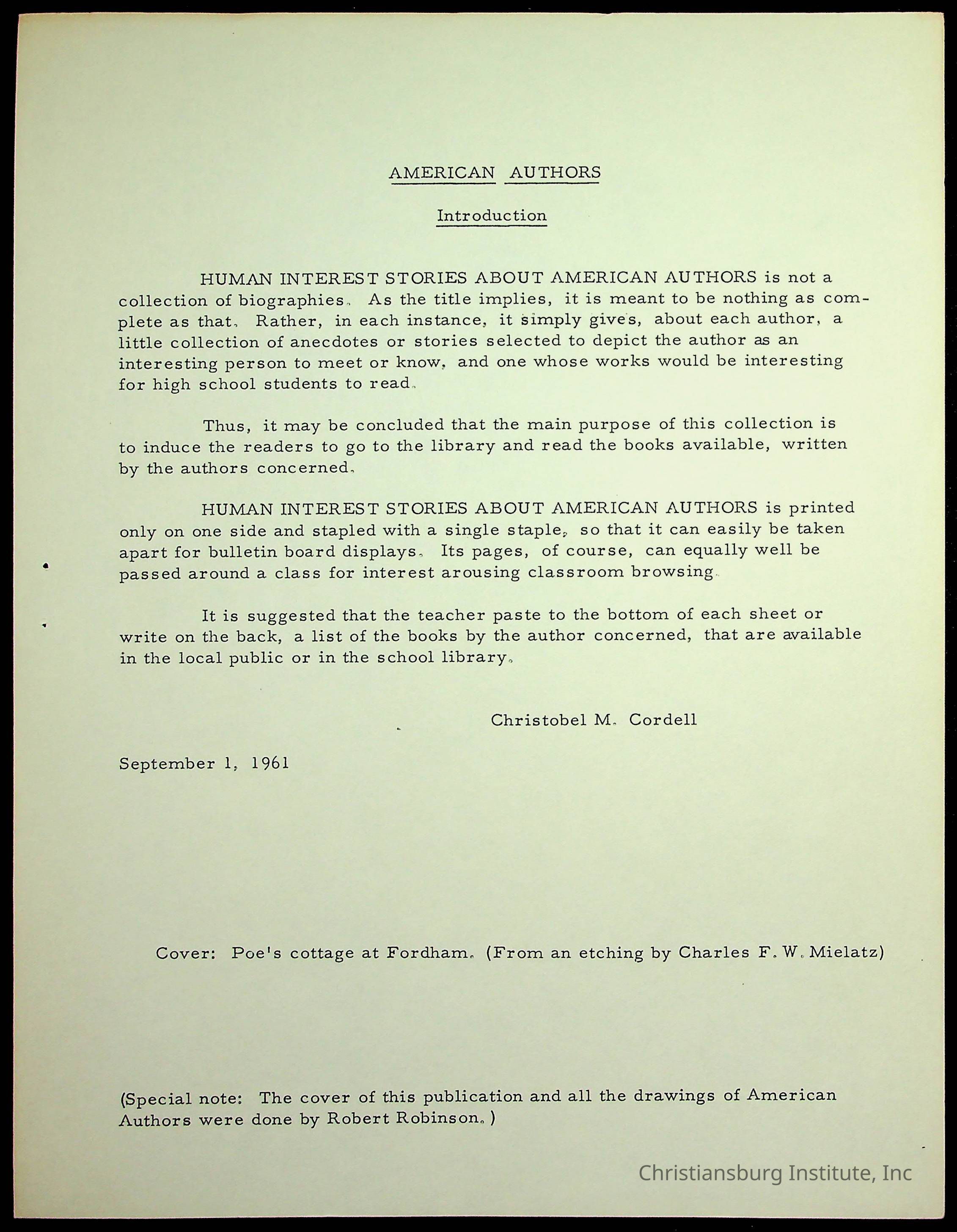 Copyright has been assigned to Christiansburg Institute Museum & Archives. For permission to publish materials created by the donor, contact CIMA@christiansburginstitute.com. Materials not created by Christiansburg Institute Museum and Archives may still be under copyright.