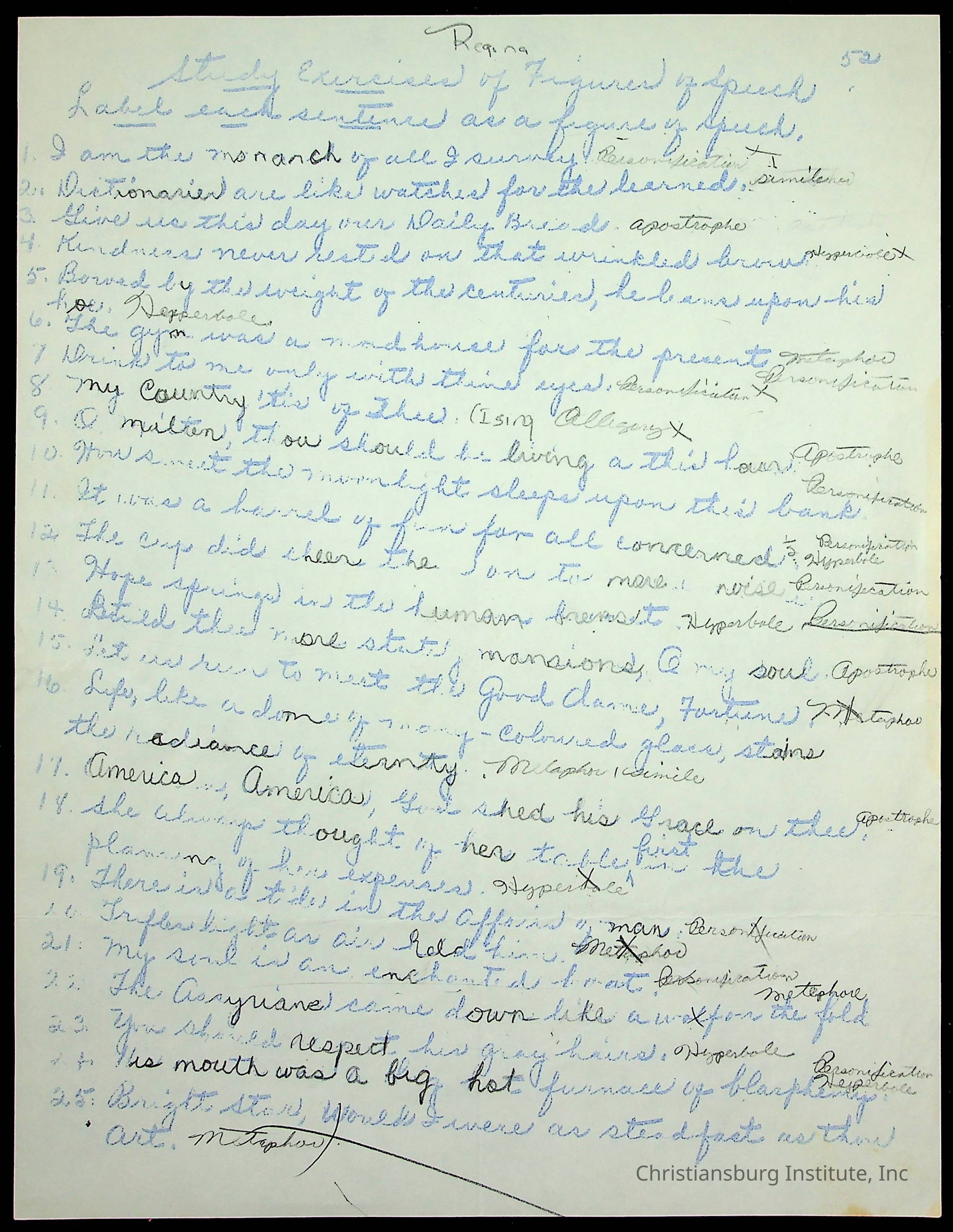 A portfolio of 11th-grade English class assignments and materials from Viola Charlton's English class circa 1950s-1960s.Collection