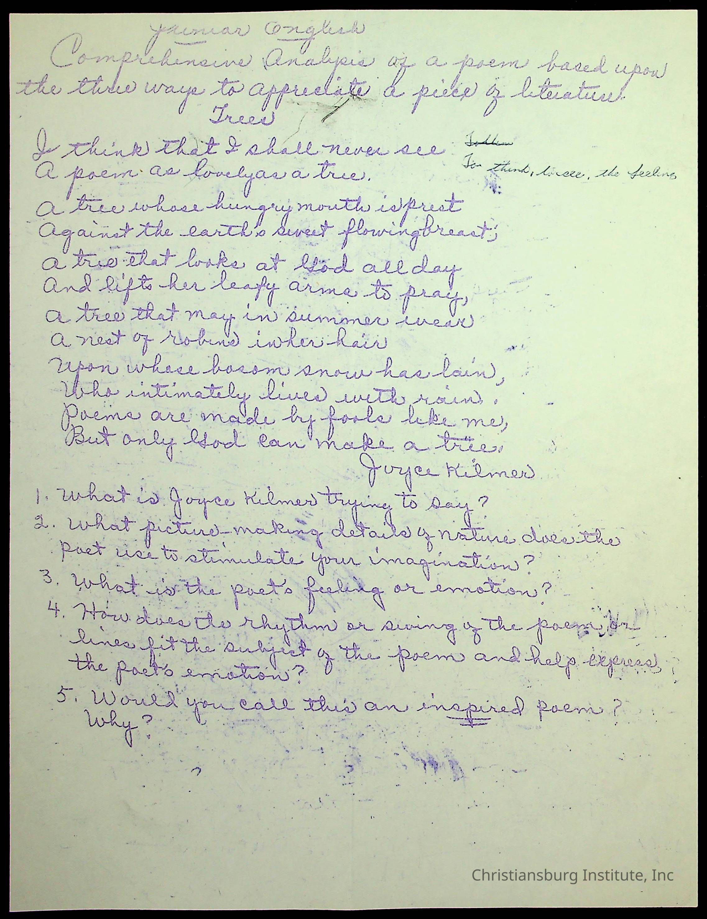 A portfolio of 11th-grade English class assignments and materials from Viola Charlton's English class circa 1950s-1960s.Creator