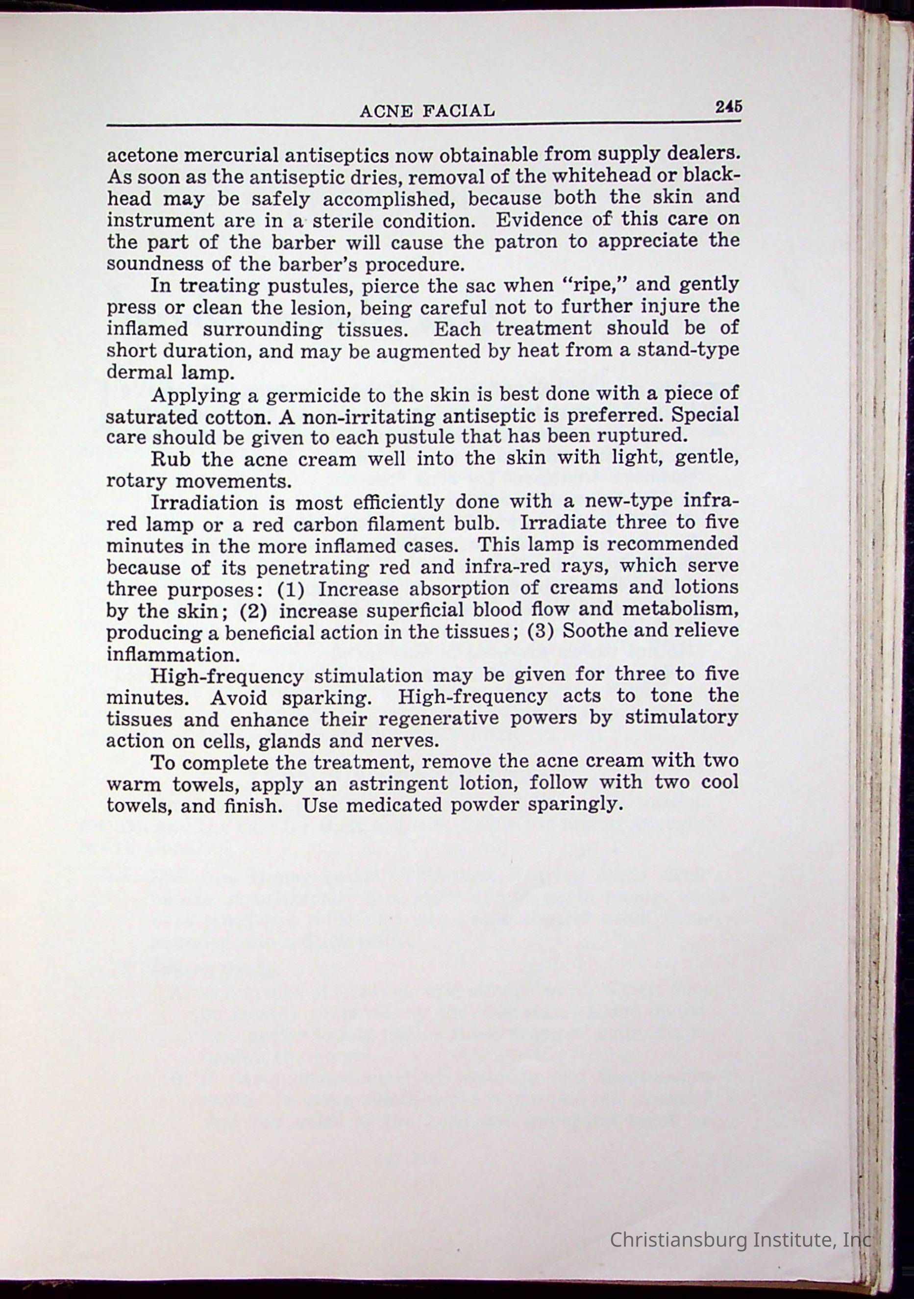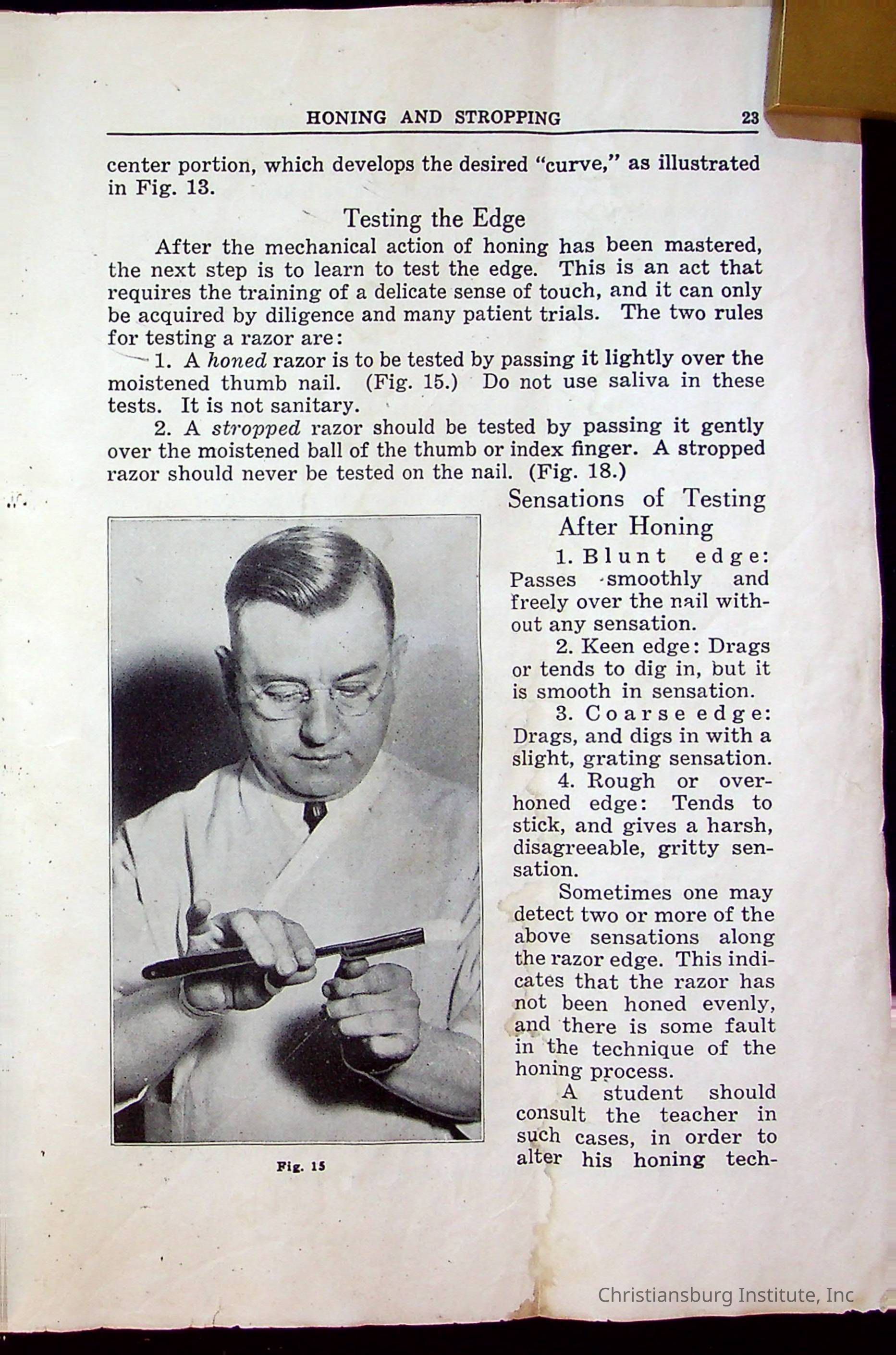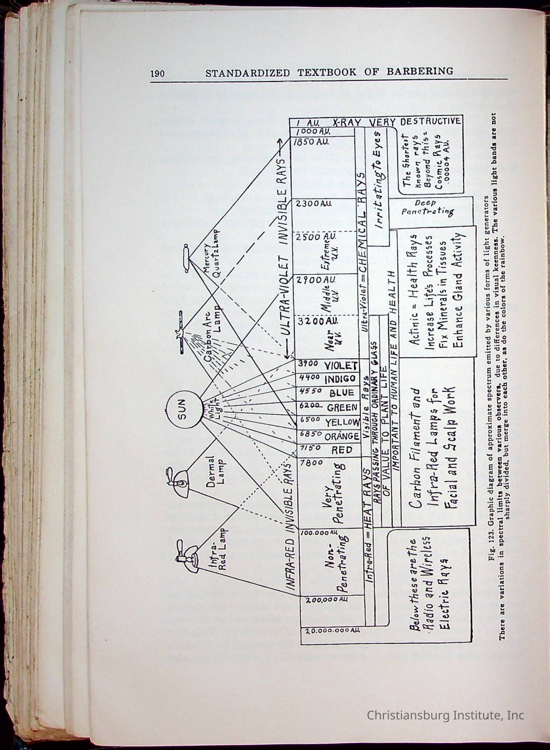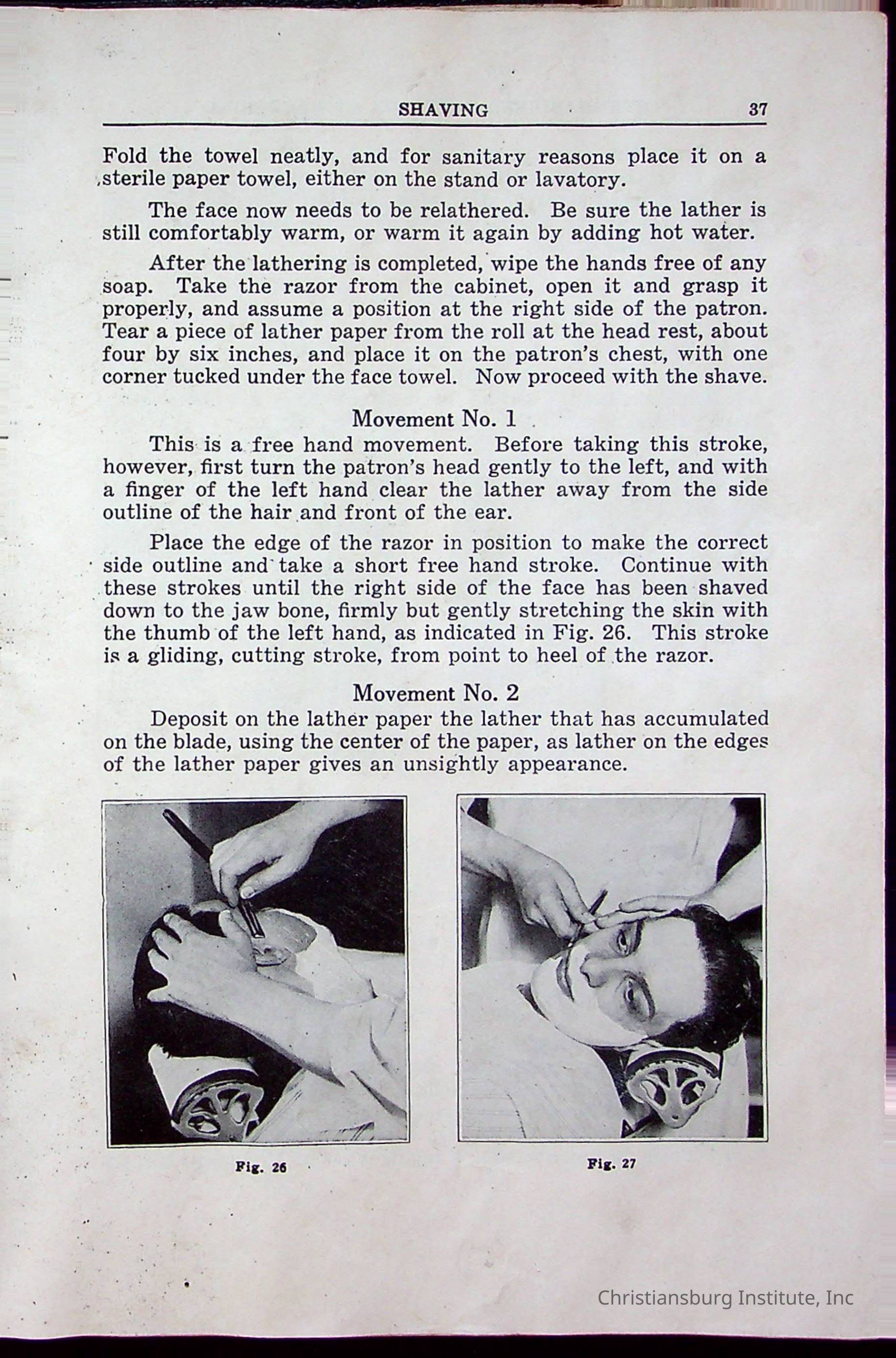 "Standardized Textbook of Barbering: in Two Parts" written and published by the Associated Master Barbers and Beauticians of America in the year 1950. This textbook was in the Christiansburg Institute library.