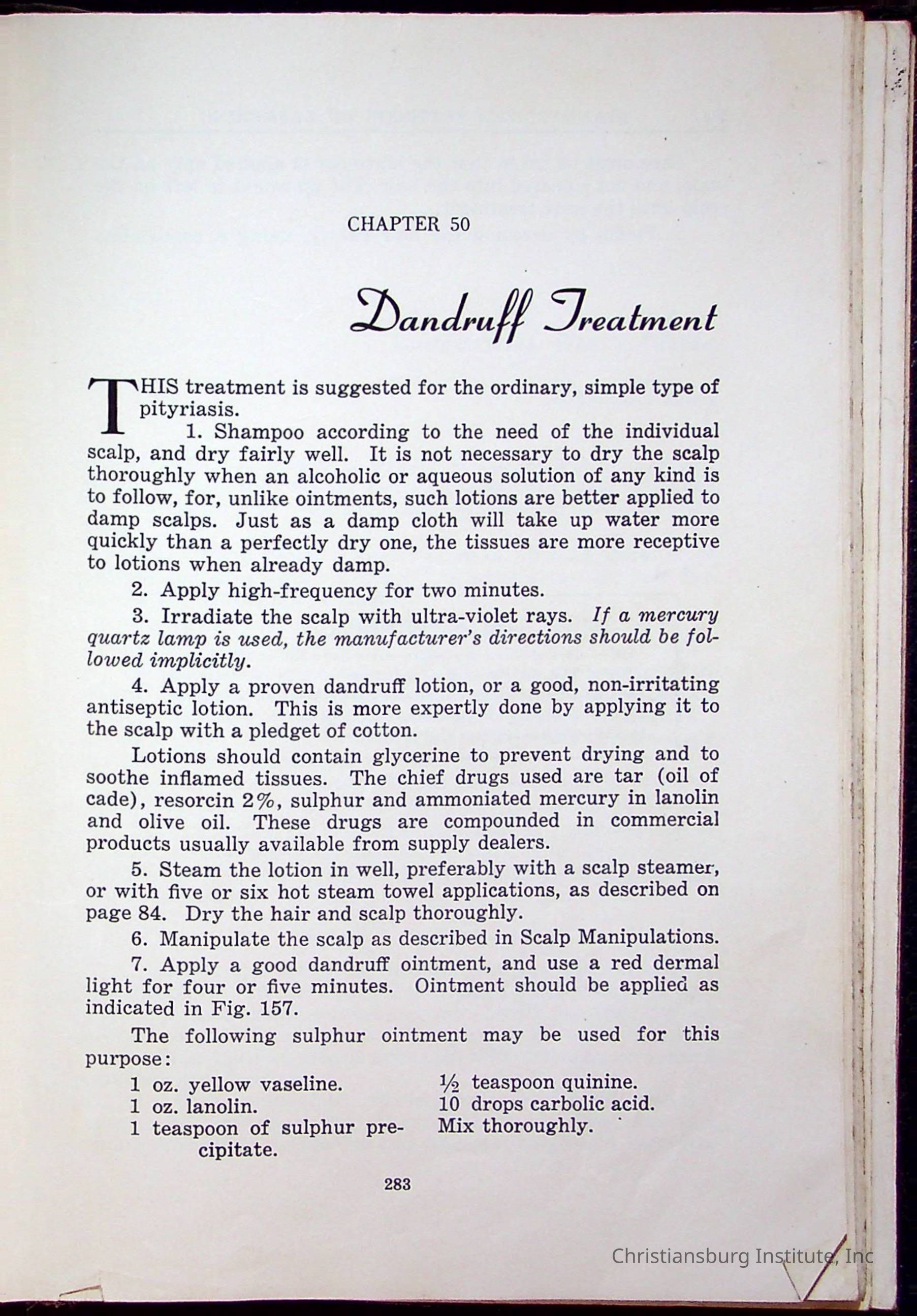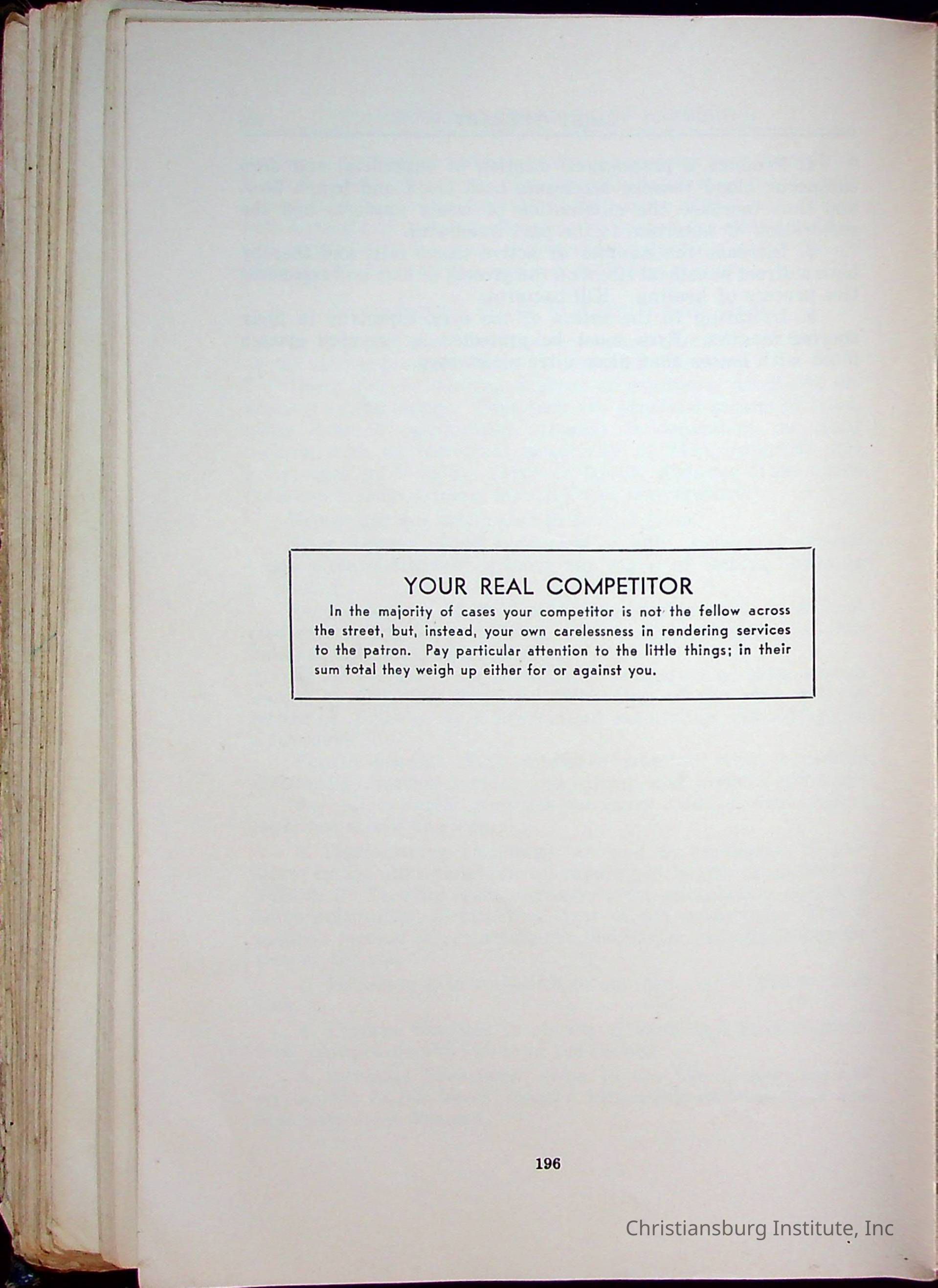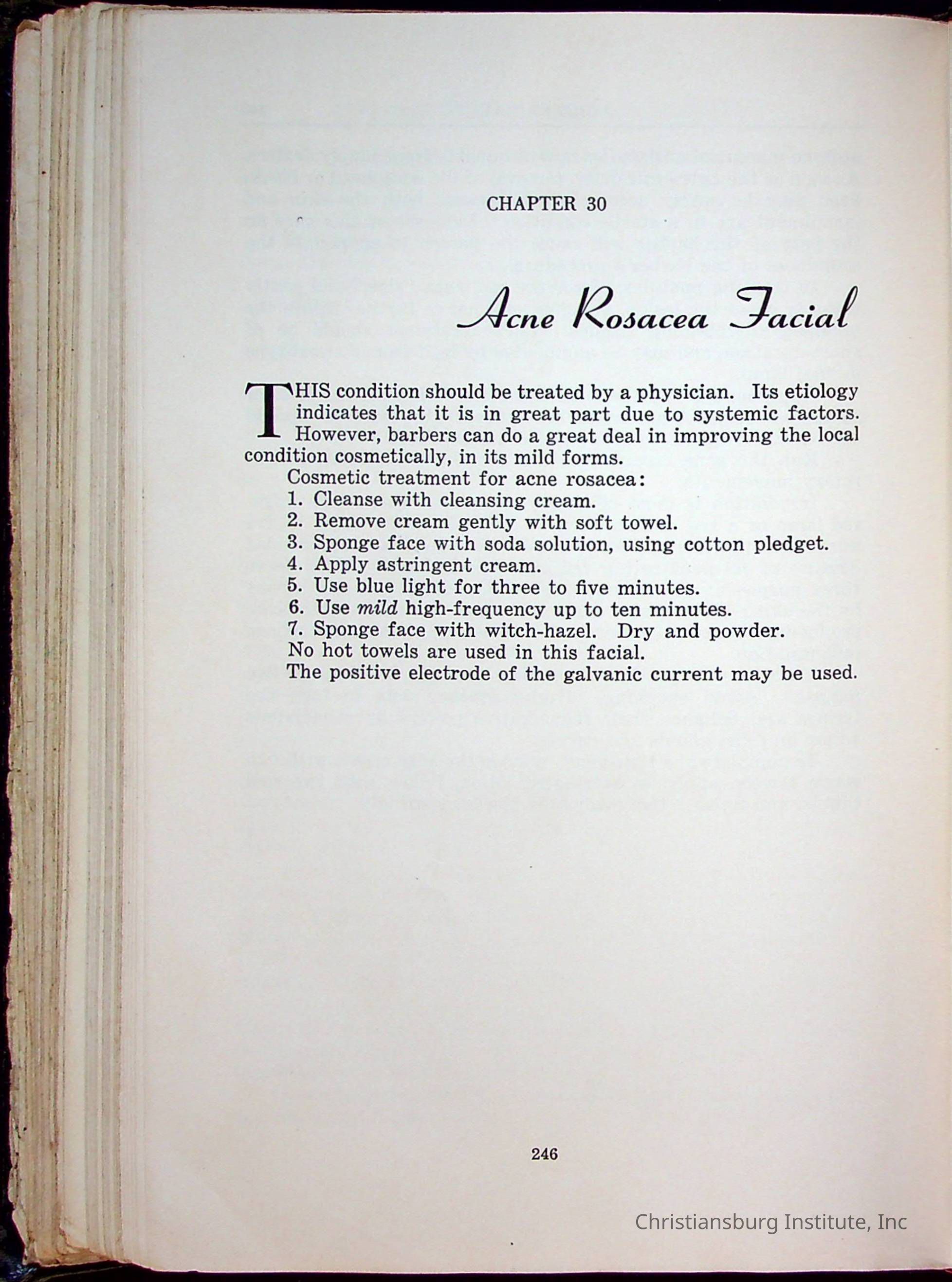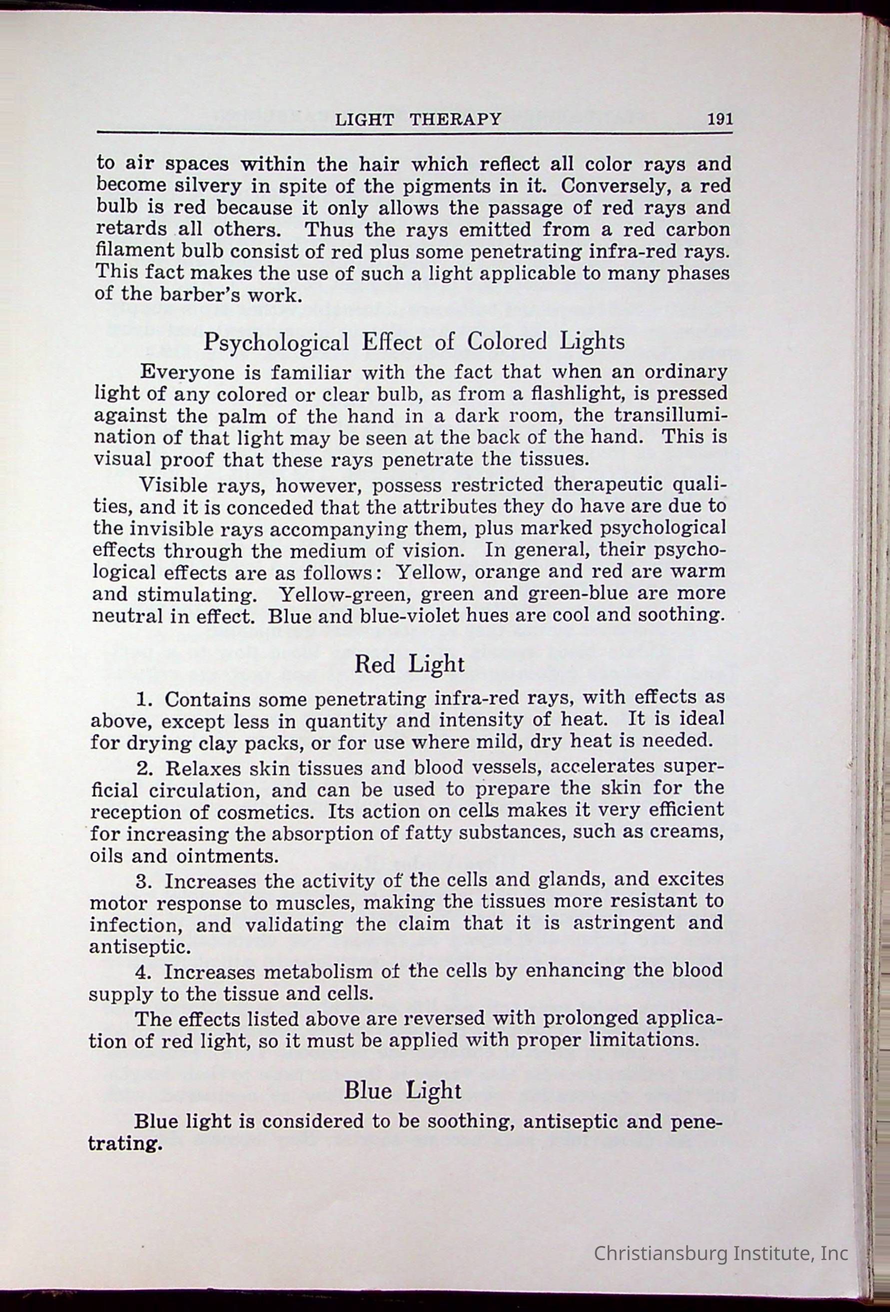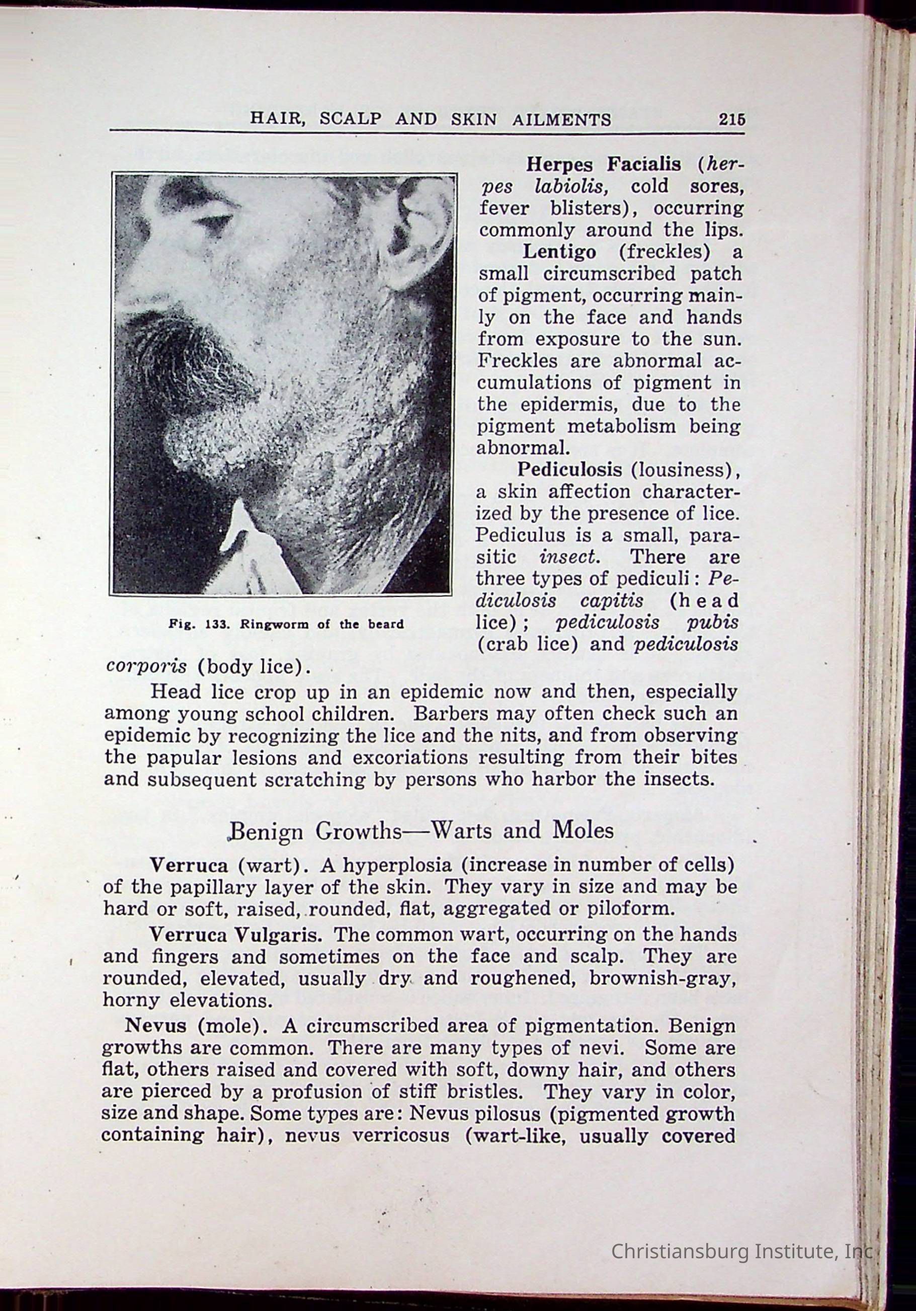 "Standardized Textbook of Barbering: in Two Parts" written and published by the Associated Master Barbers and Beauticians of America in the year 1950. This textbook was in the Christiansburg Institute library.
