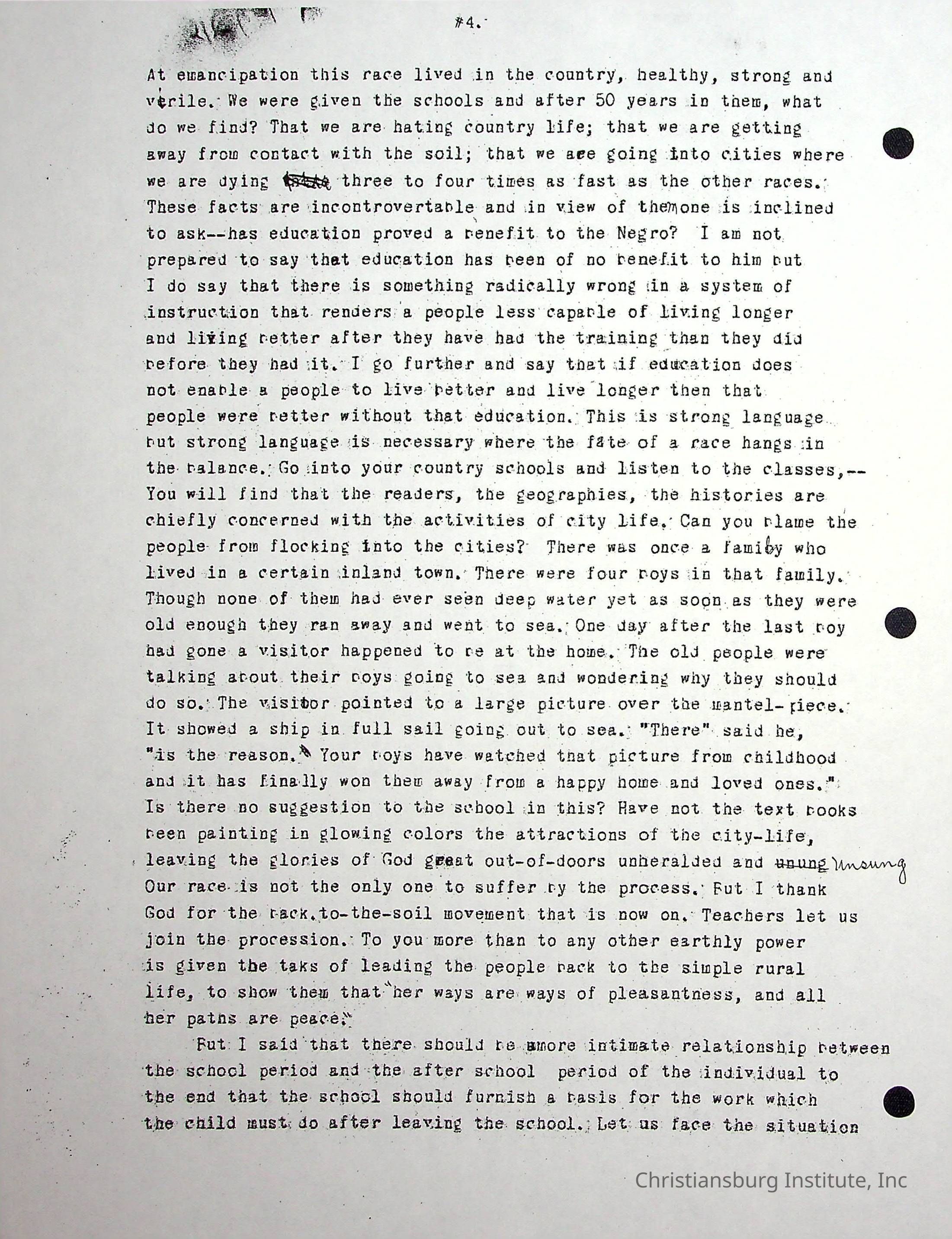 A photocopy version of a typed speech written by Edgar A. Long spoken at the State Teachers Association in 1913 in Norfolk, Virginia. Gifted by Carlton Banks in 2001.Collection