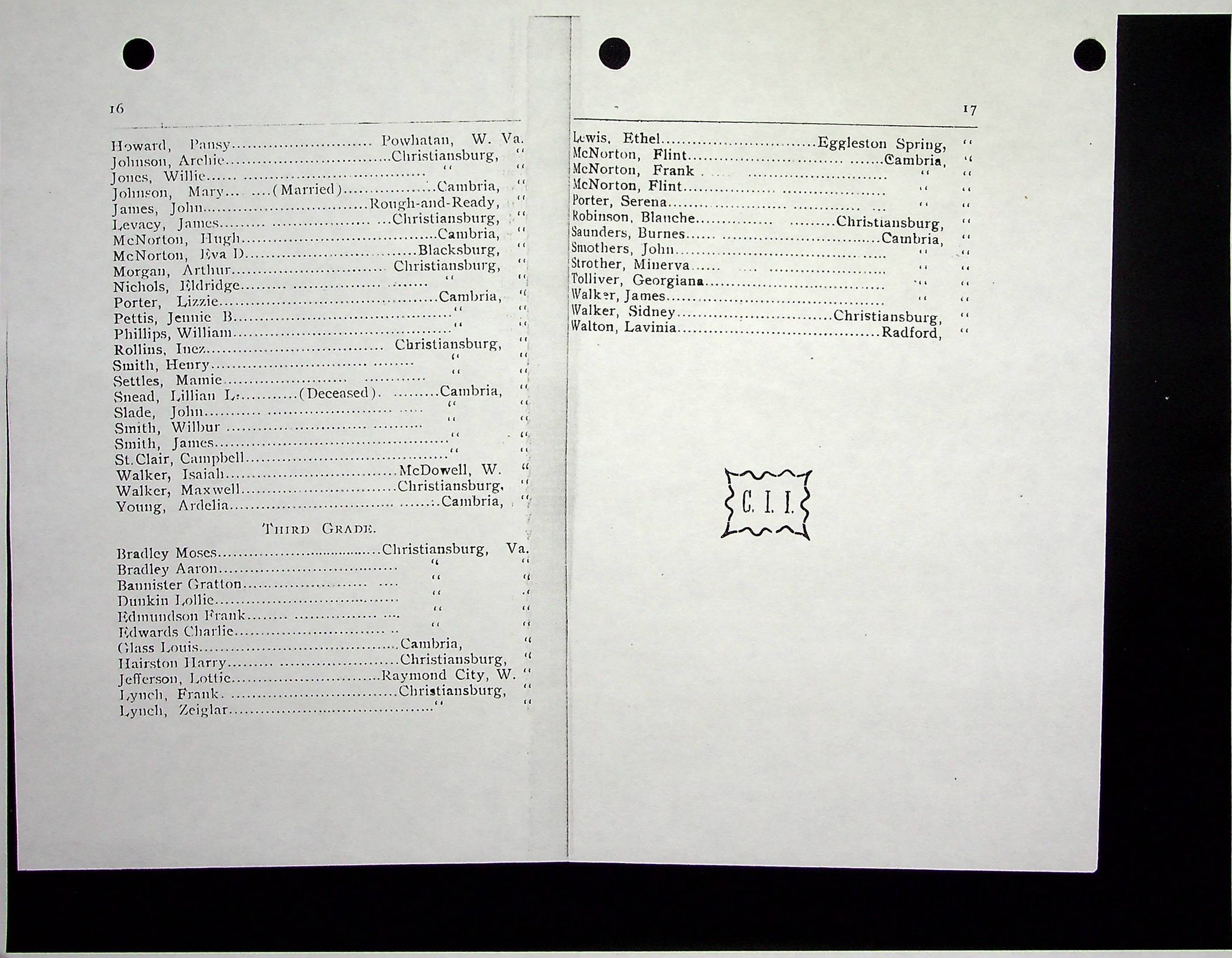 Christiansburg Industrial InstitutePlace Printed