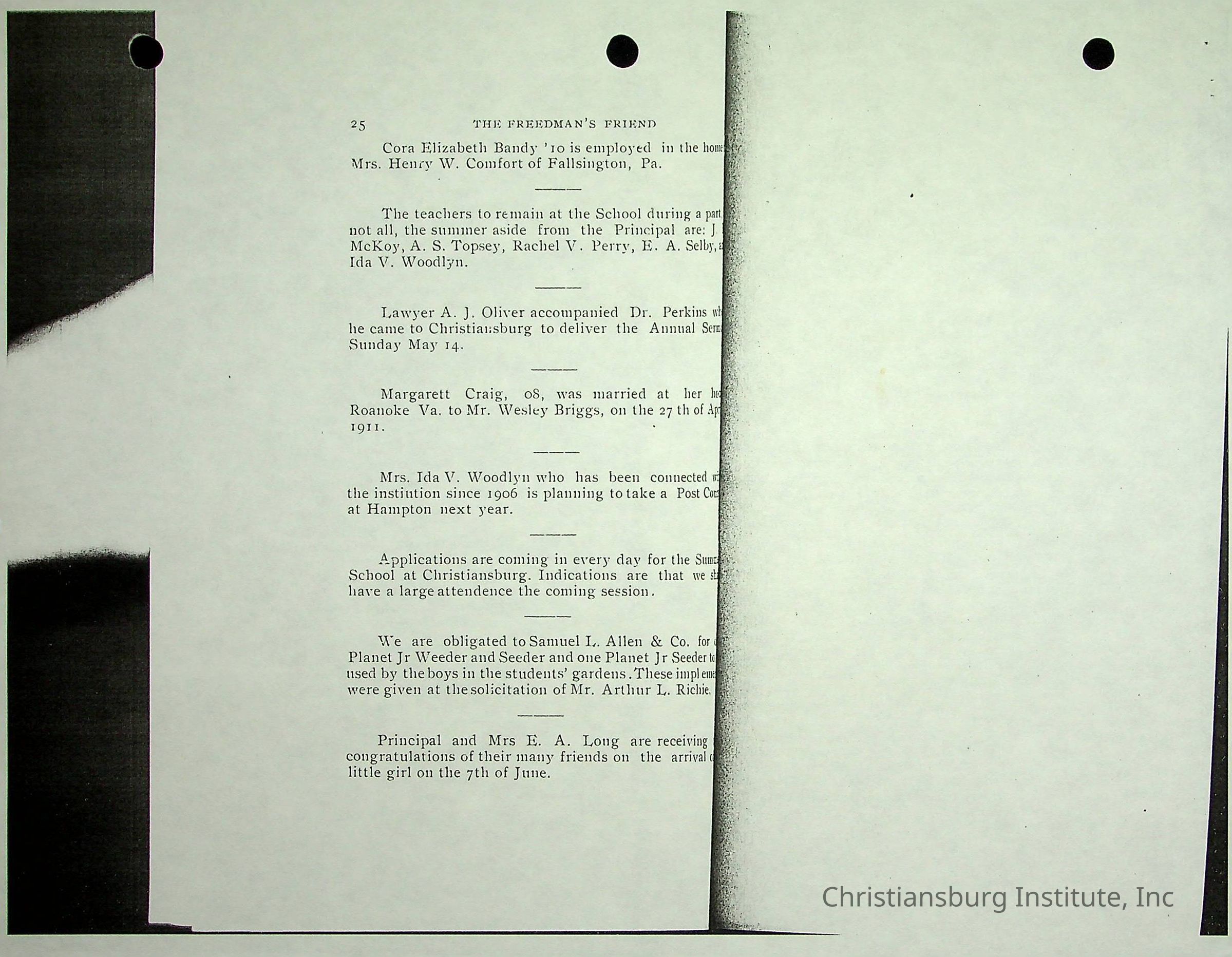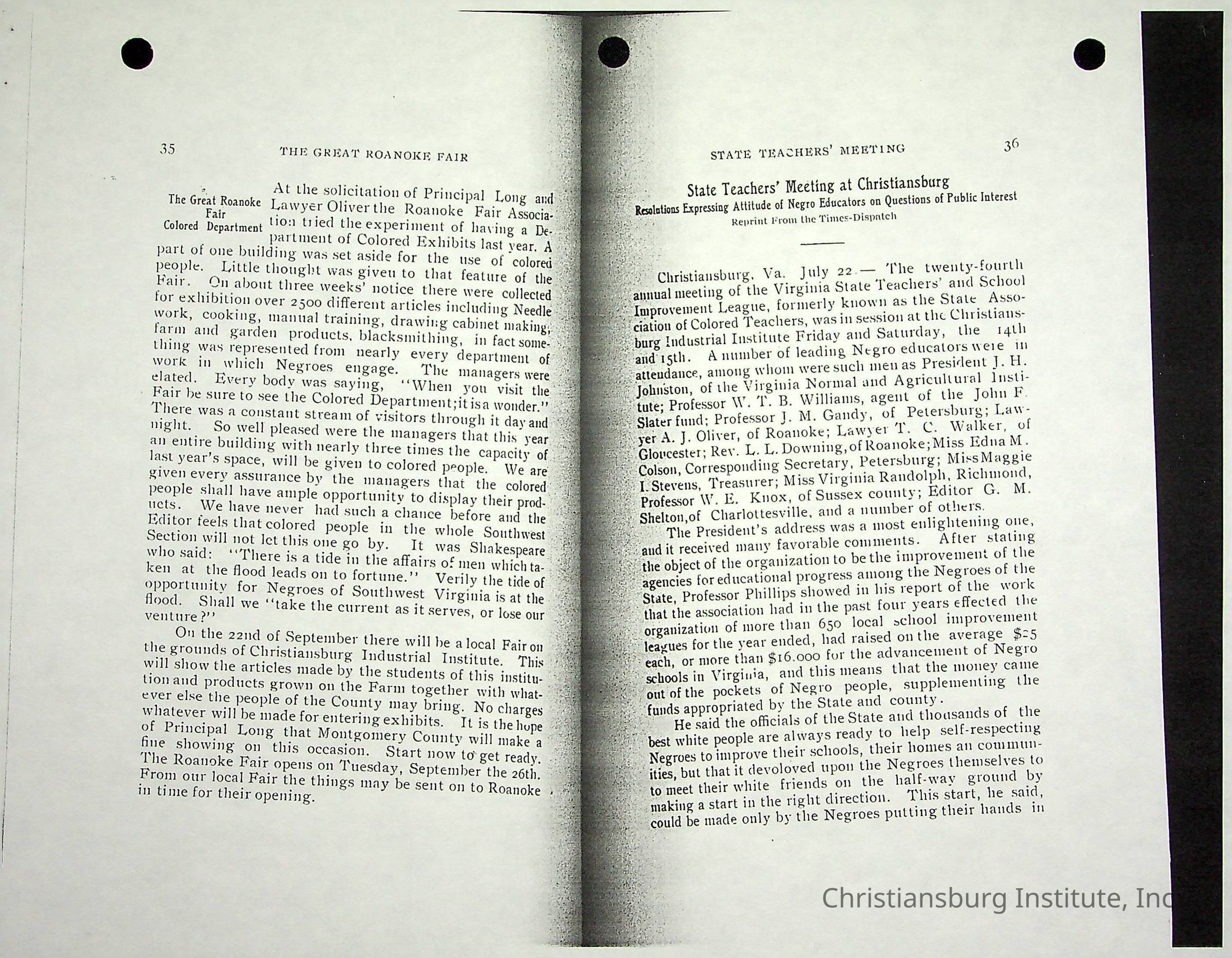 Christiansburg Industrial InstitutePlace Printed
