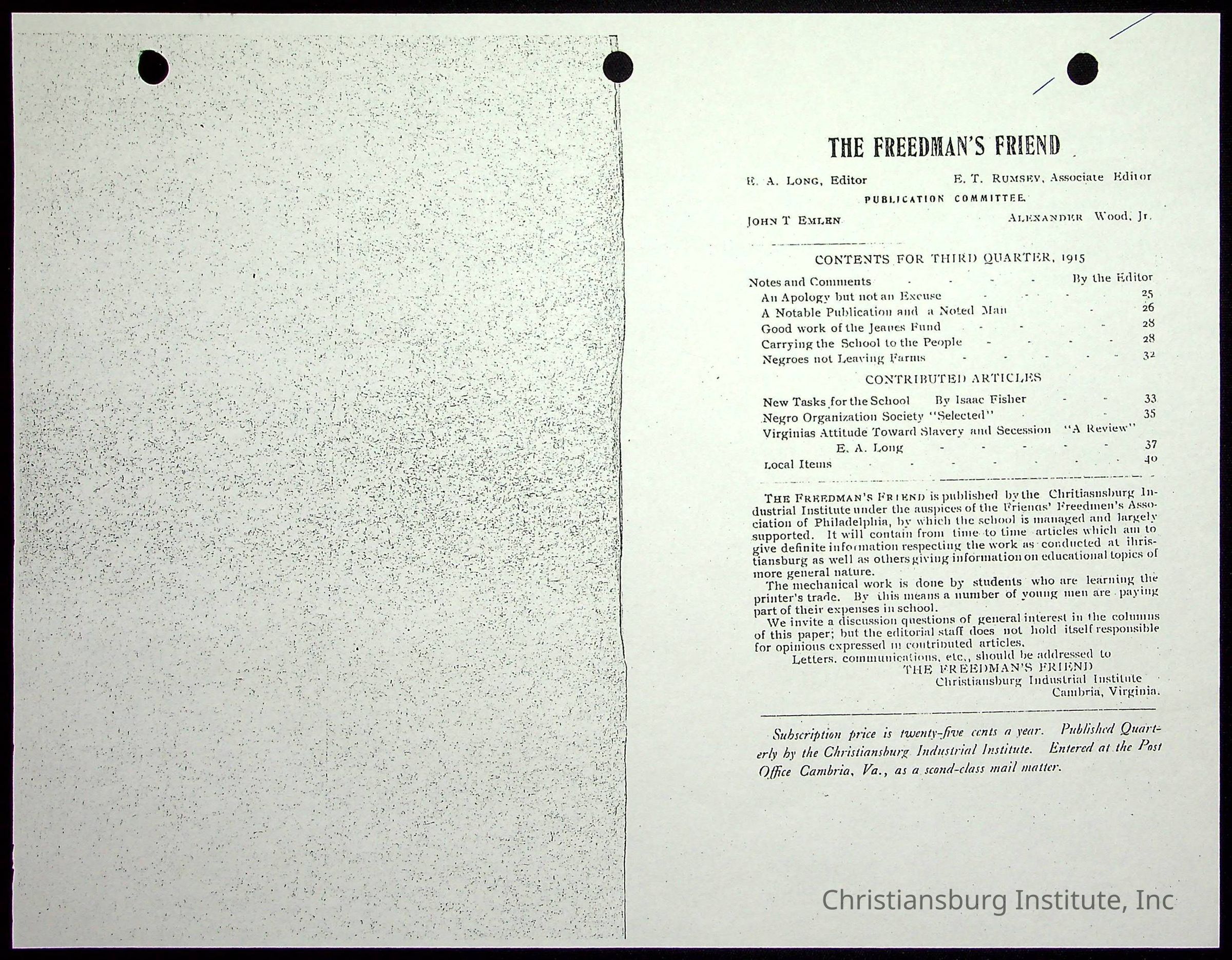 Friend's Freedmens' AssociationEditor