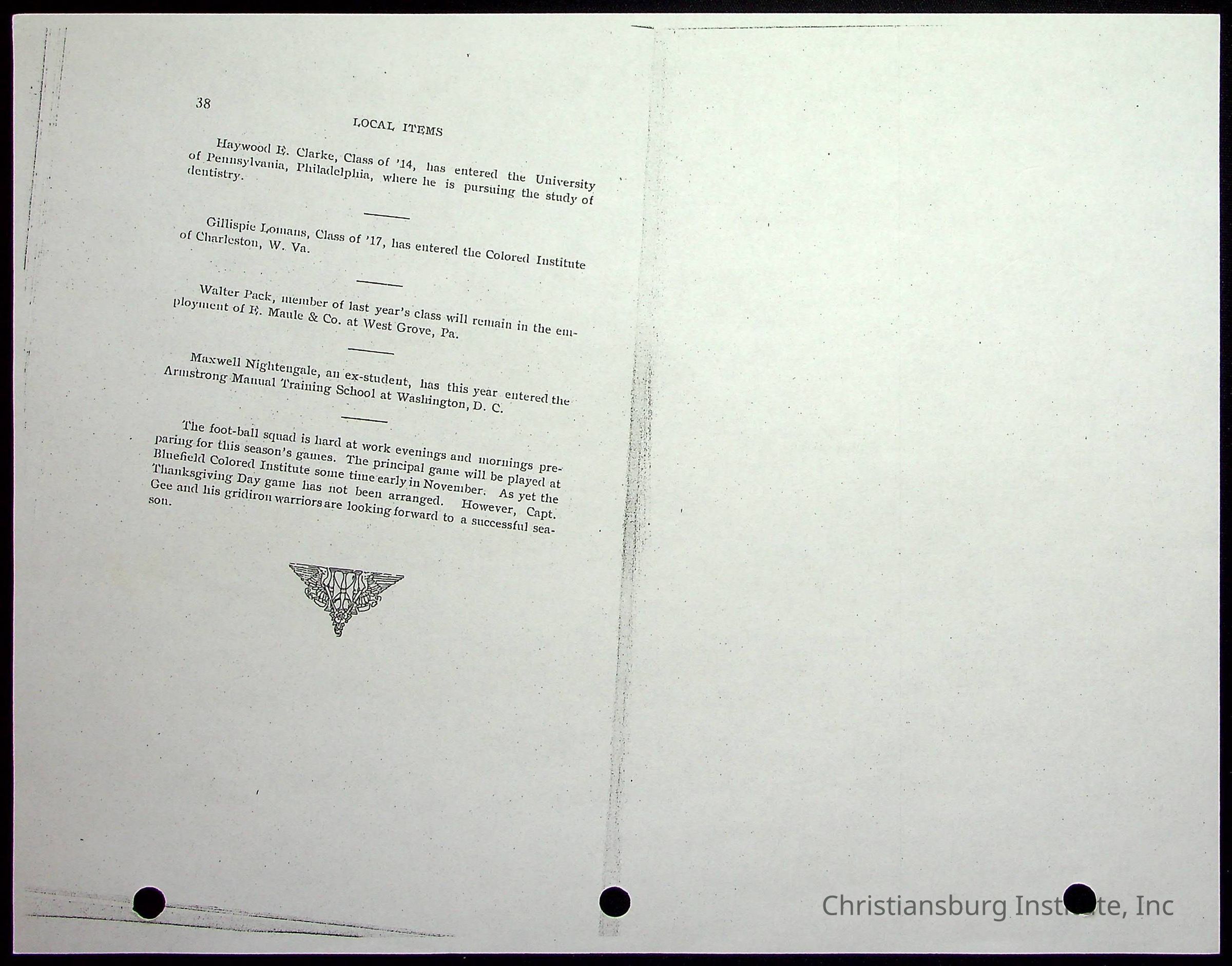 Christiansburg Industrial InstitutePlace Printed