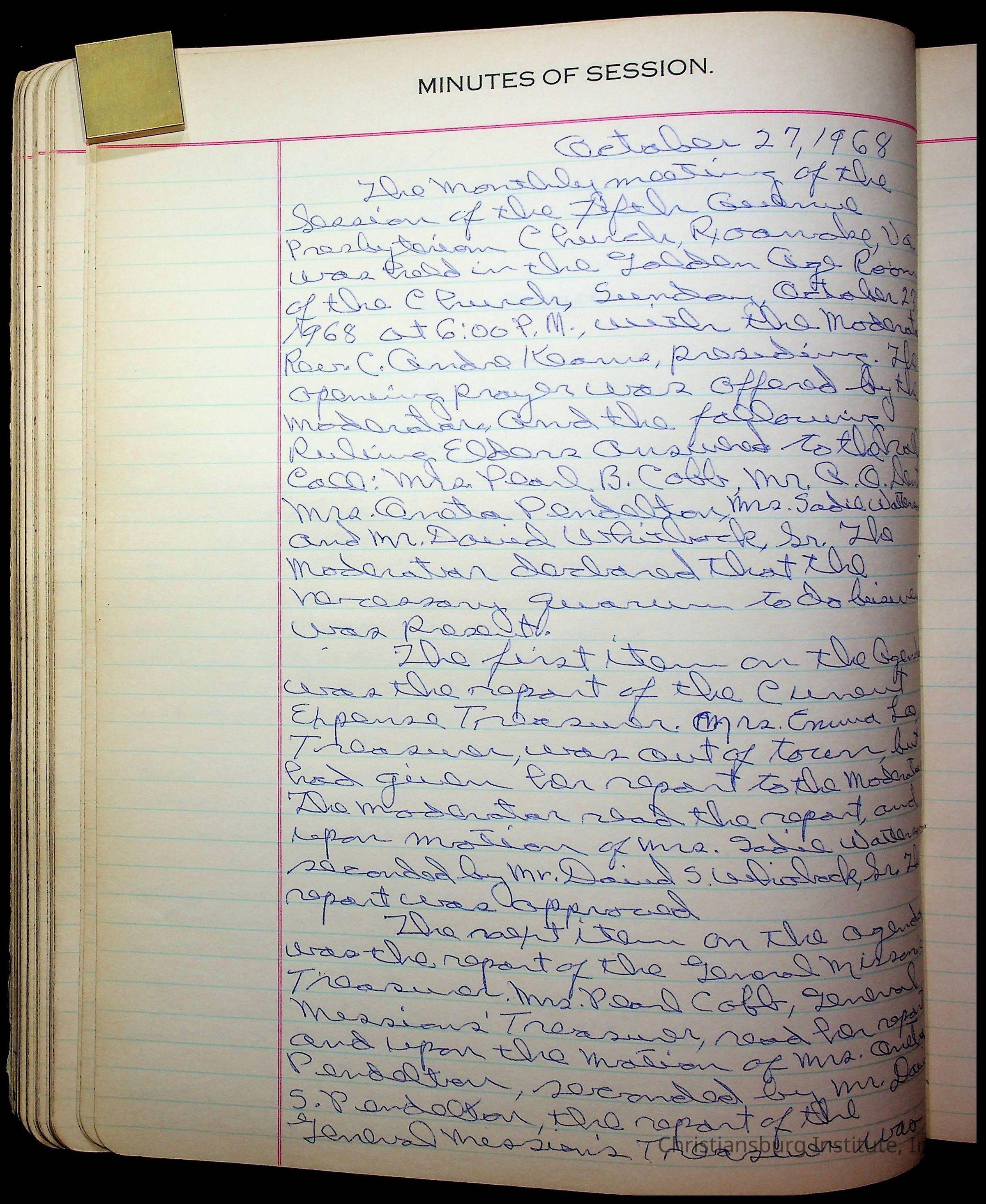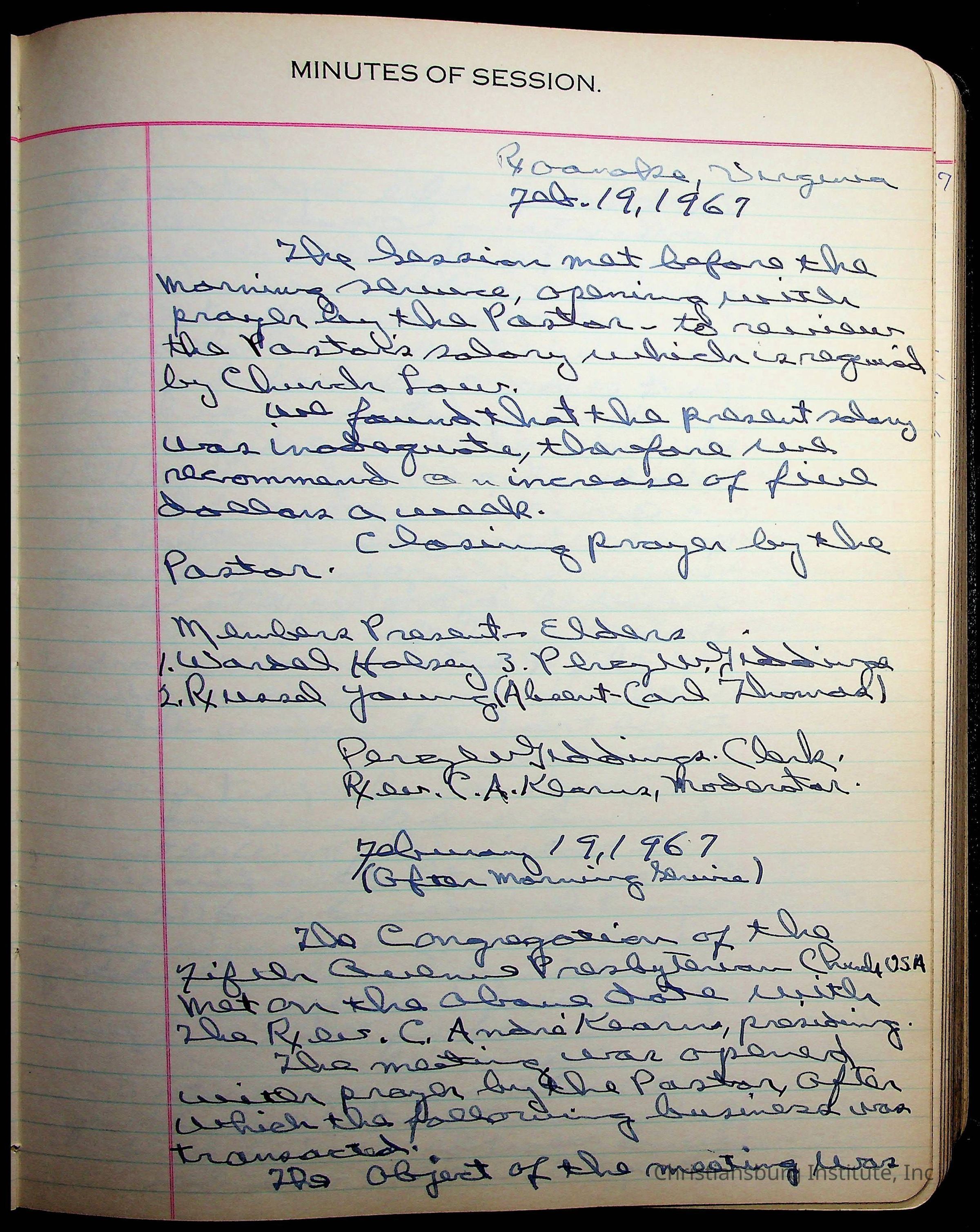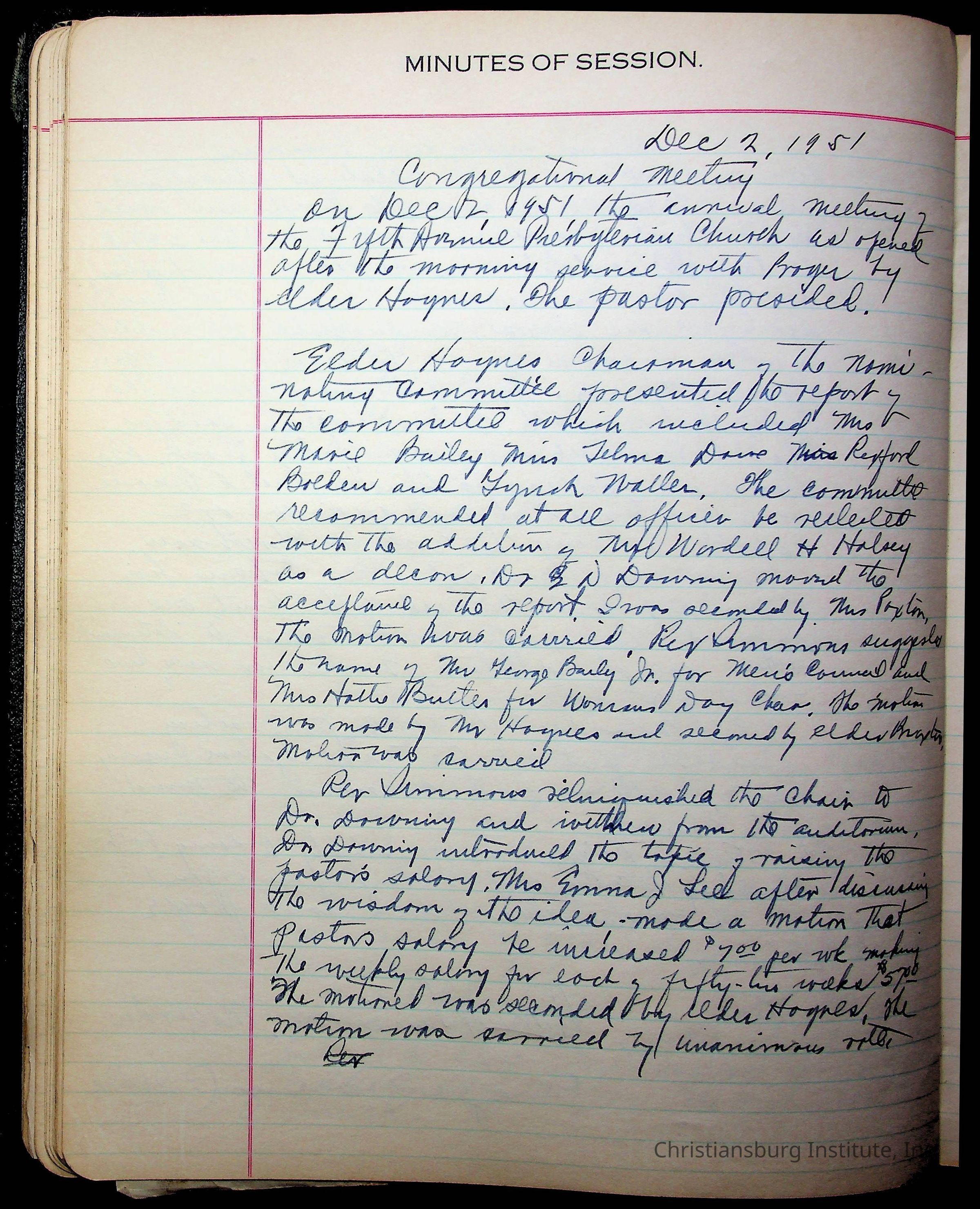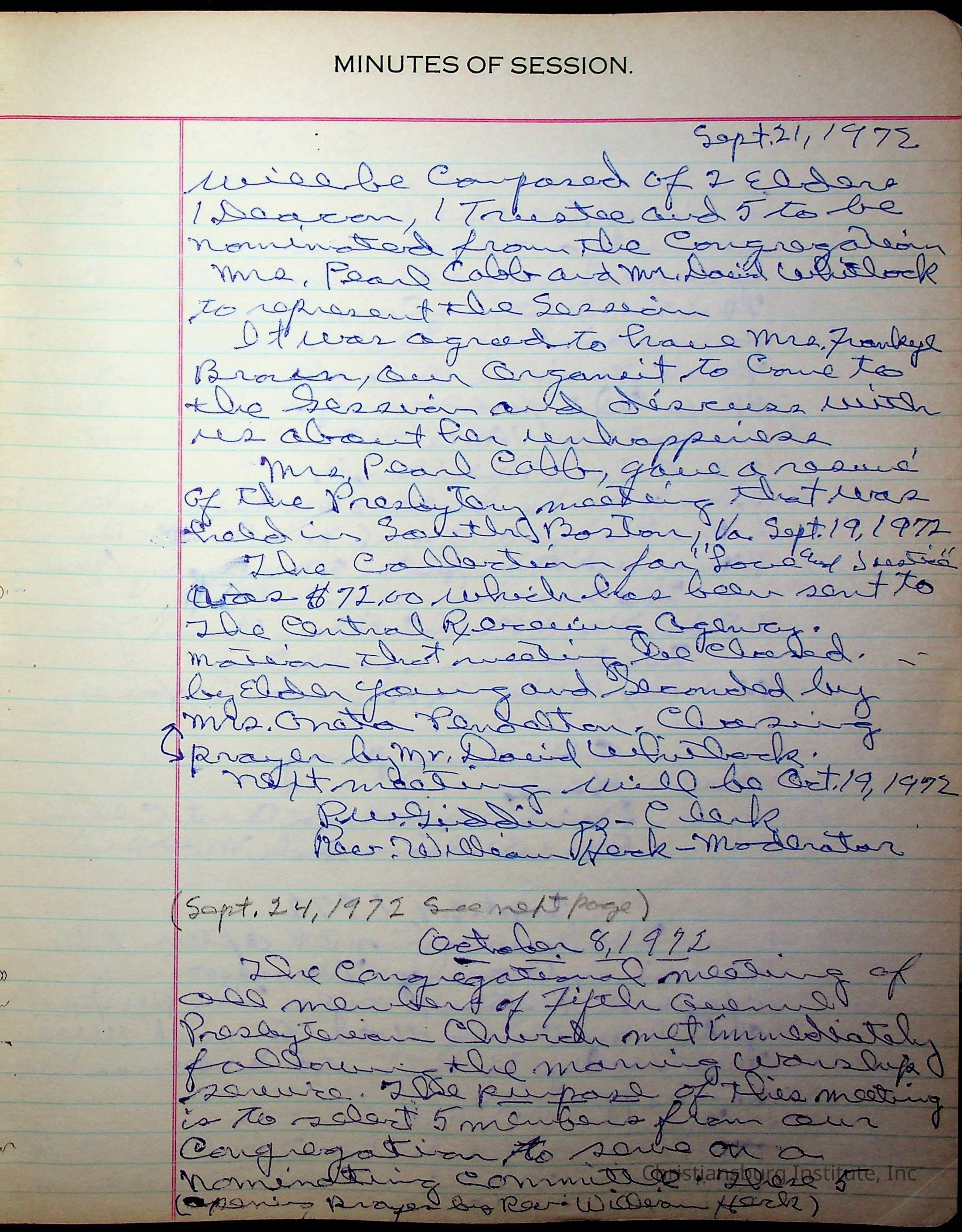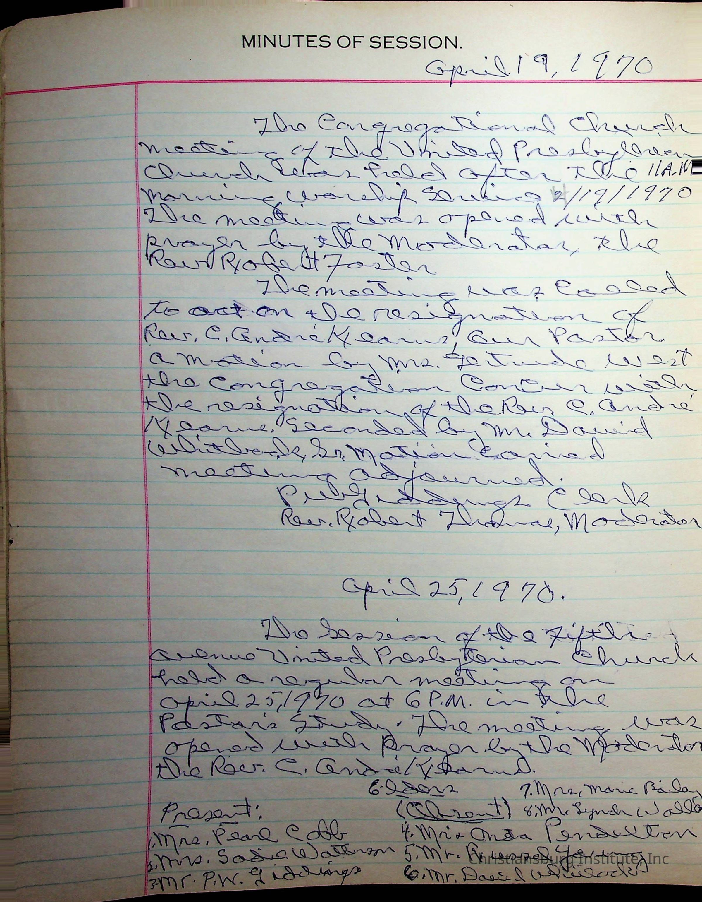 The session minutes for the Fifth Avenue Presbyterian Church from the years 1942-1972.Collection