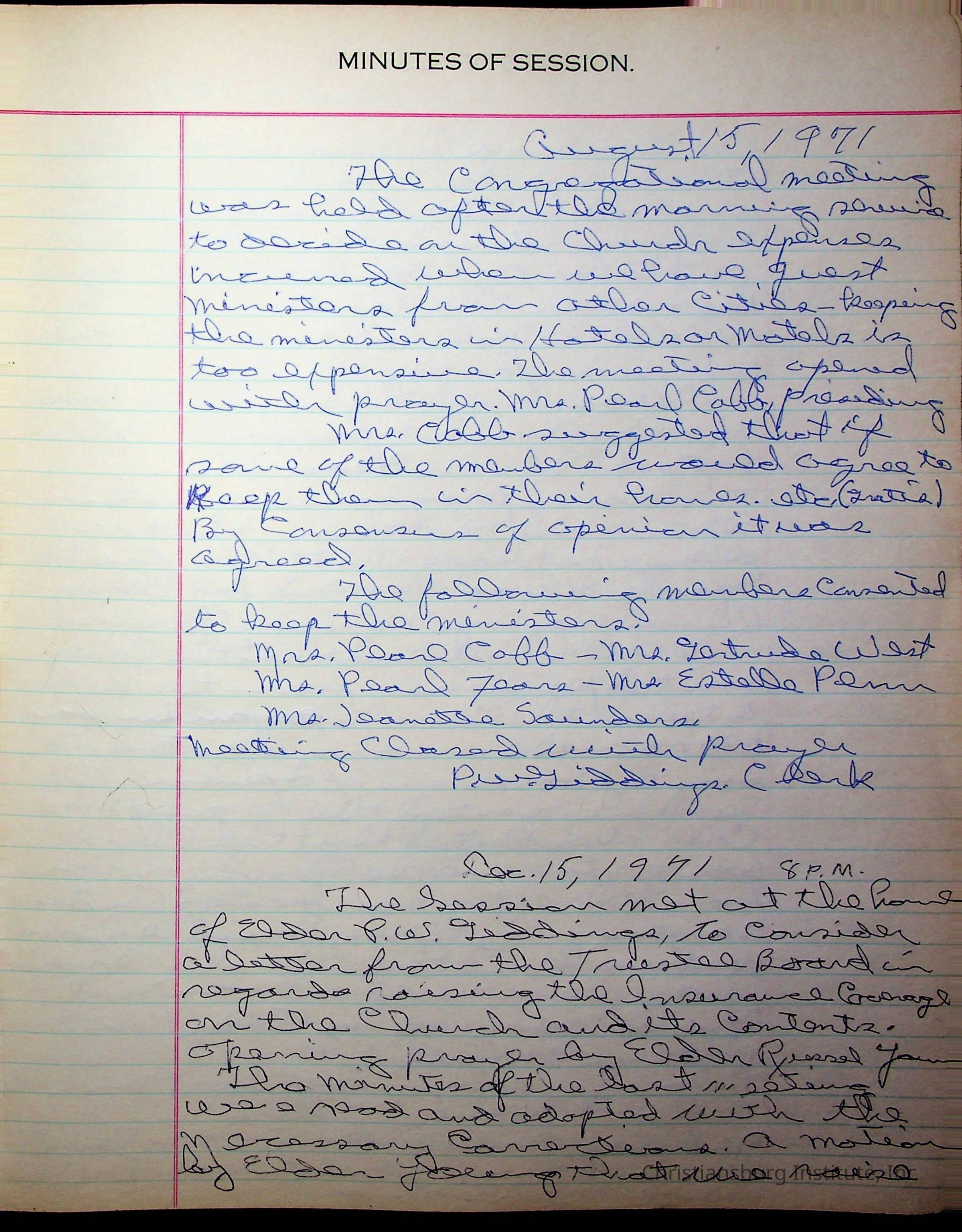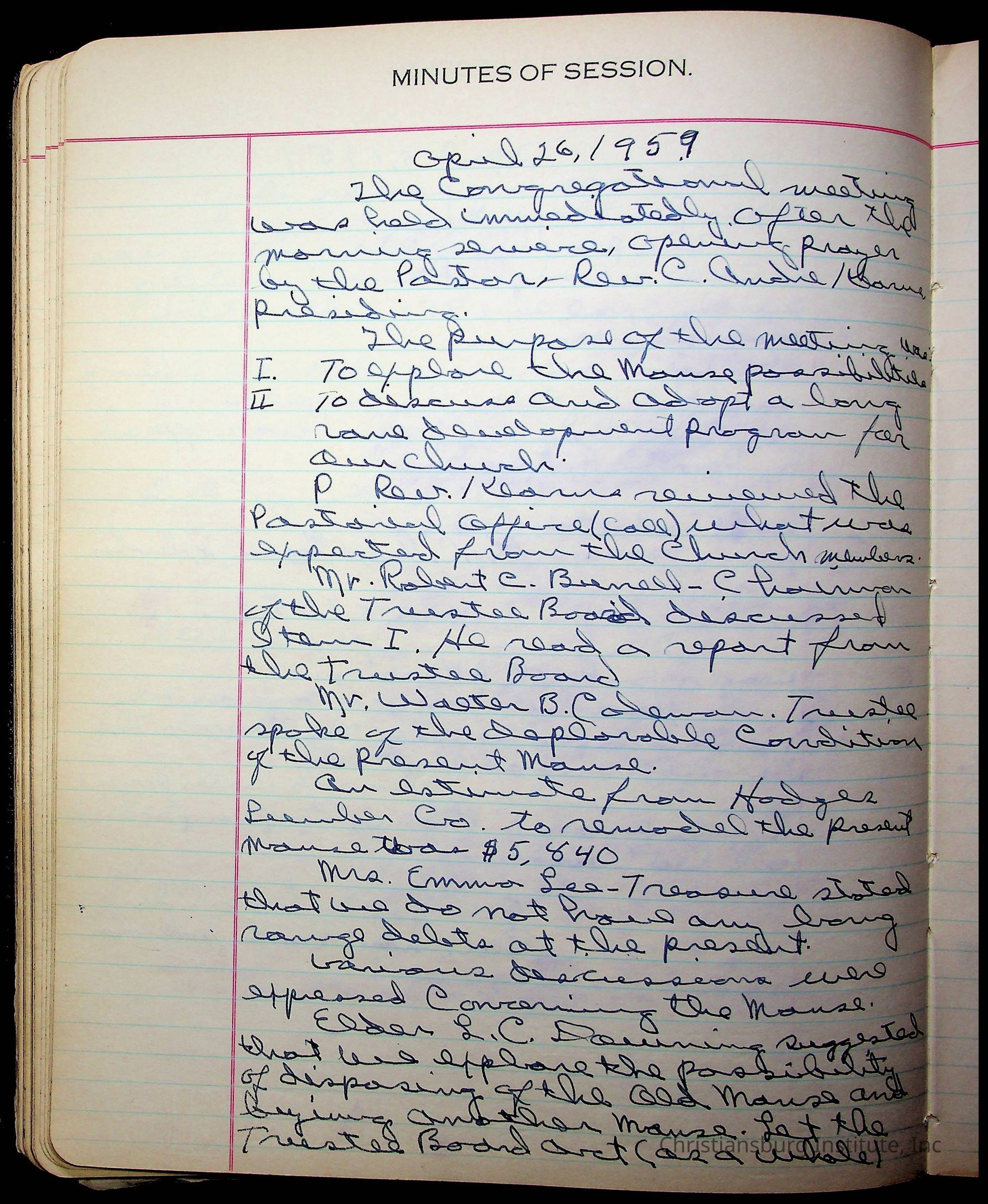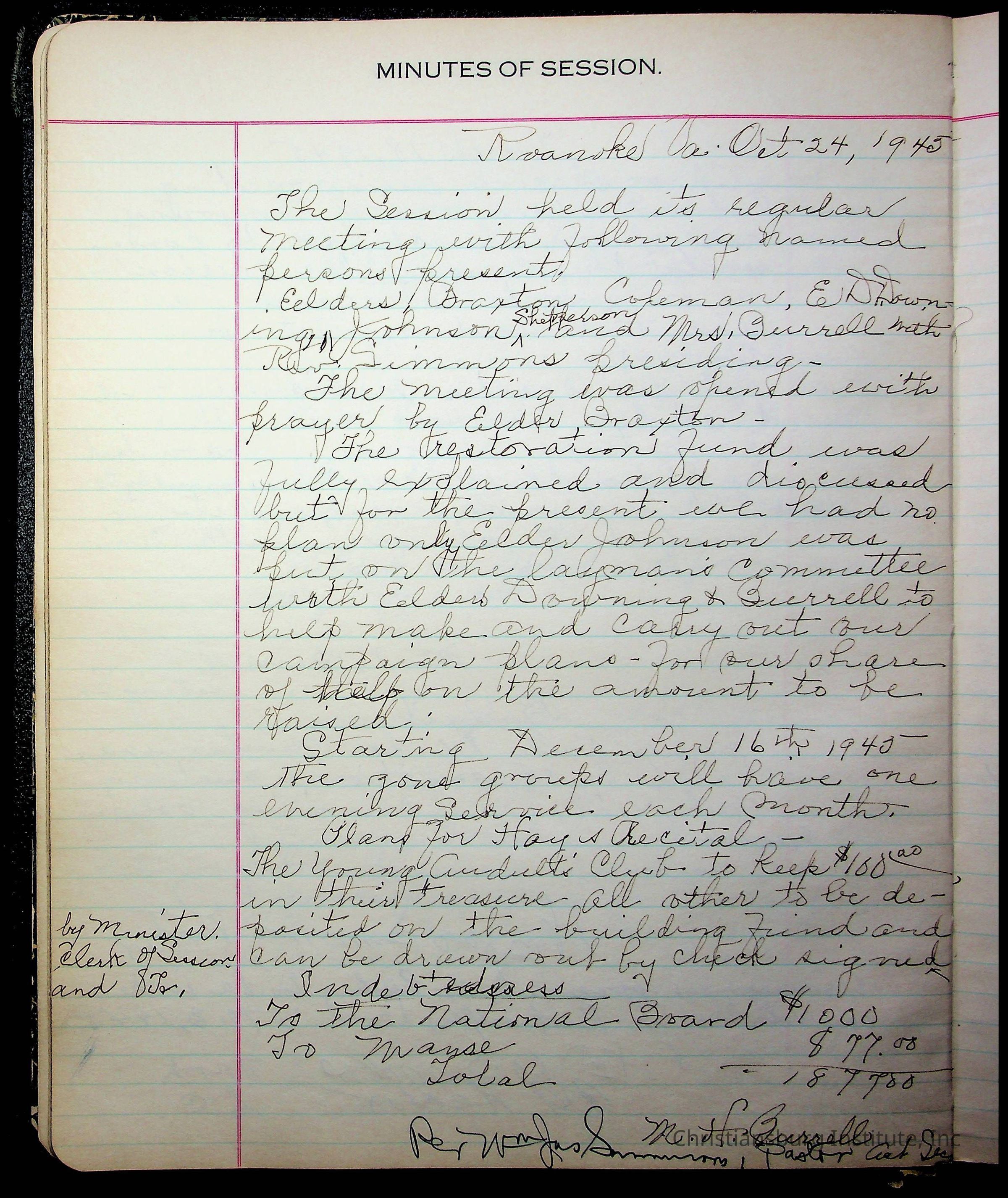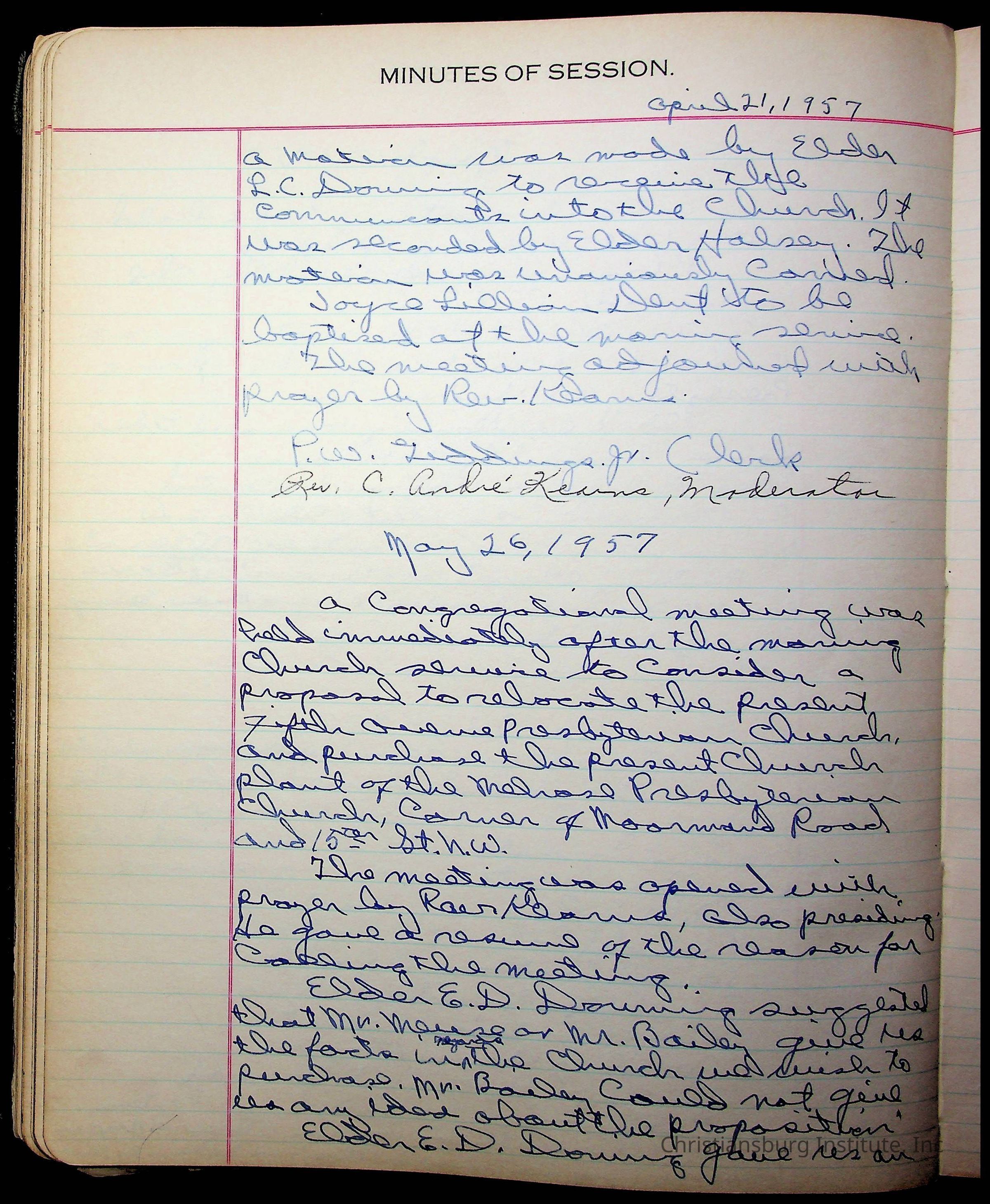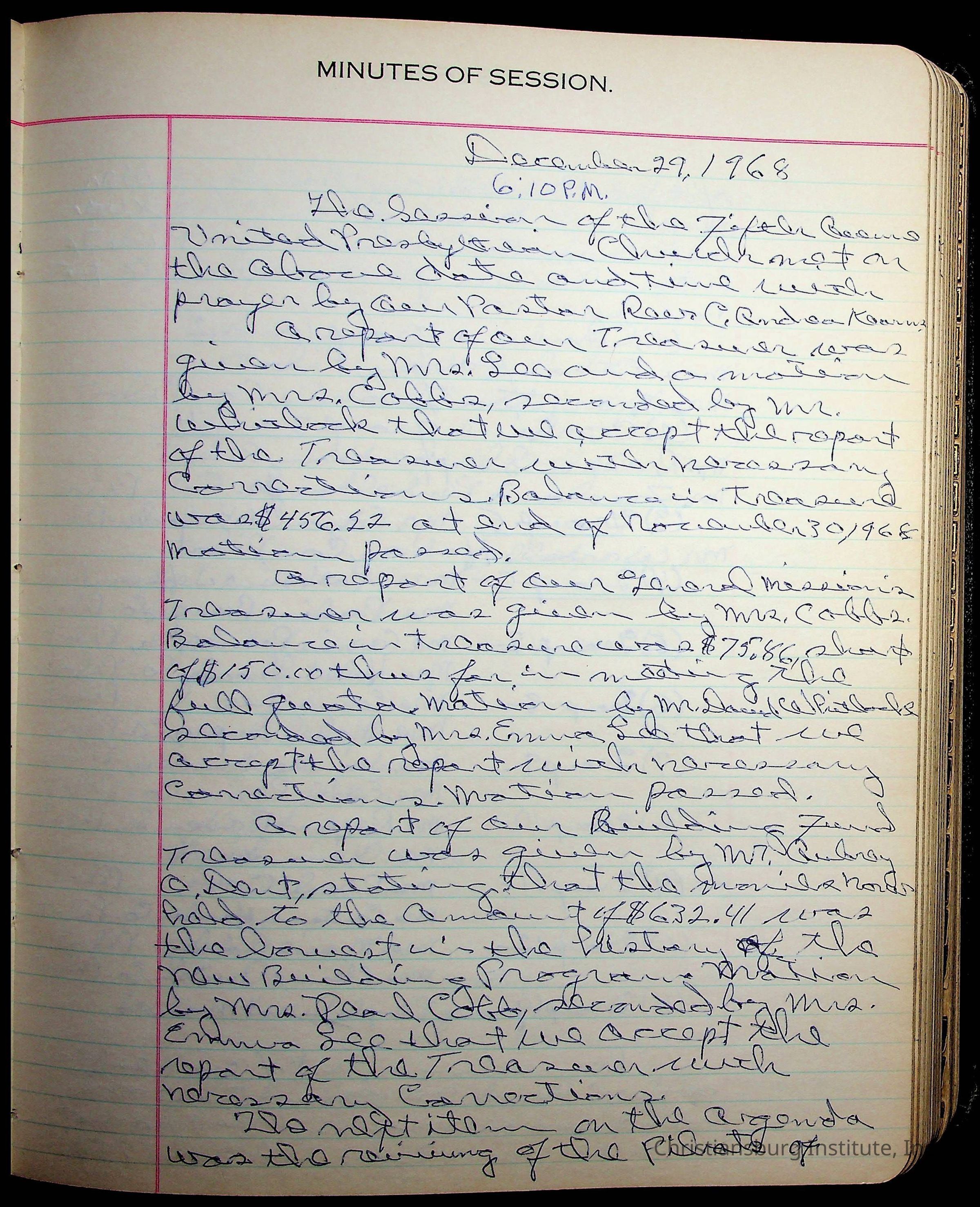 The session minutes for the Fifth Avenue Presbyterian Church from the years 1942-1972.Collection