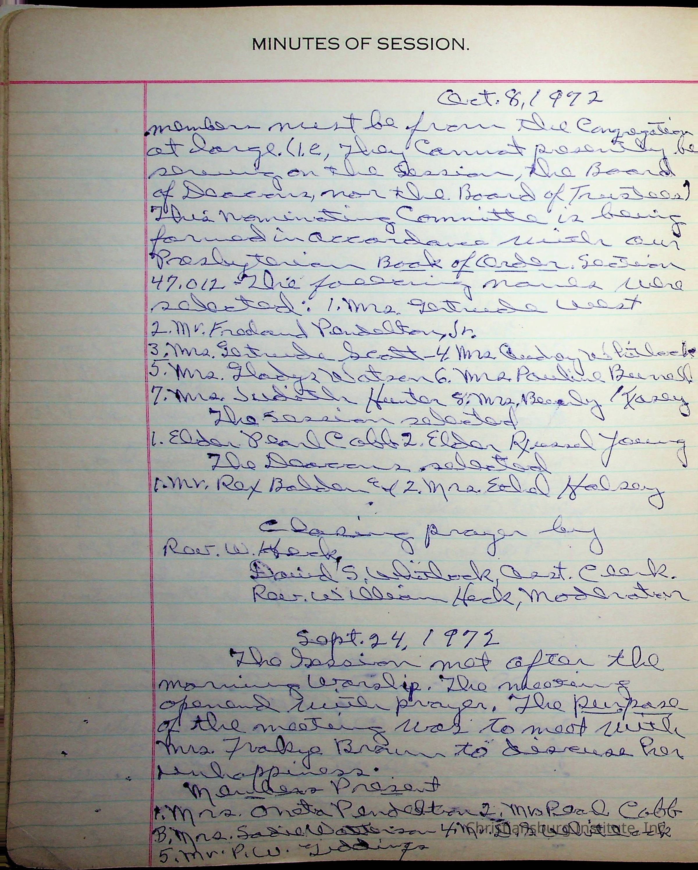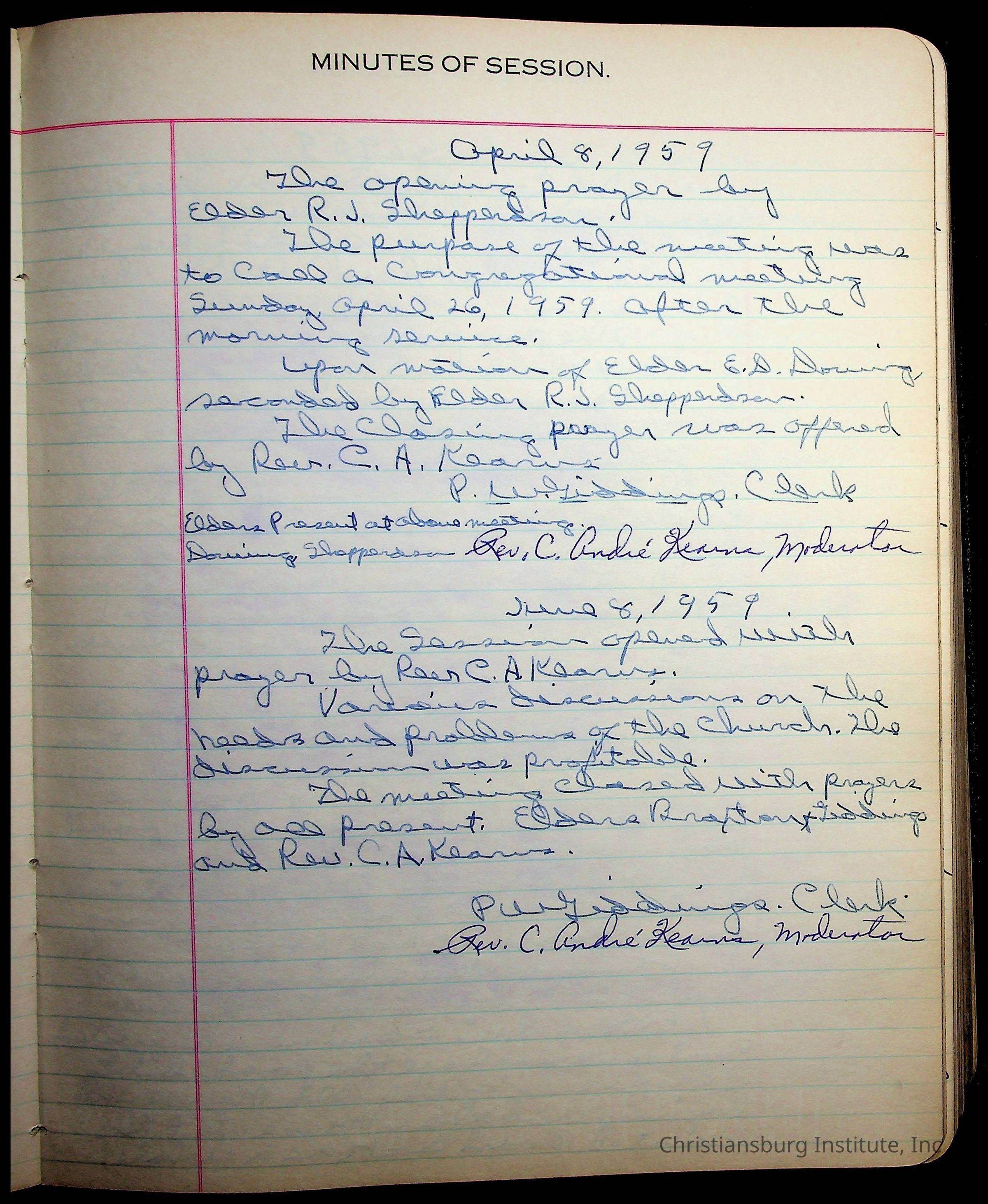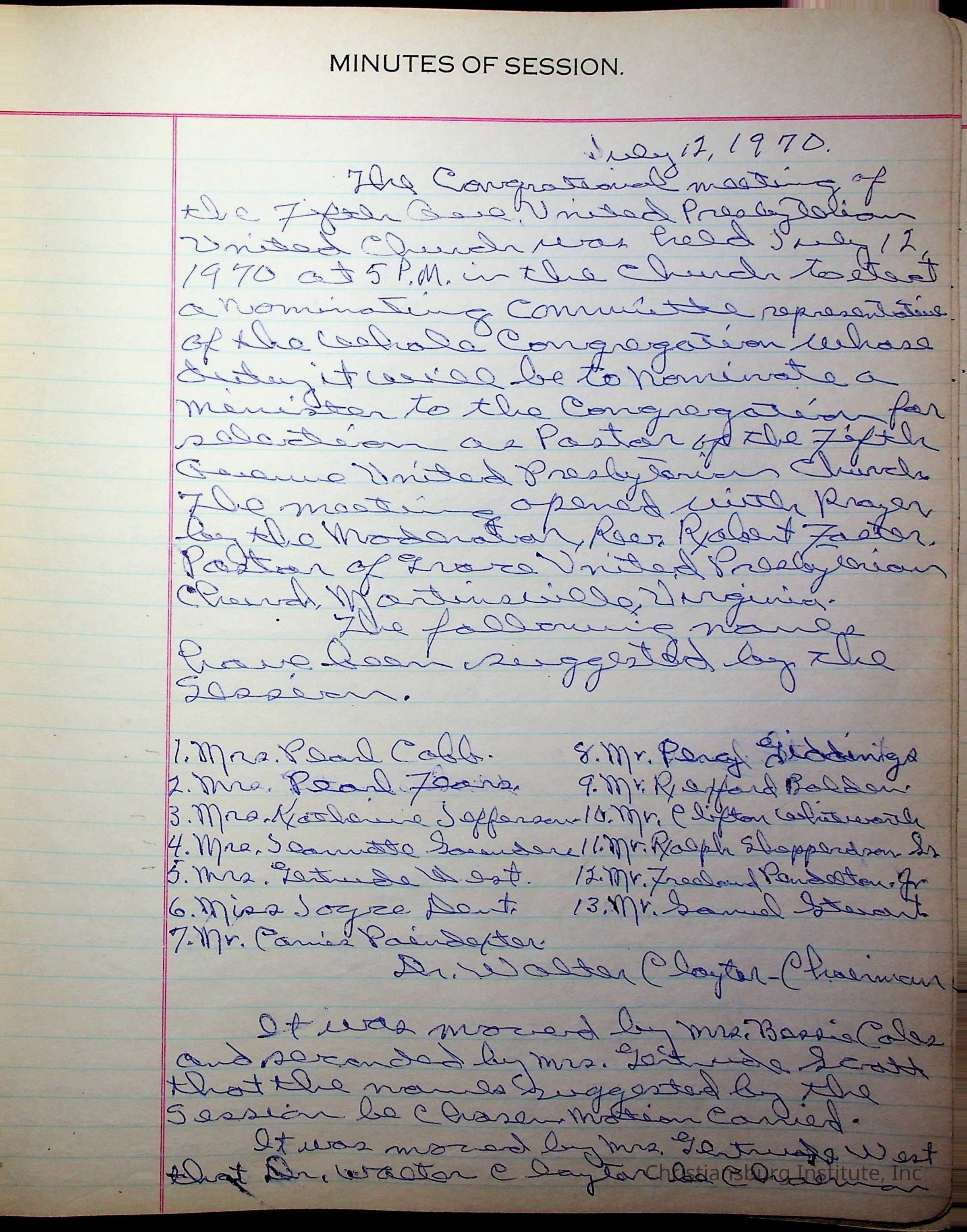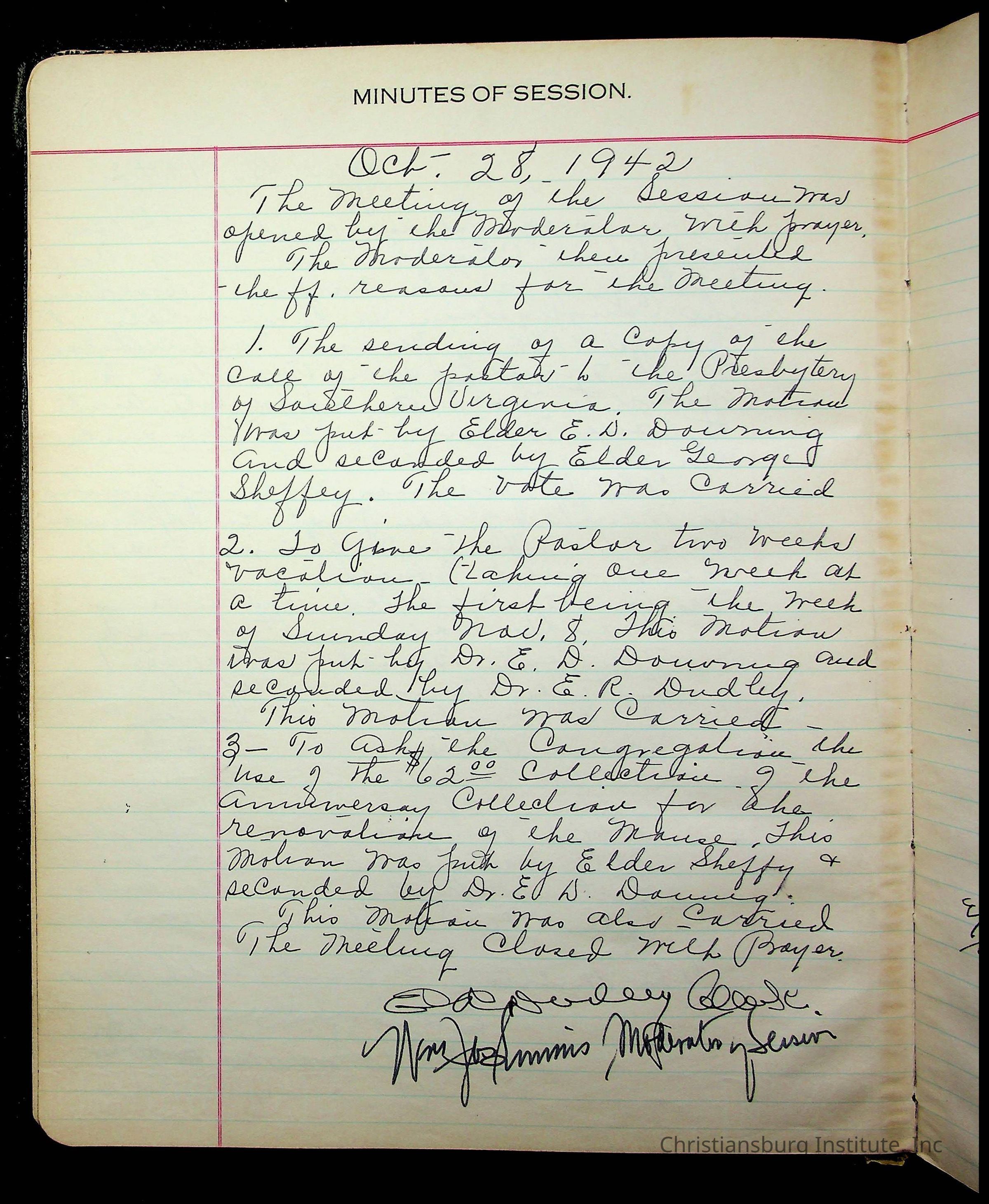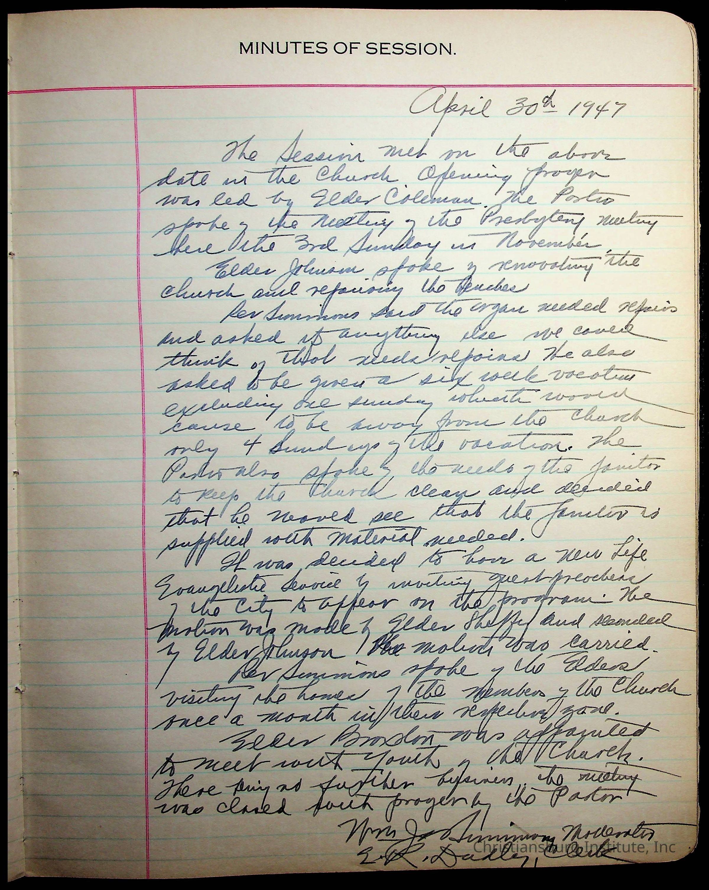 The session minutes for the Fifth Avenue Presbyterian Church from the years 1942-1972.Collection