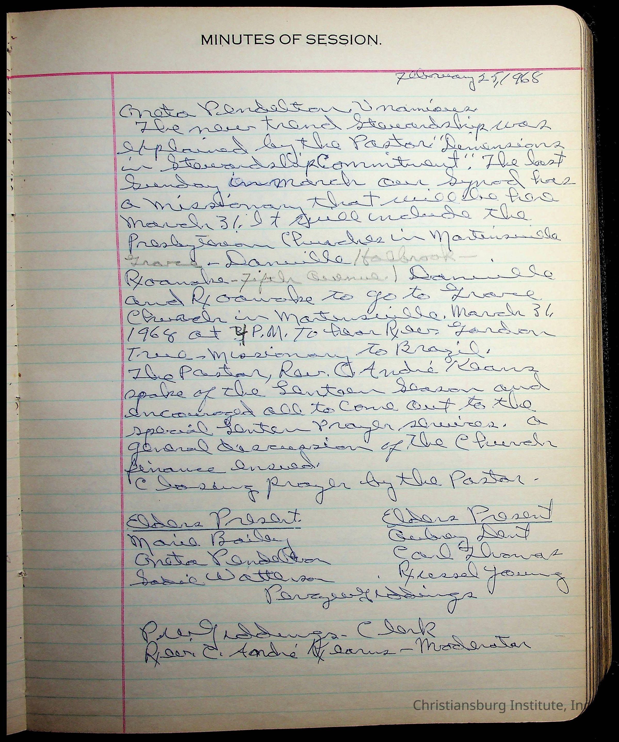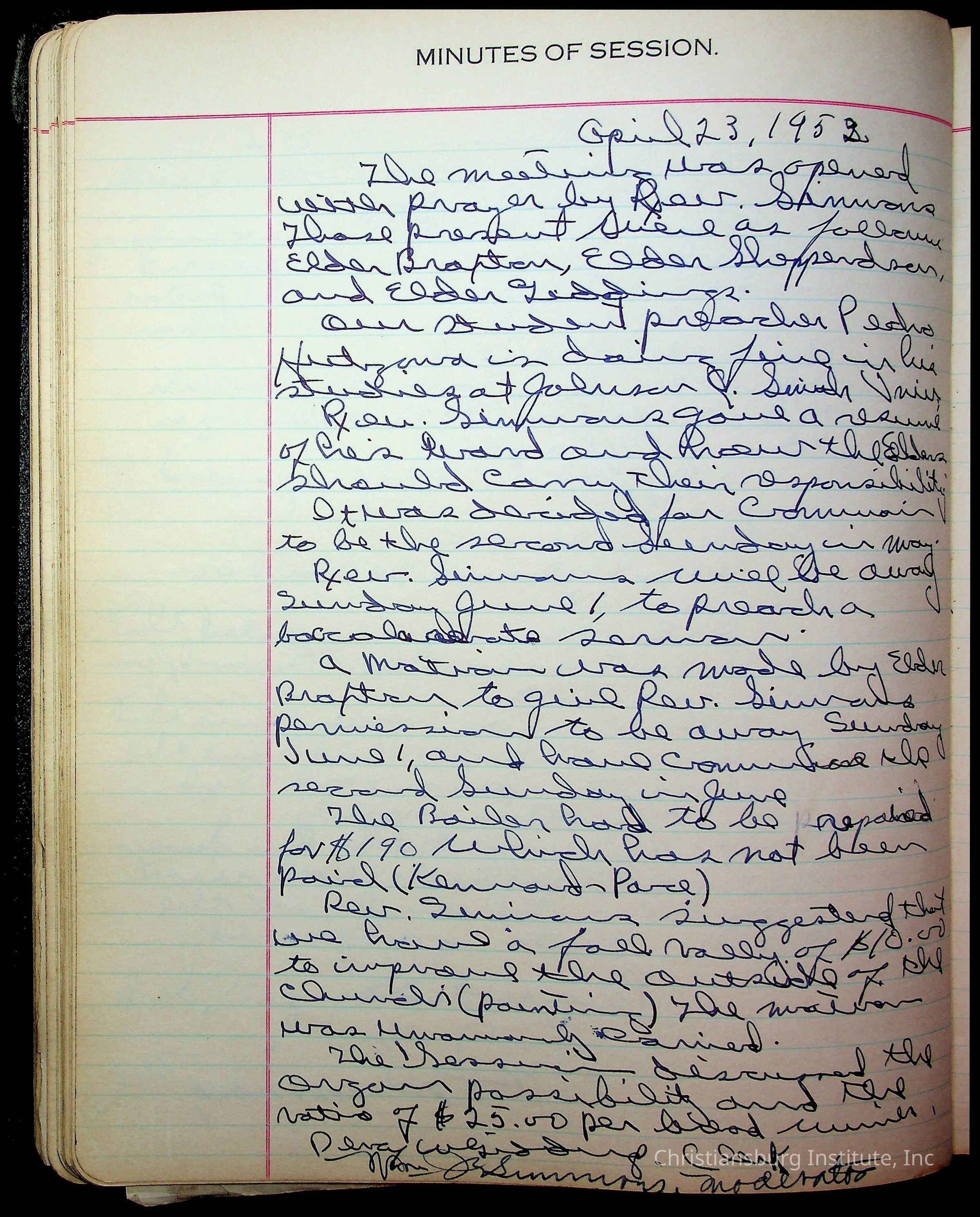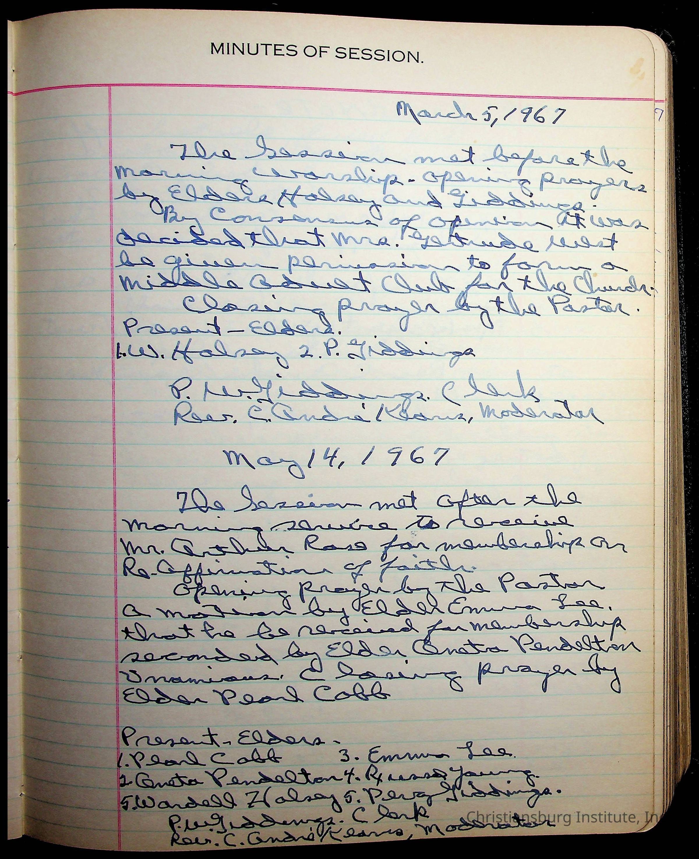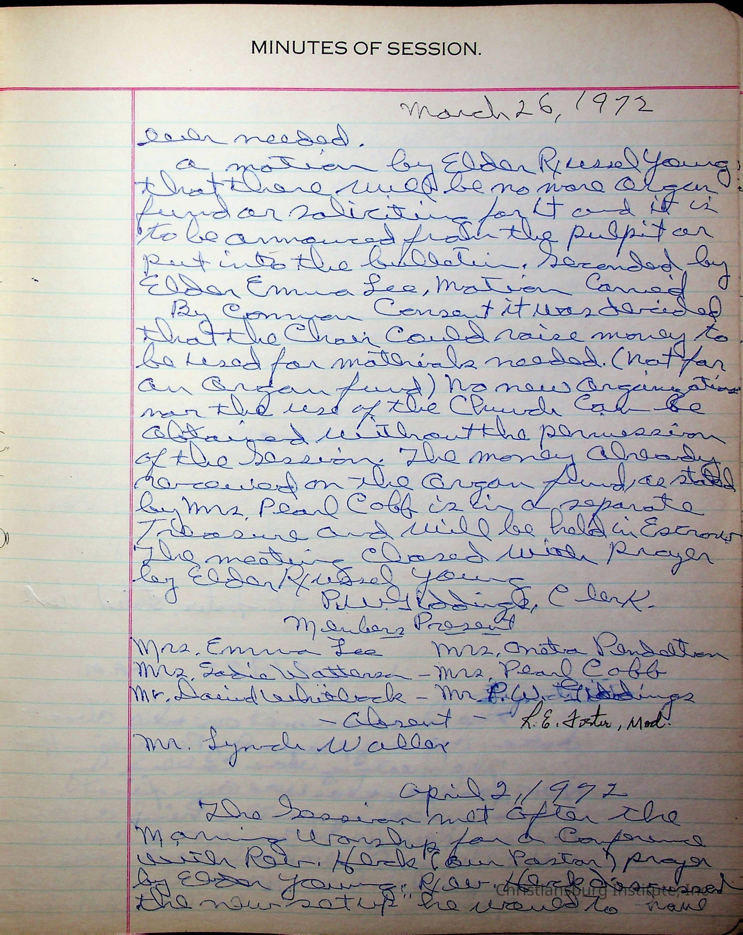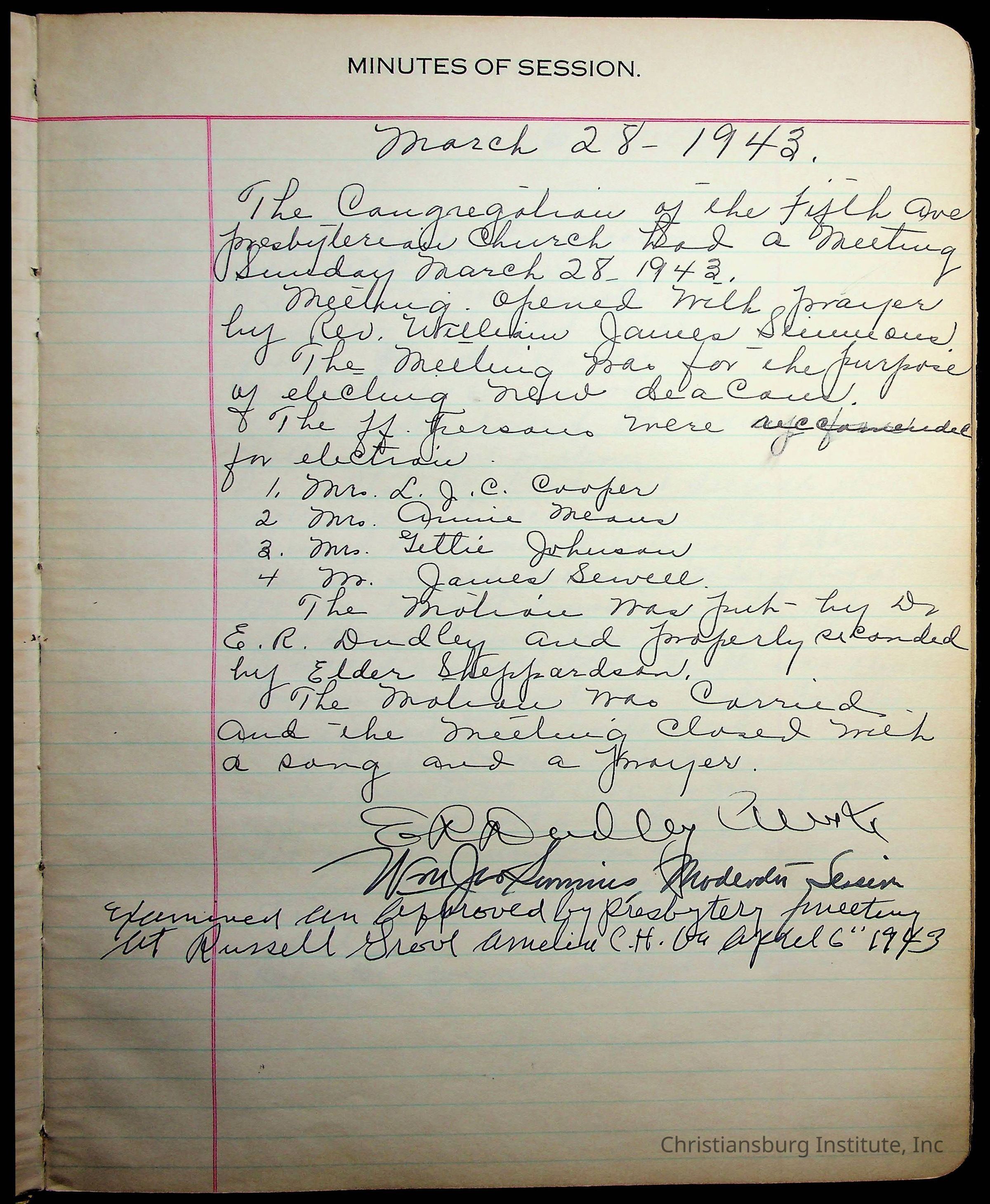 The session minutes for the Fifth Avenue Presbyterian Church from the years 1942-1972.Collection
