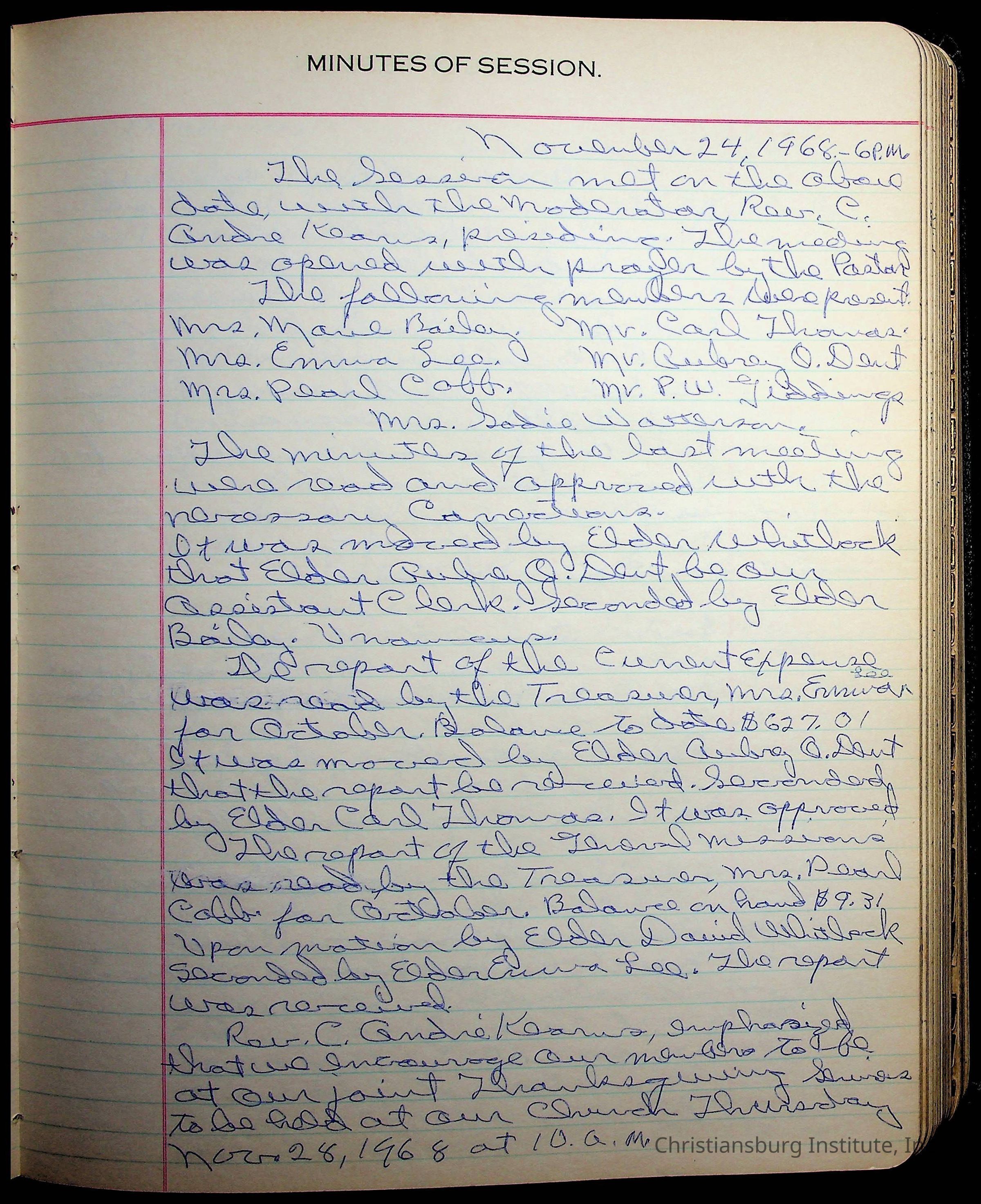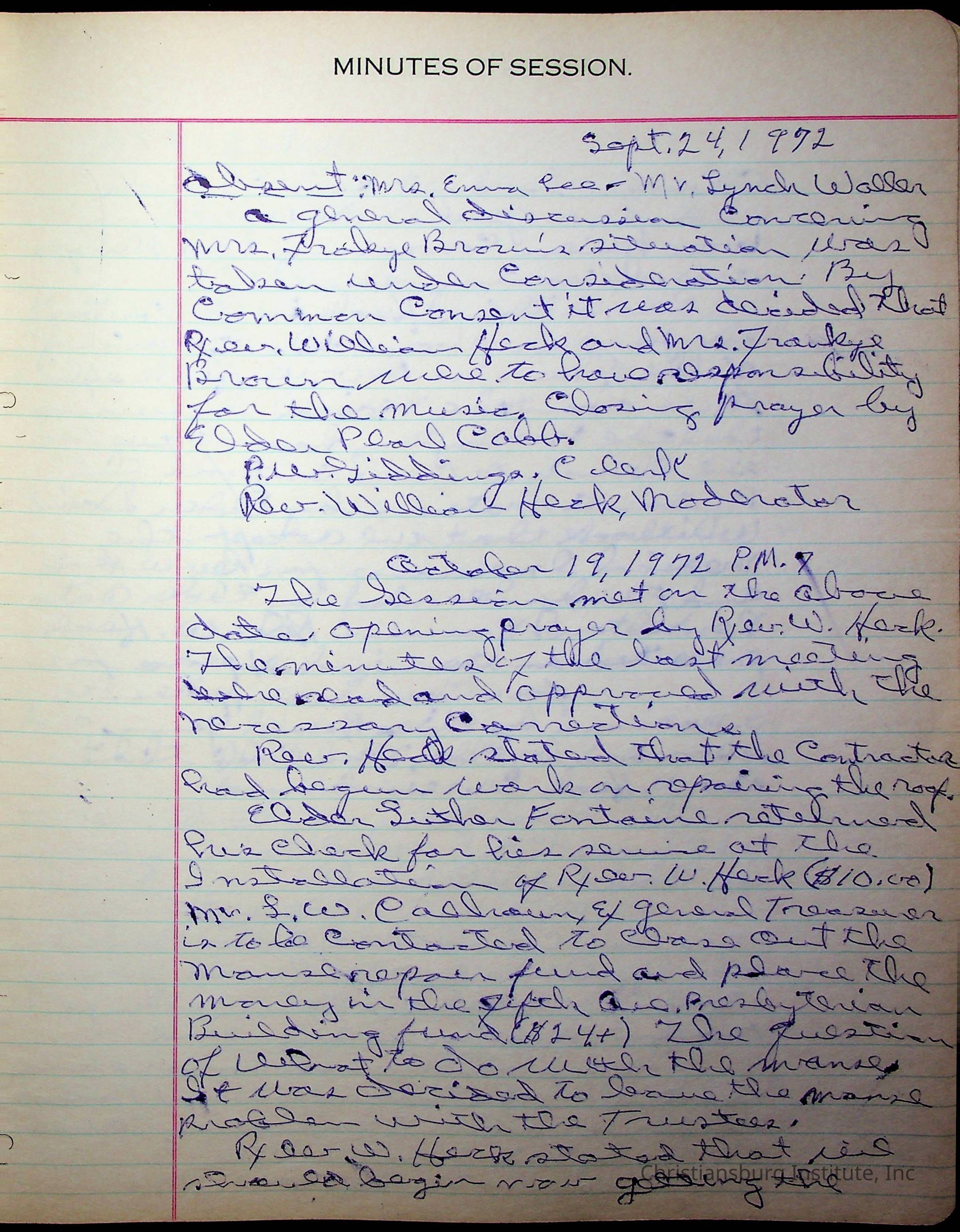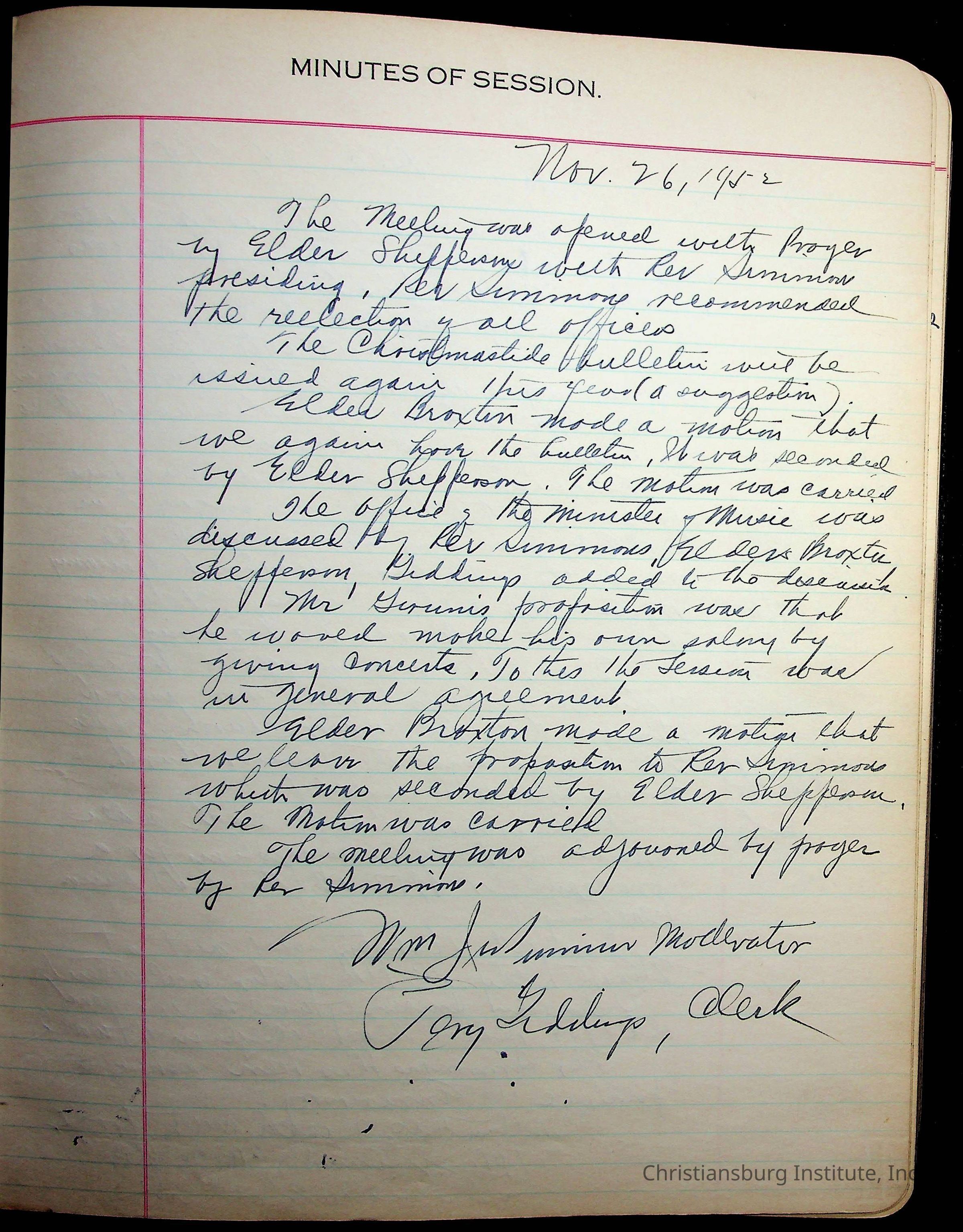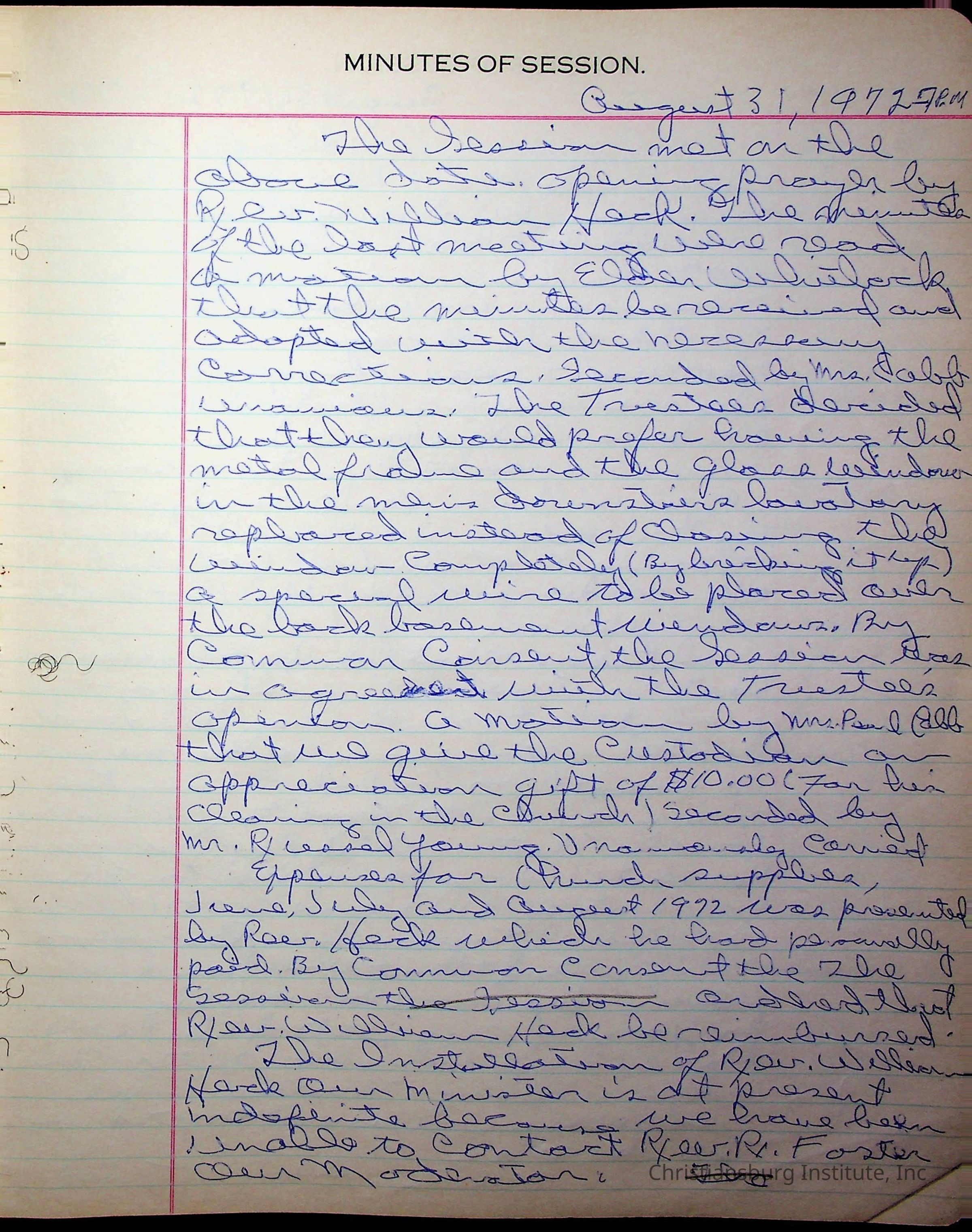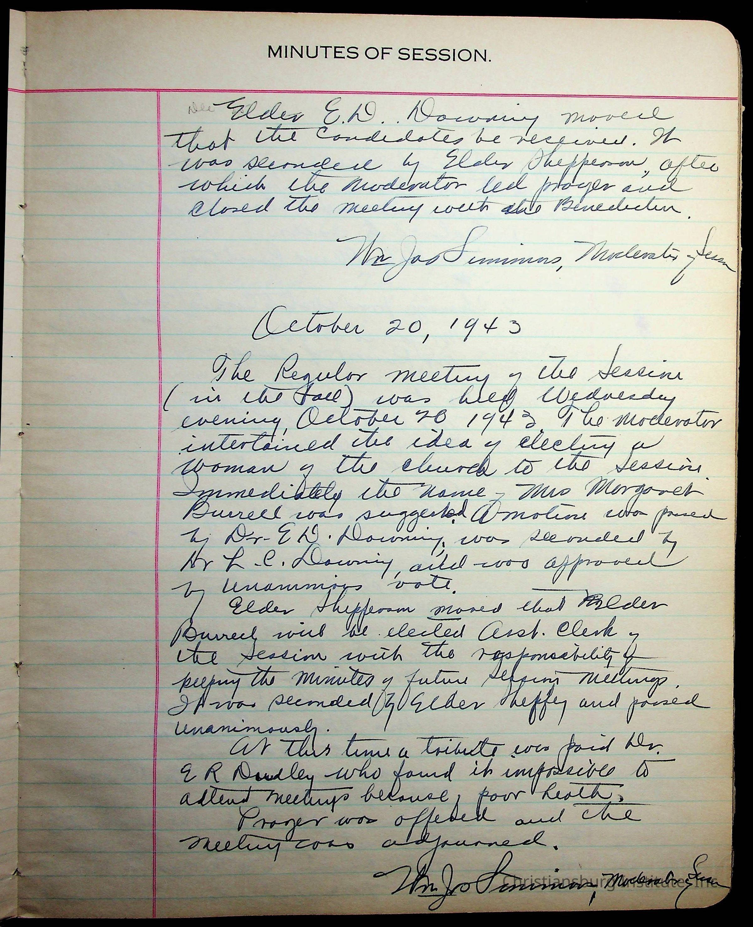 The session minutes for the Fifth Avenue Presbyterian Church from the years 1942-1972.Collection