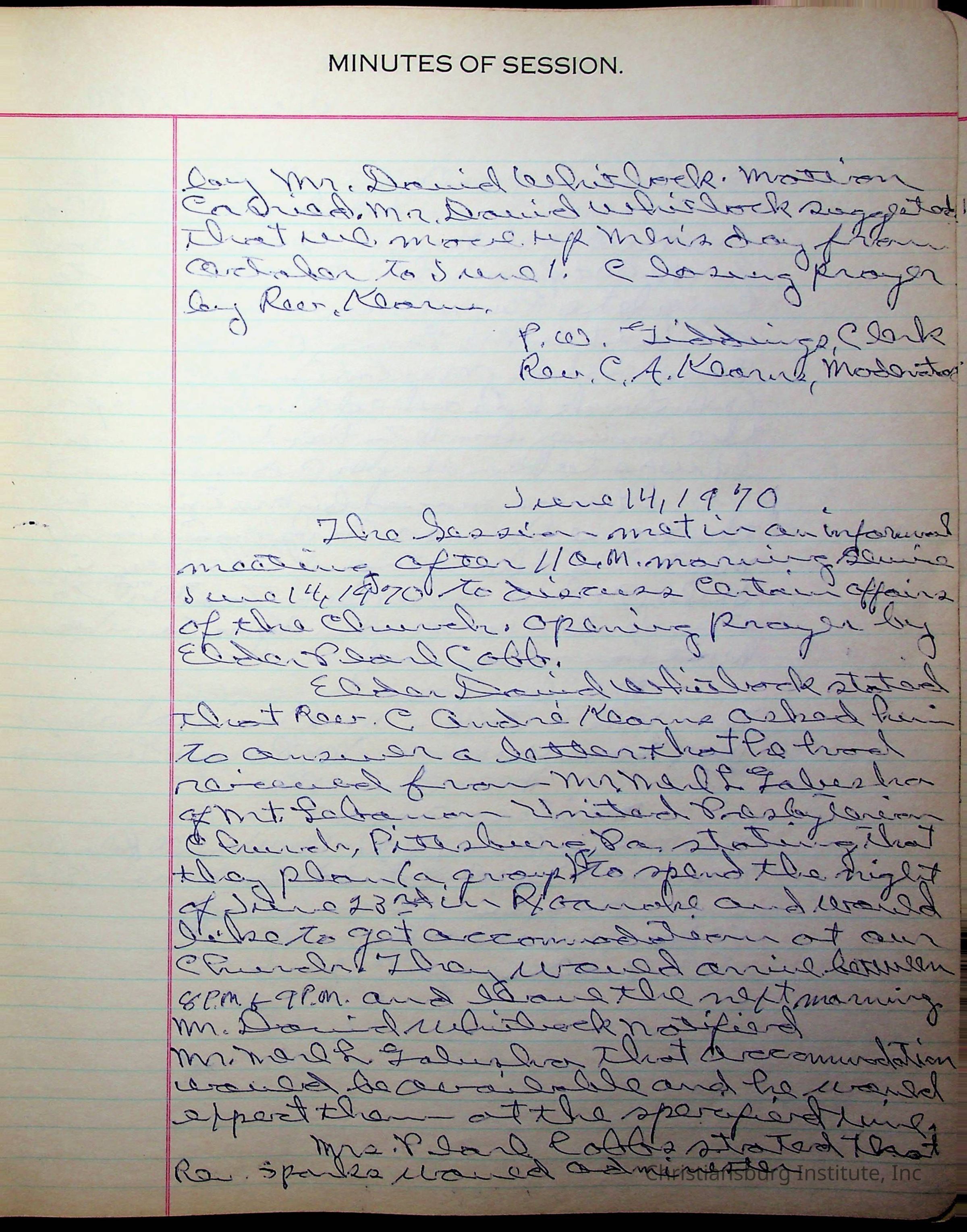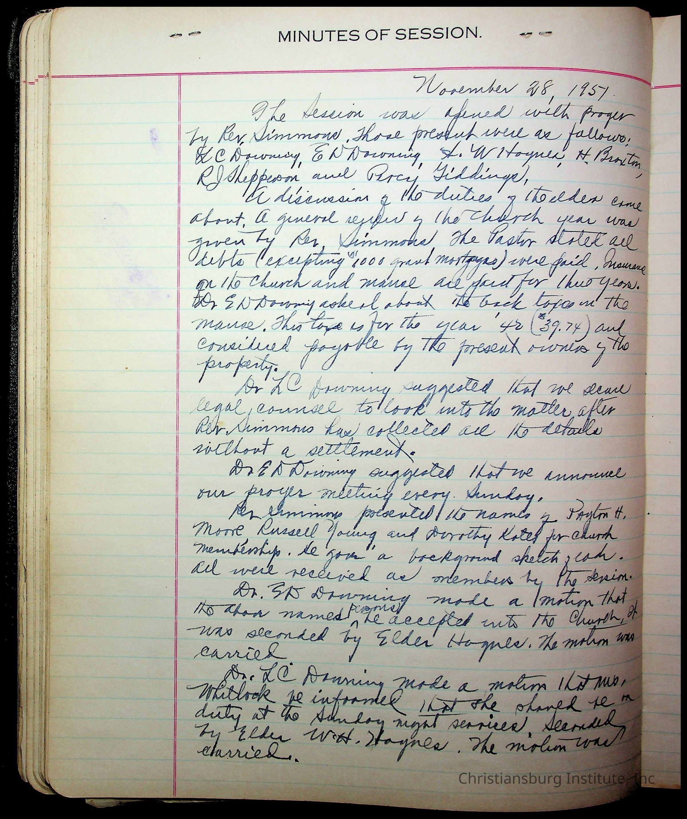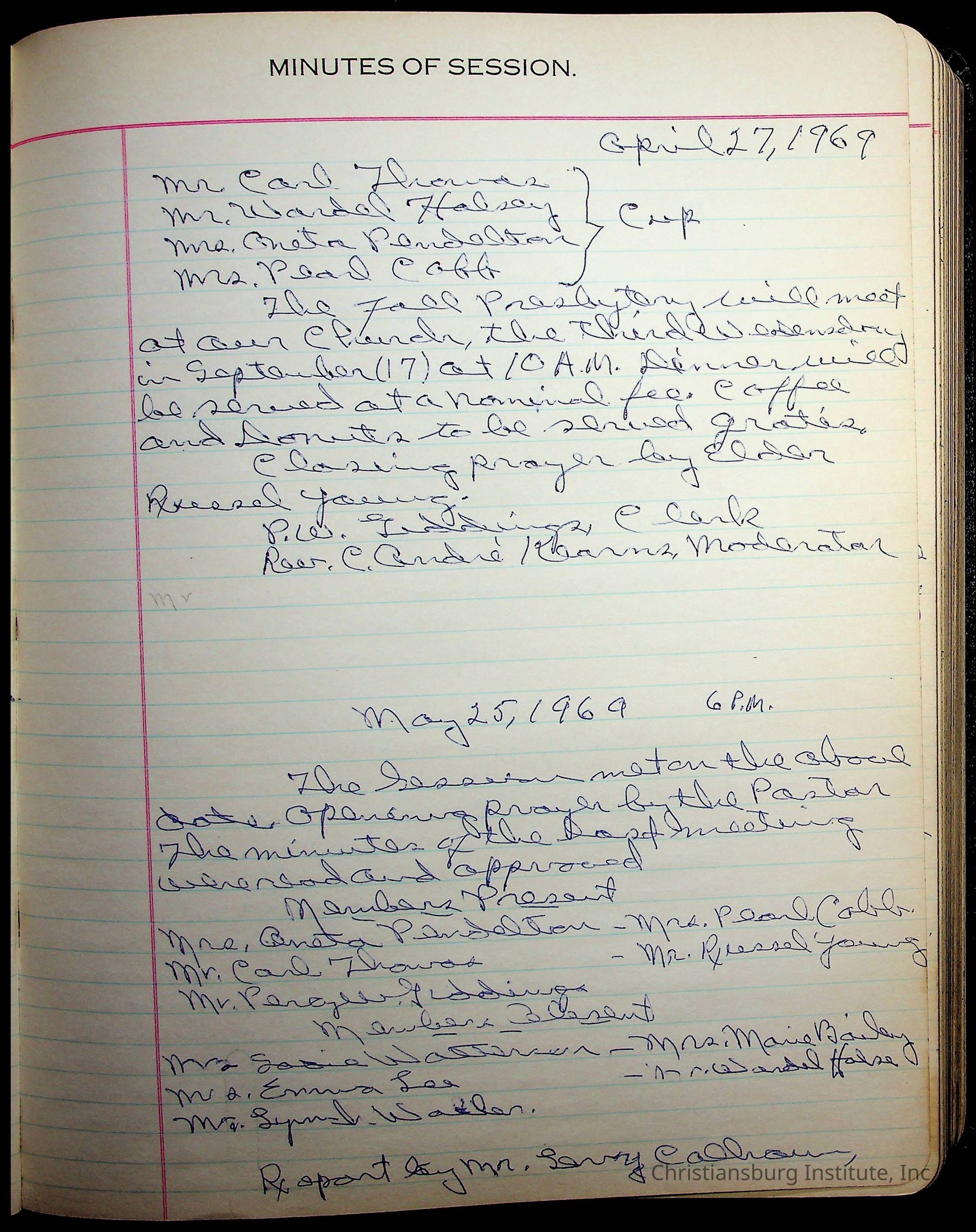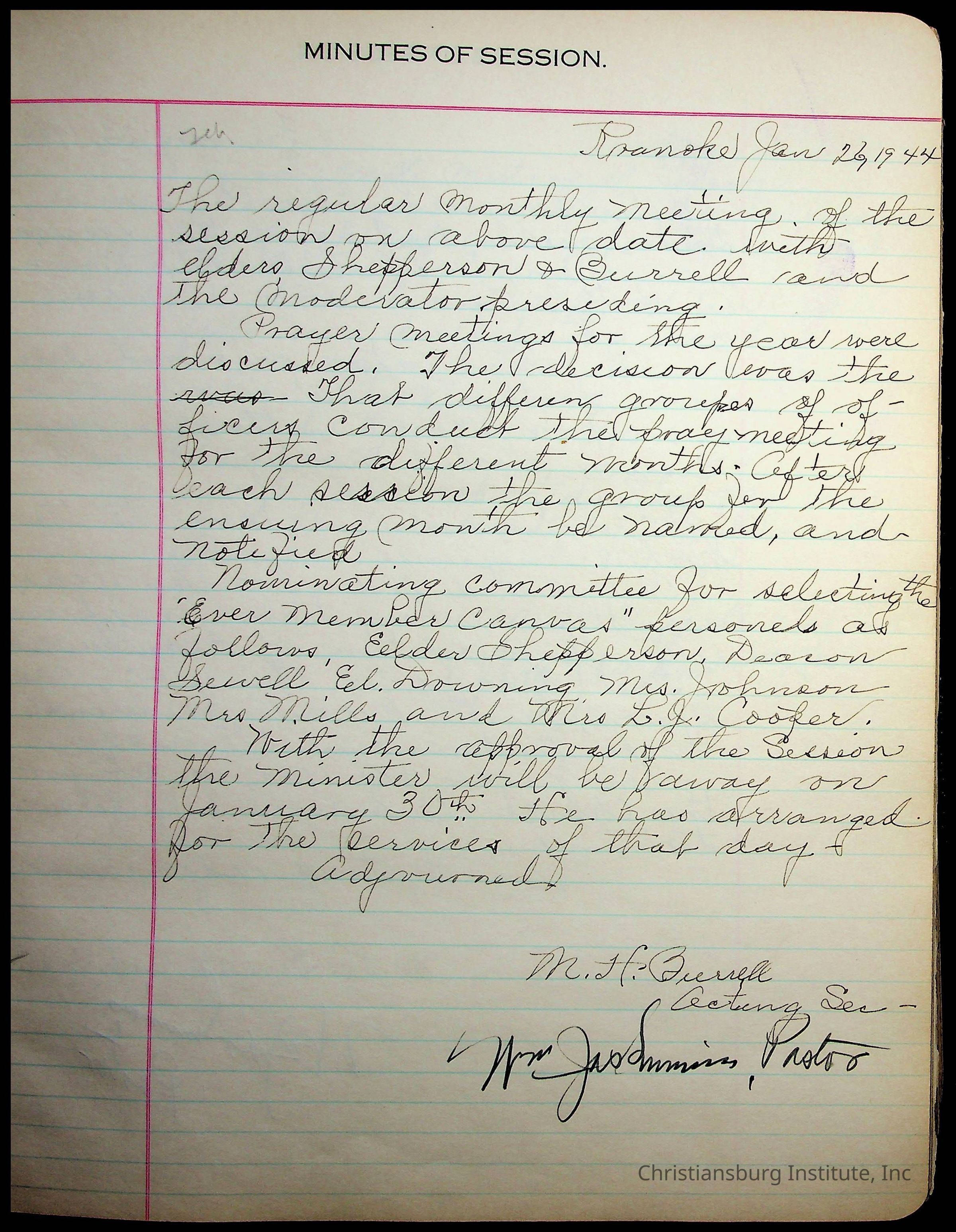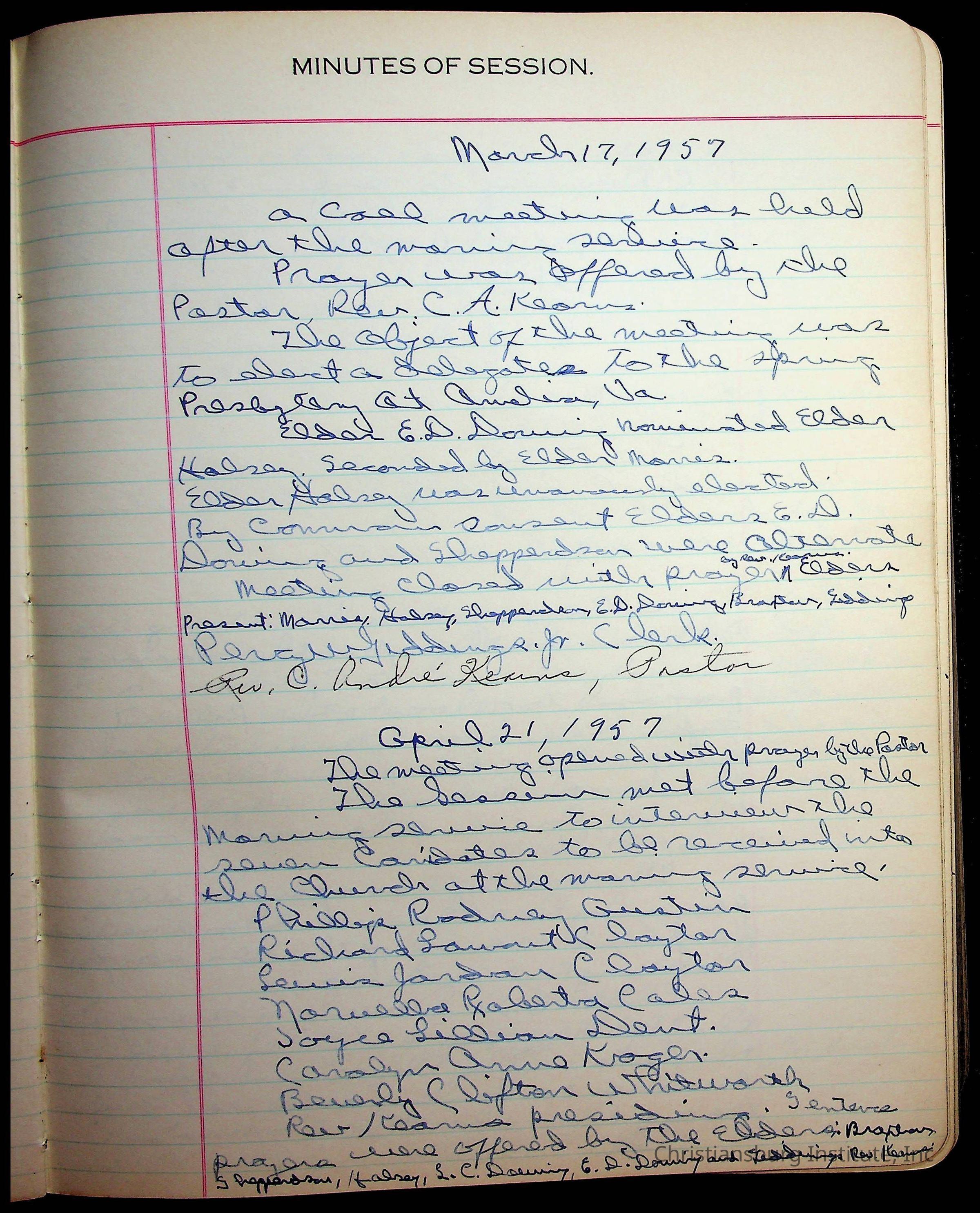 The session minutes for the Fifth Avenue Presbyterian Church from the years 1942-1972.Collection