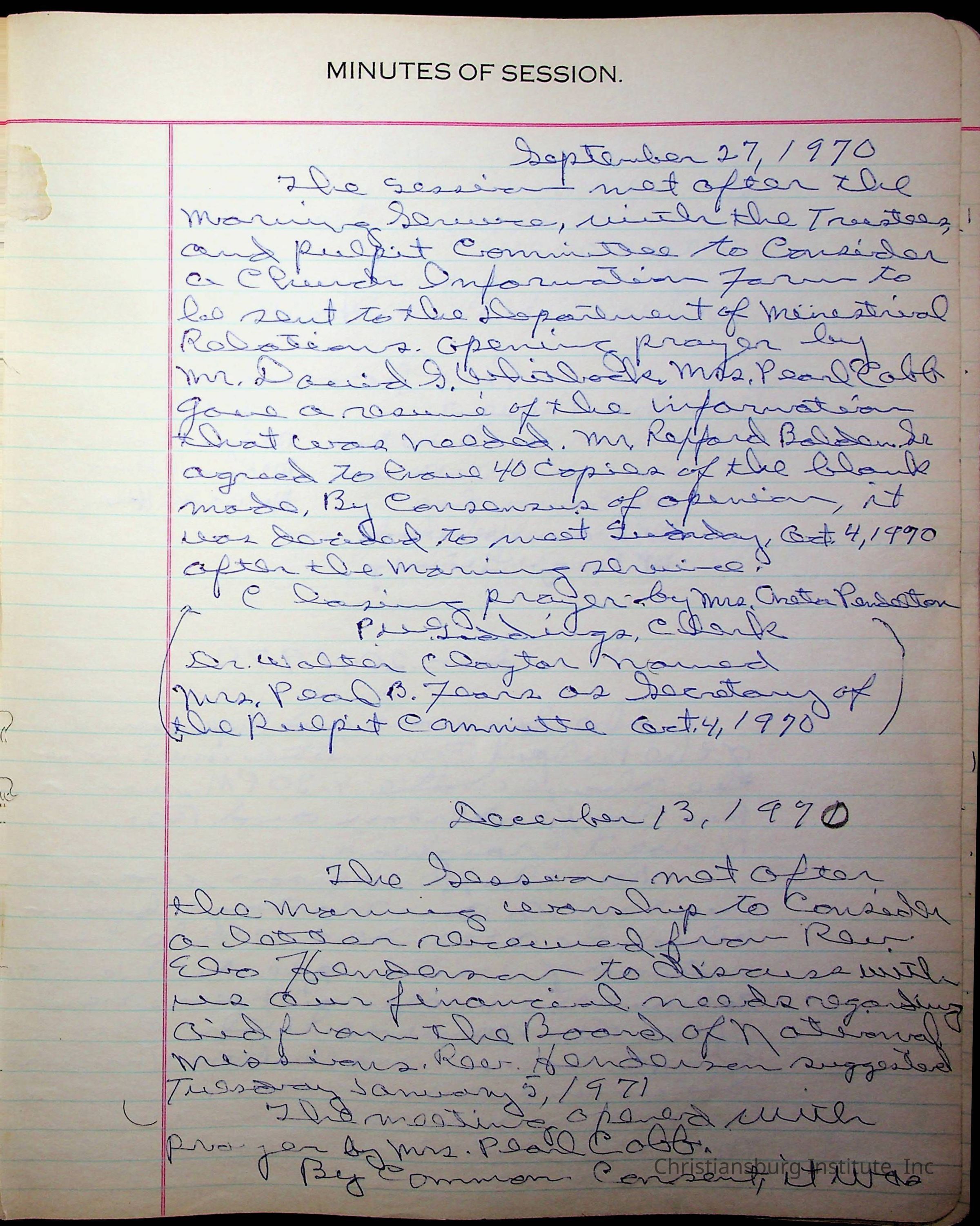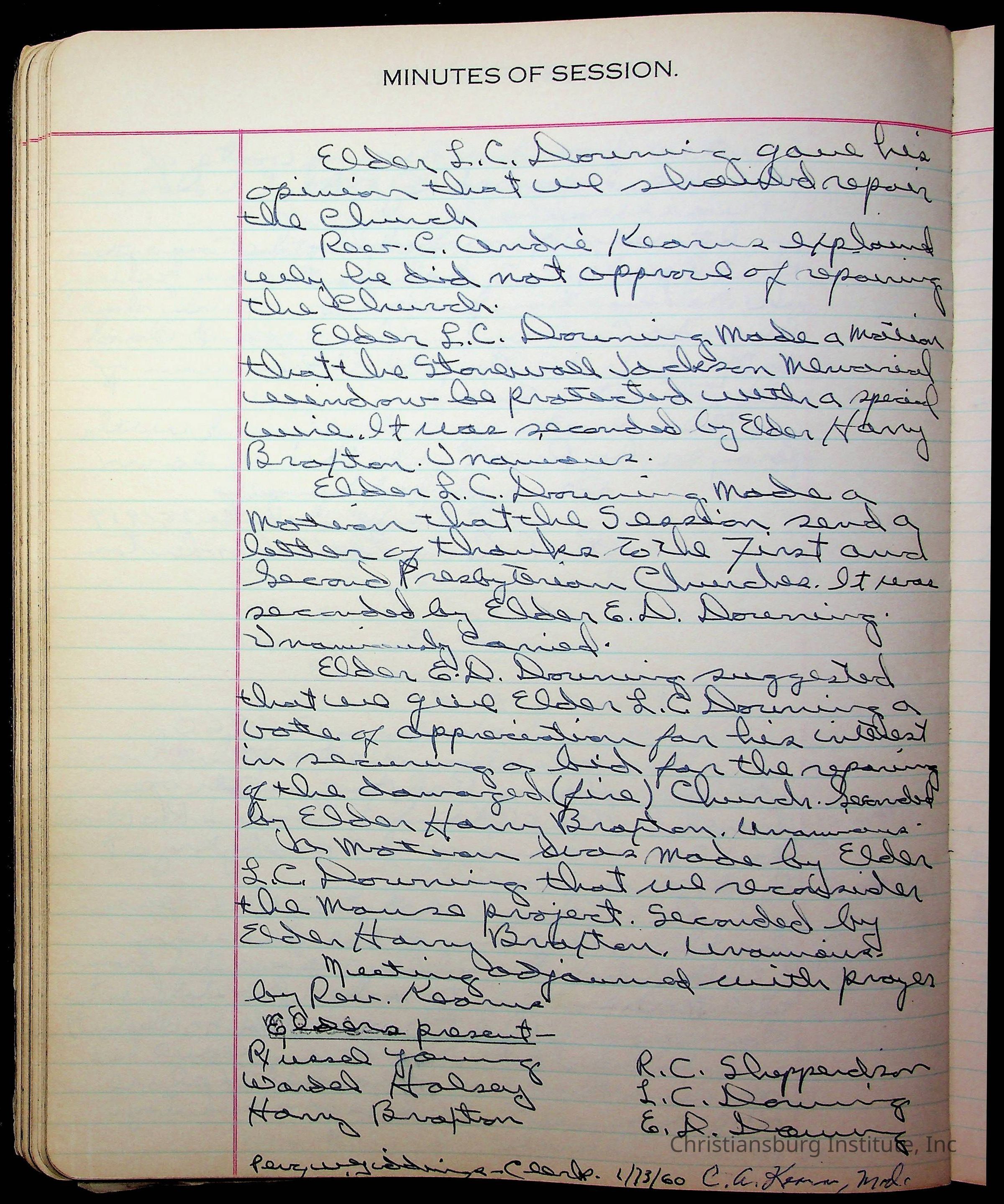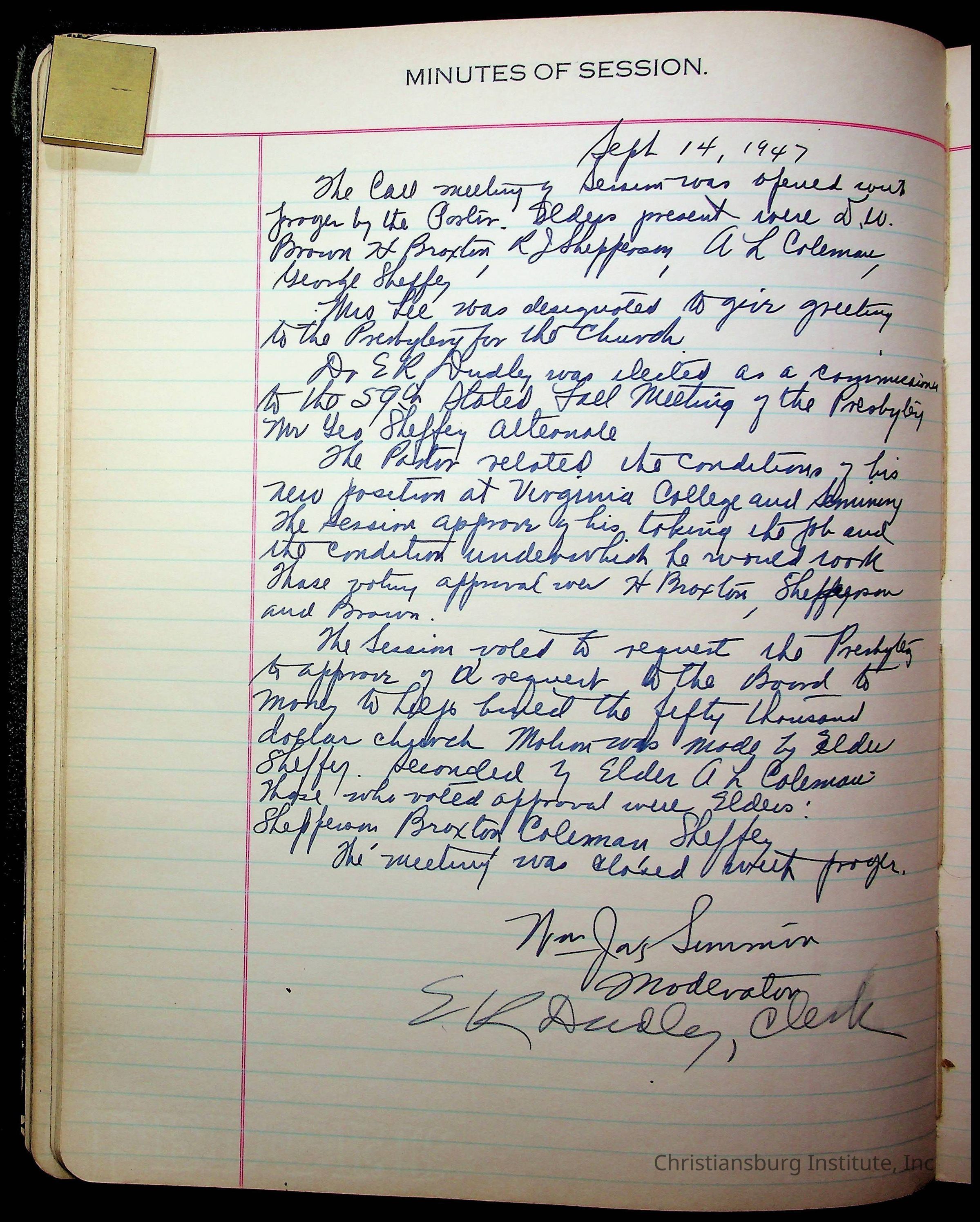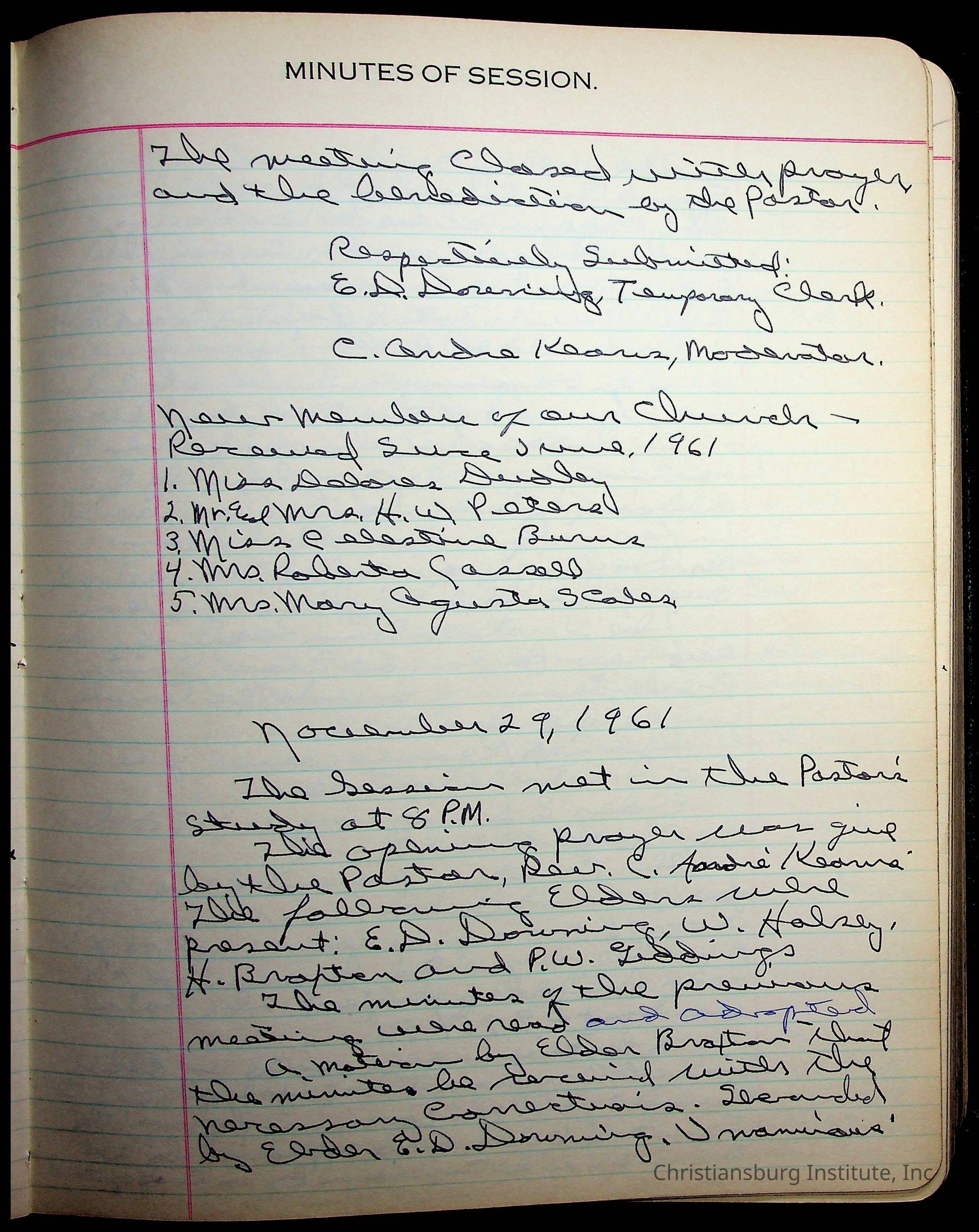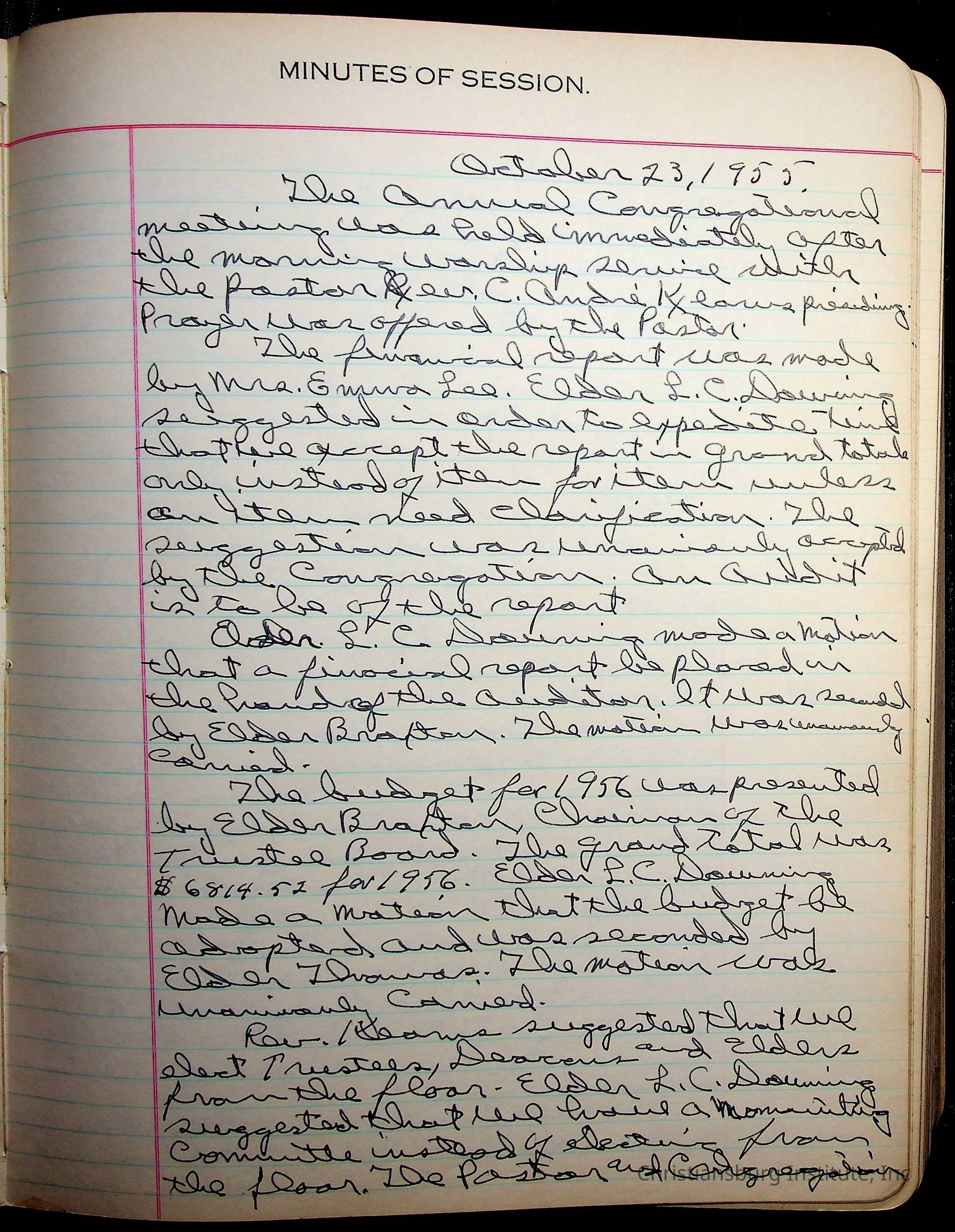 The session minutes for the Fifth Avenue Presbyterian Church from the years 1942-1972.Collection