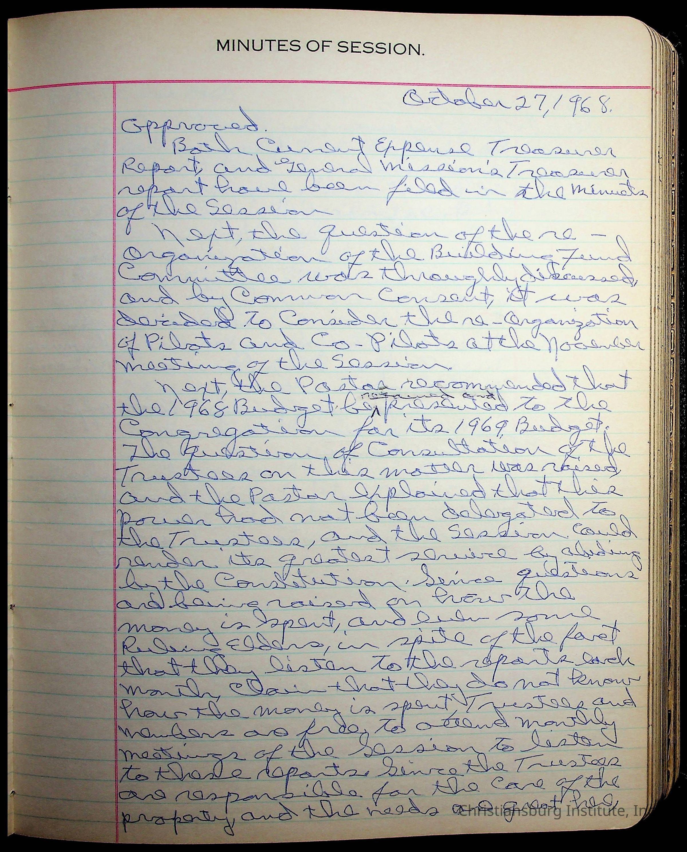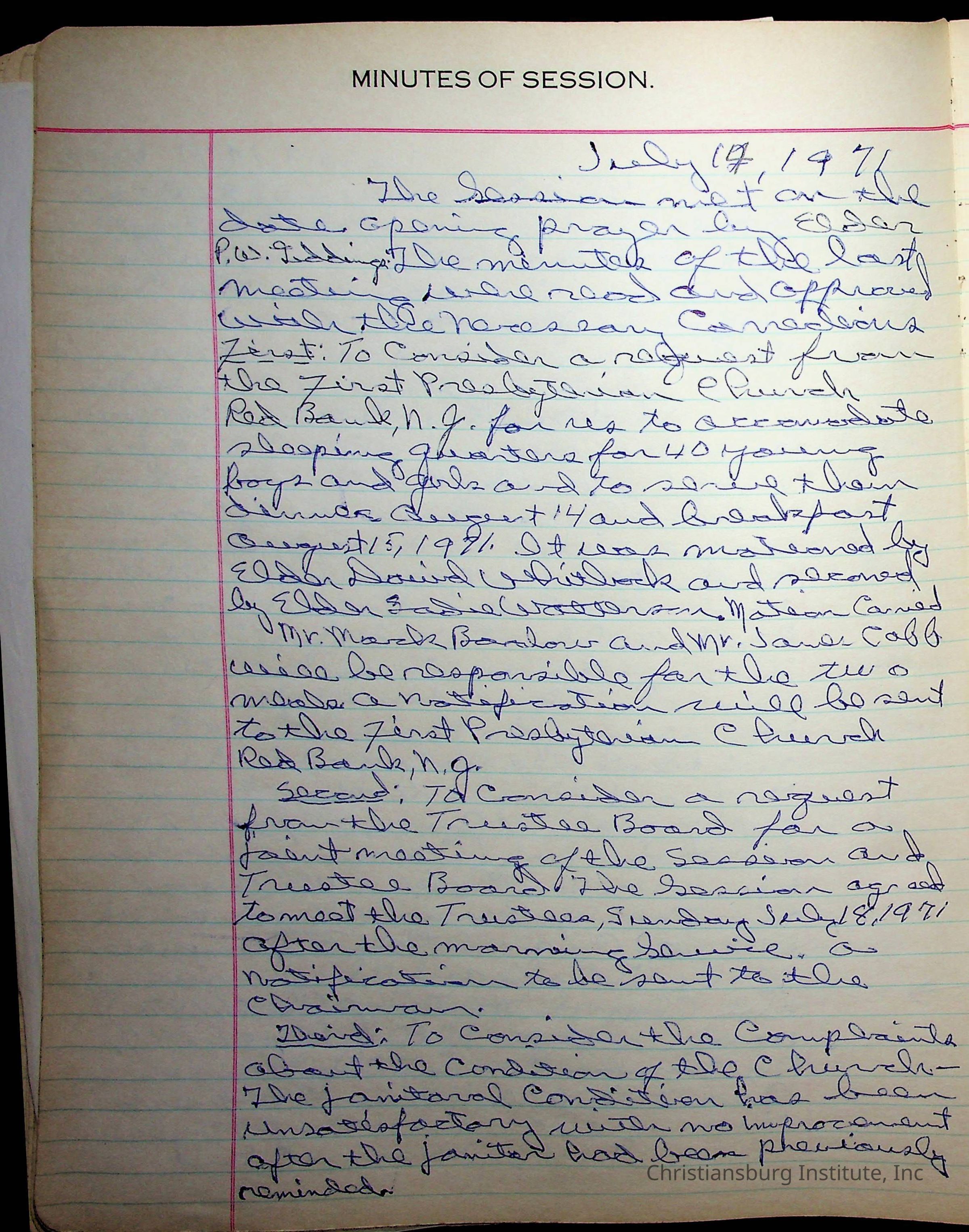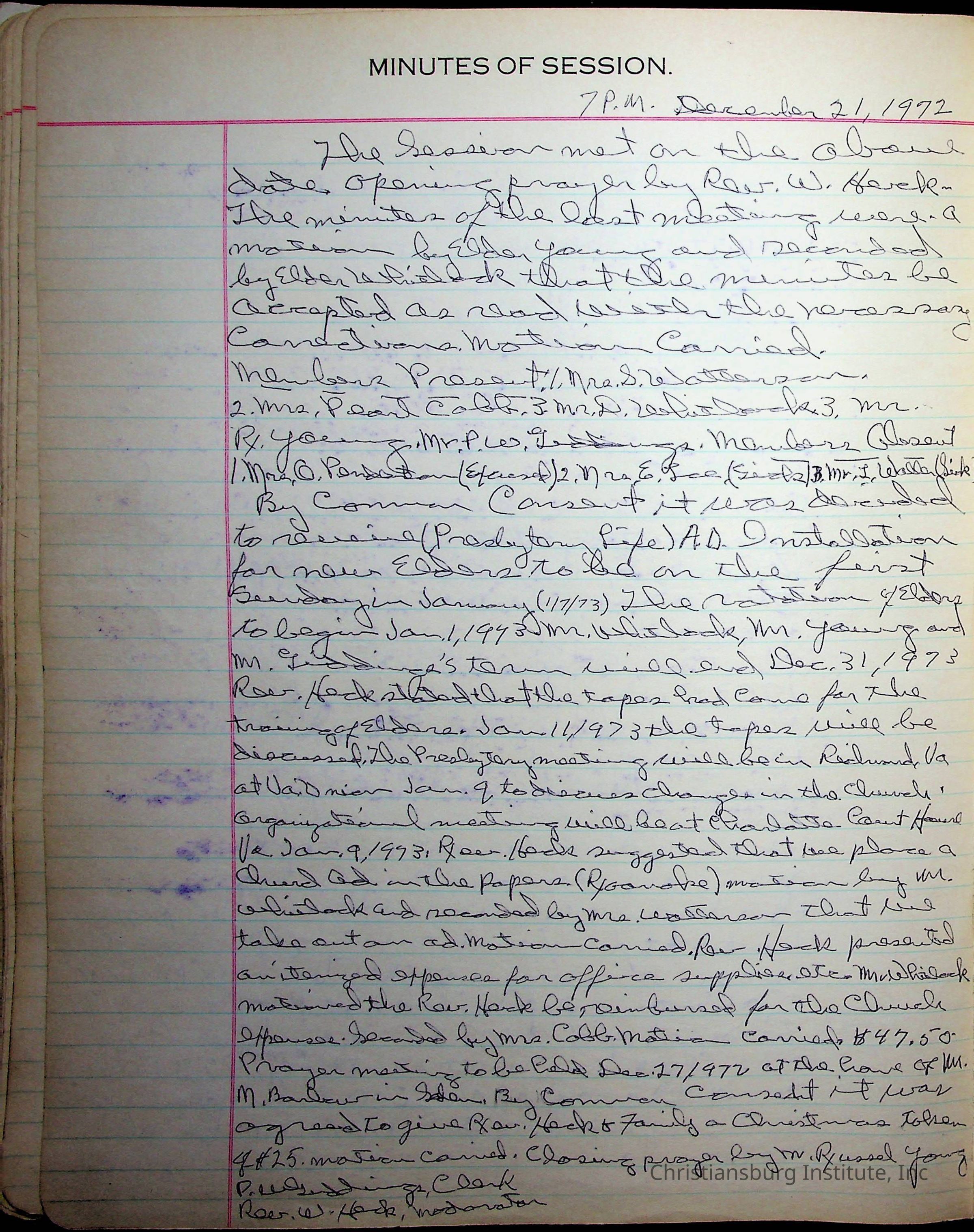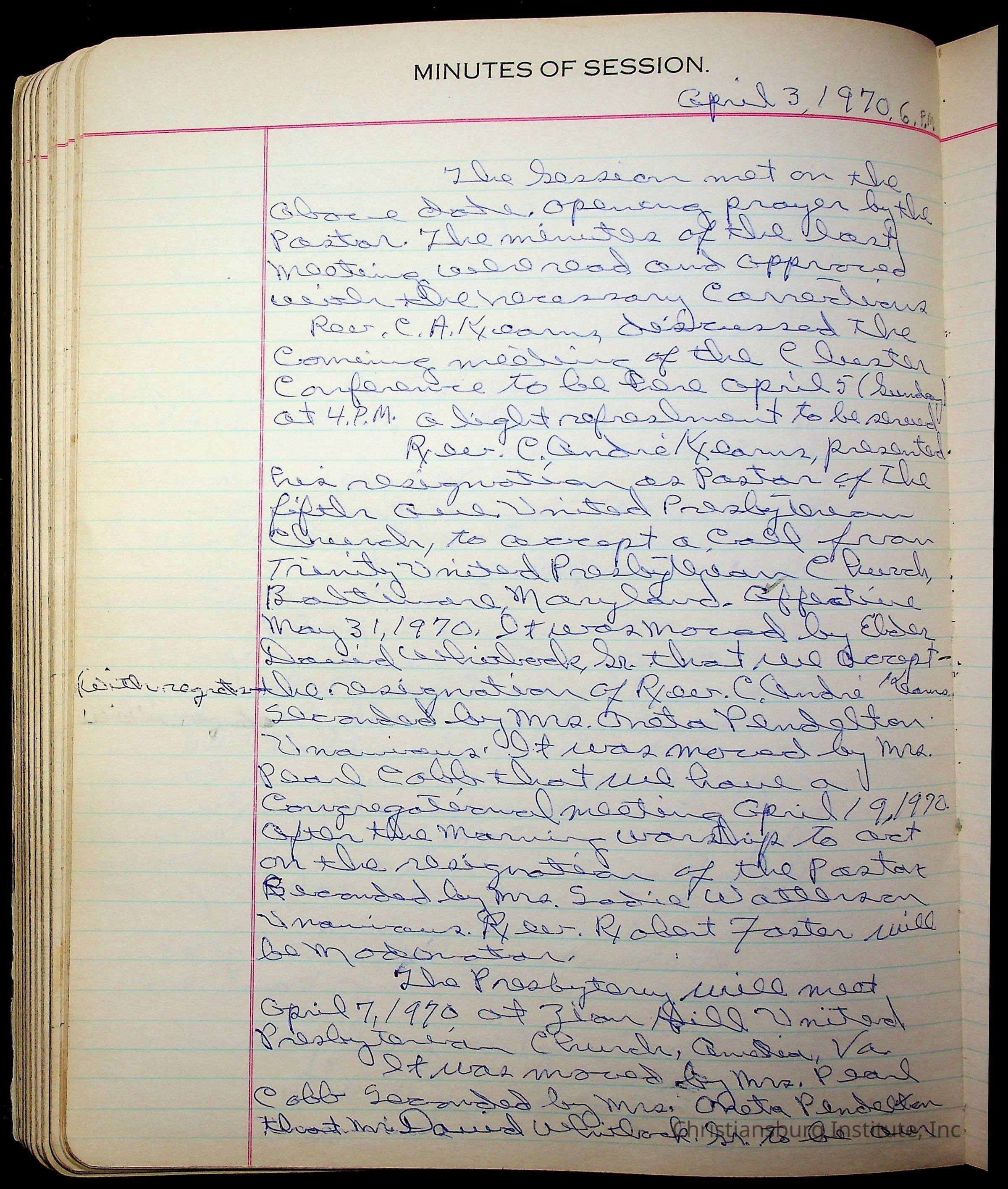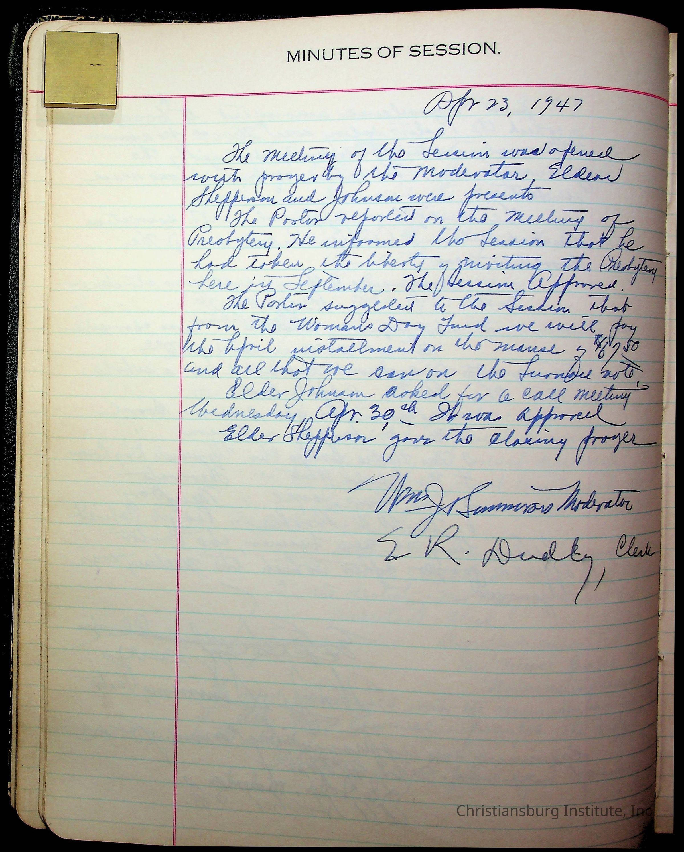 The session minutes for the Fifth Avenue Presbyterian Church from the years 1942-1972.Collection