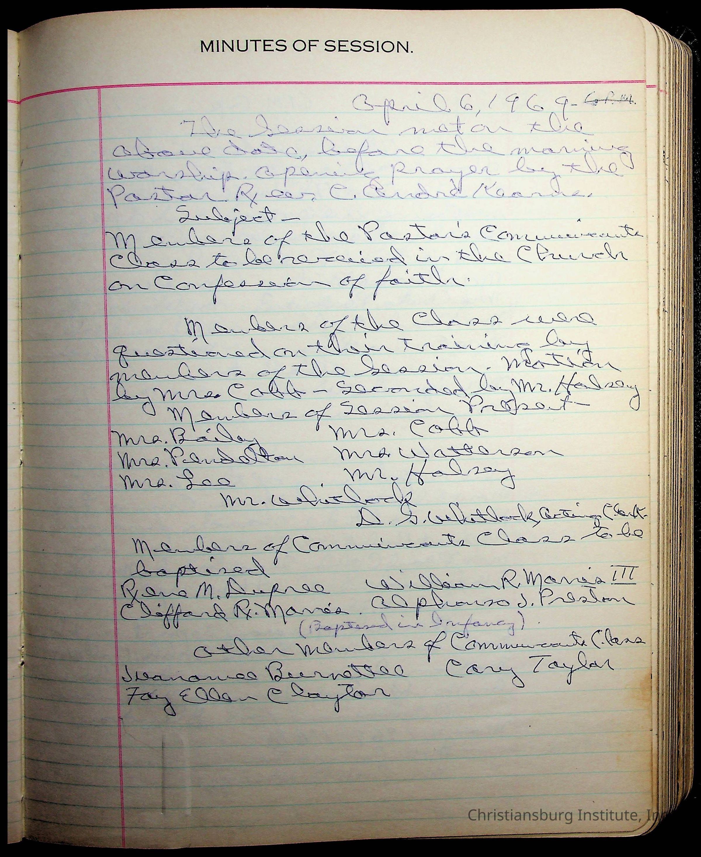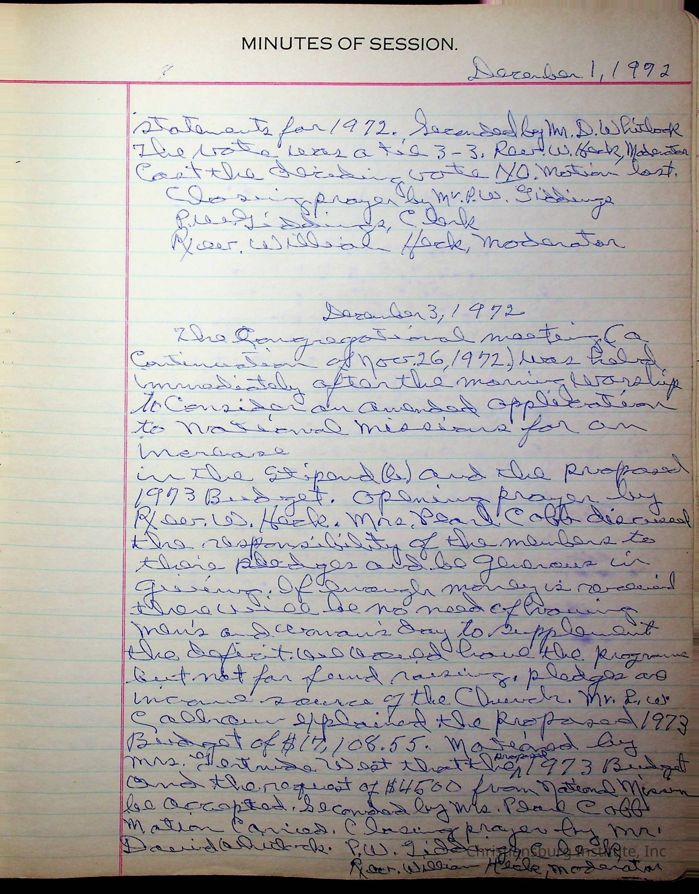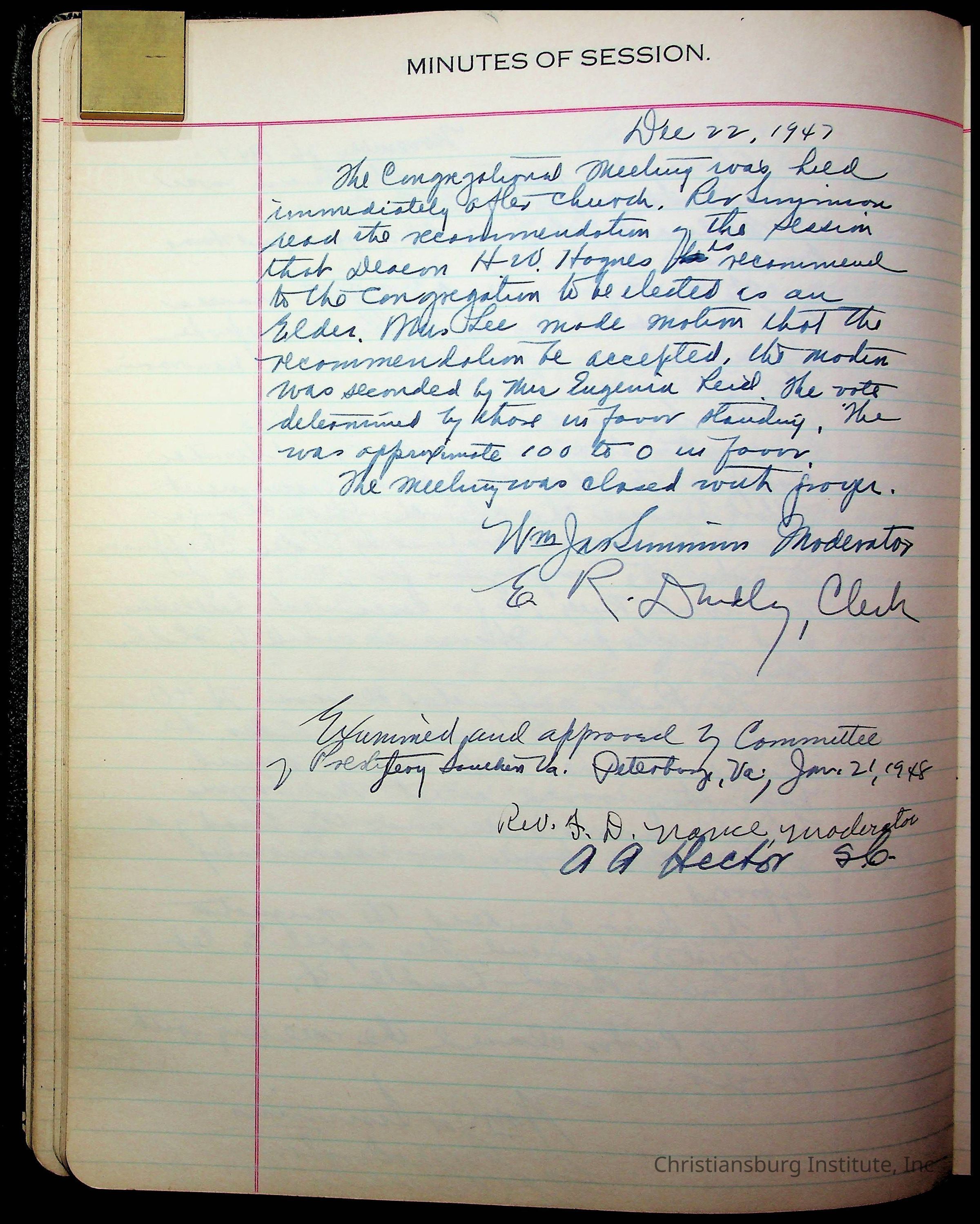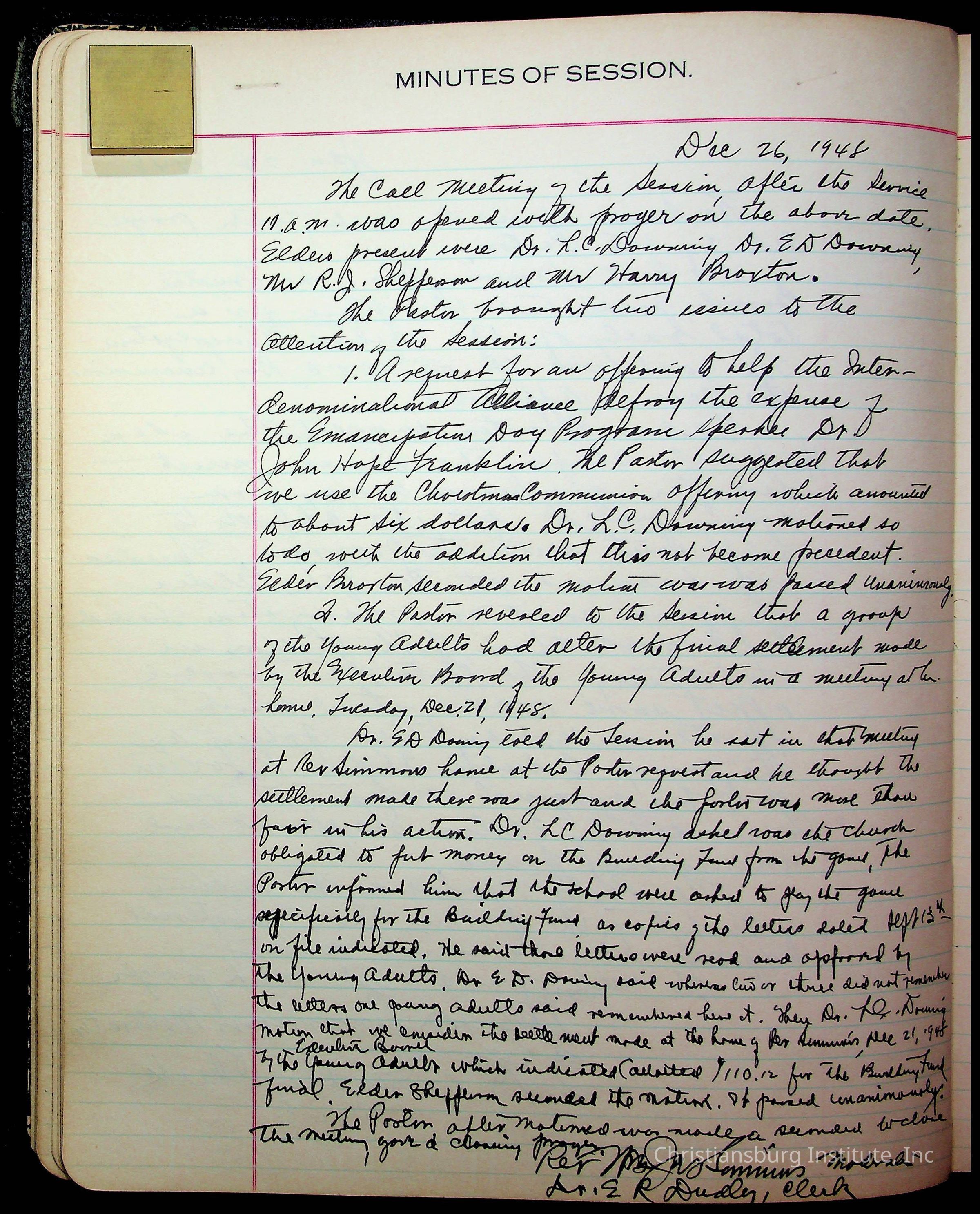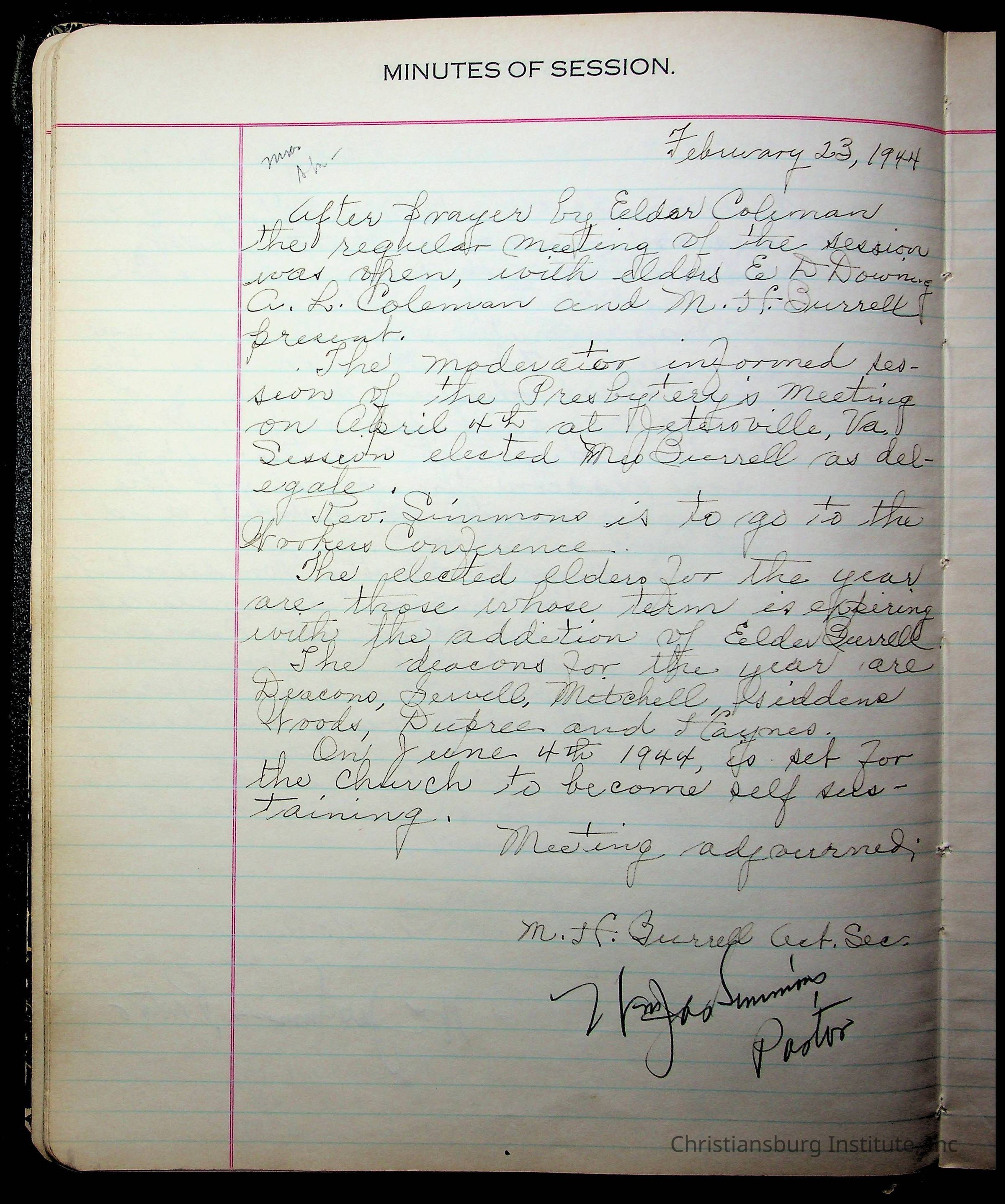 The session minutes for the Fifth Avenue Presbyterian Church from the years 1942-1972.Collection
