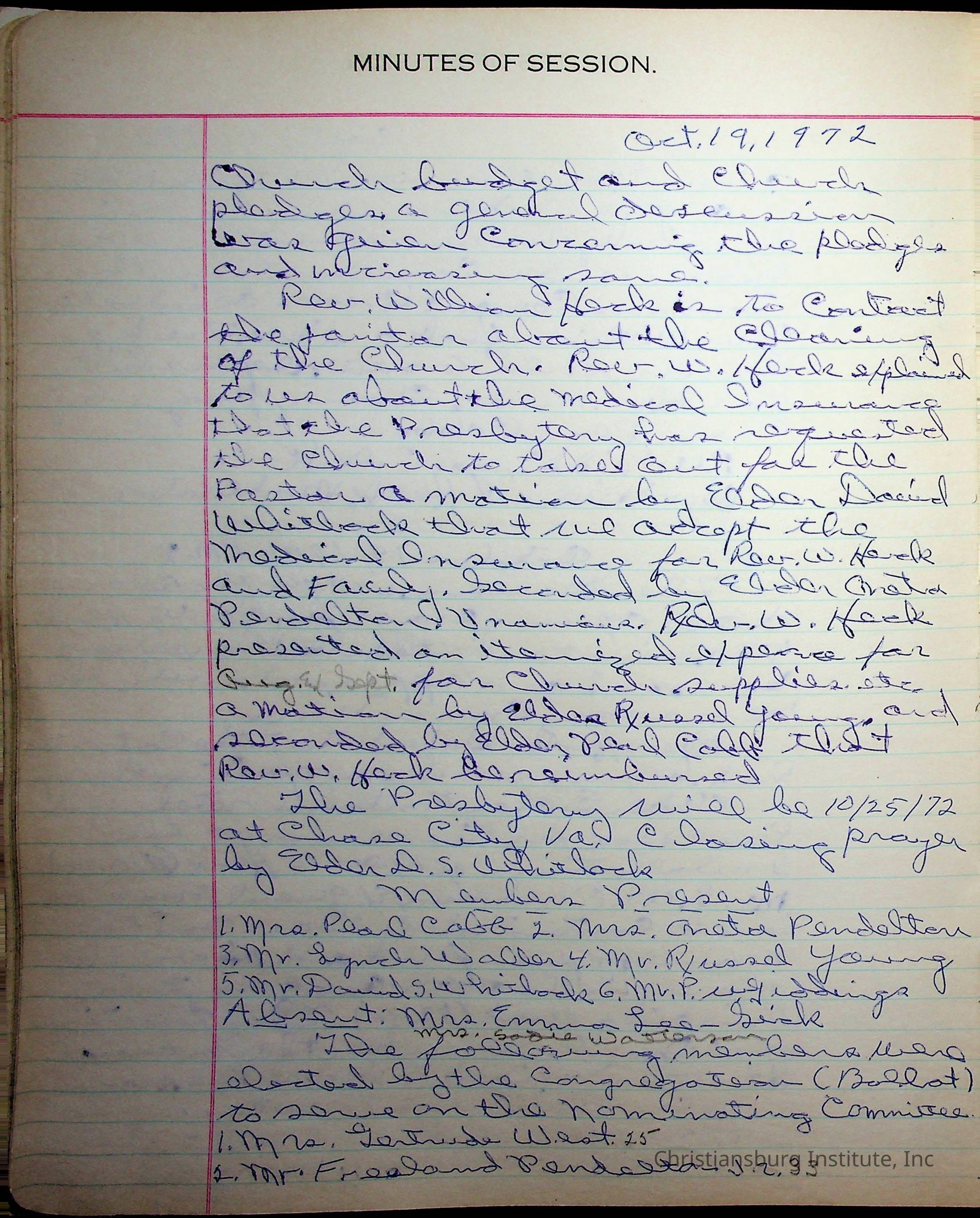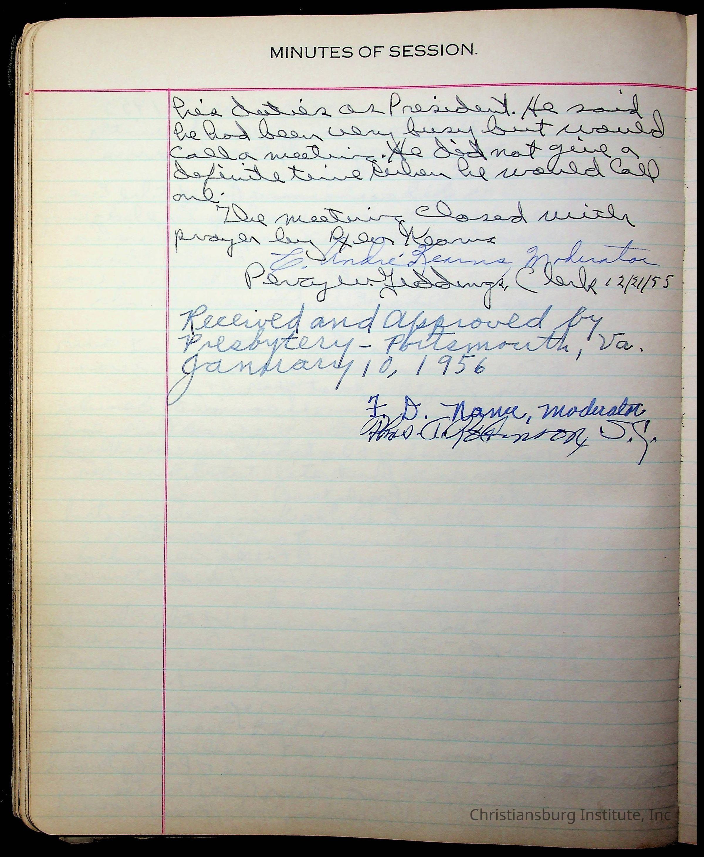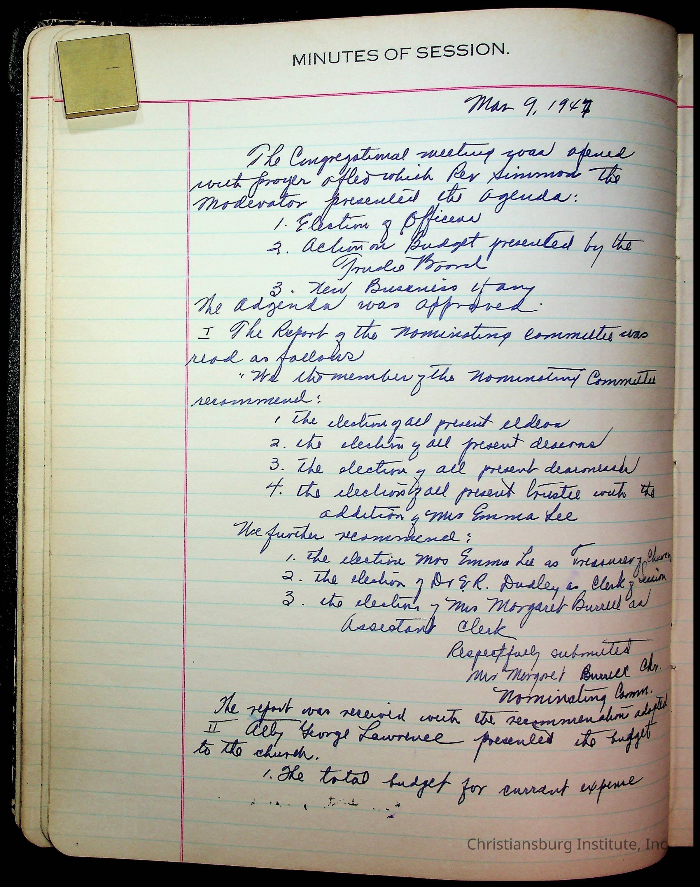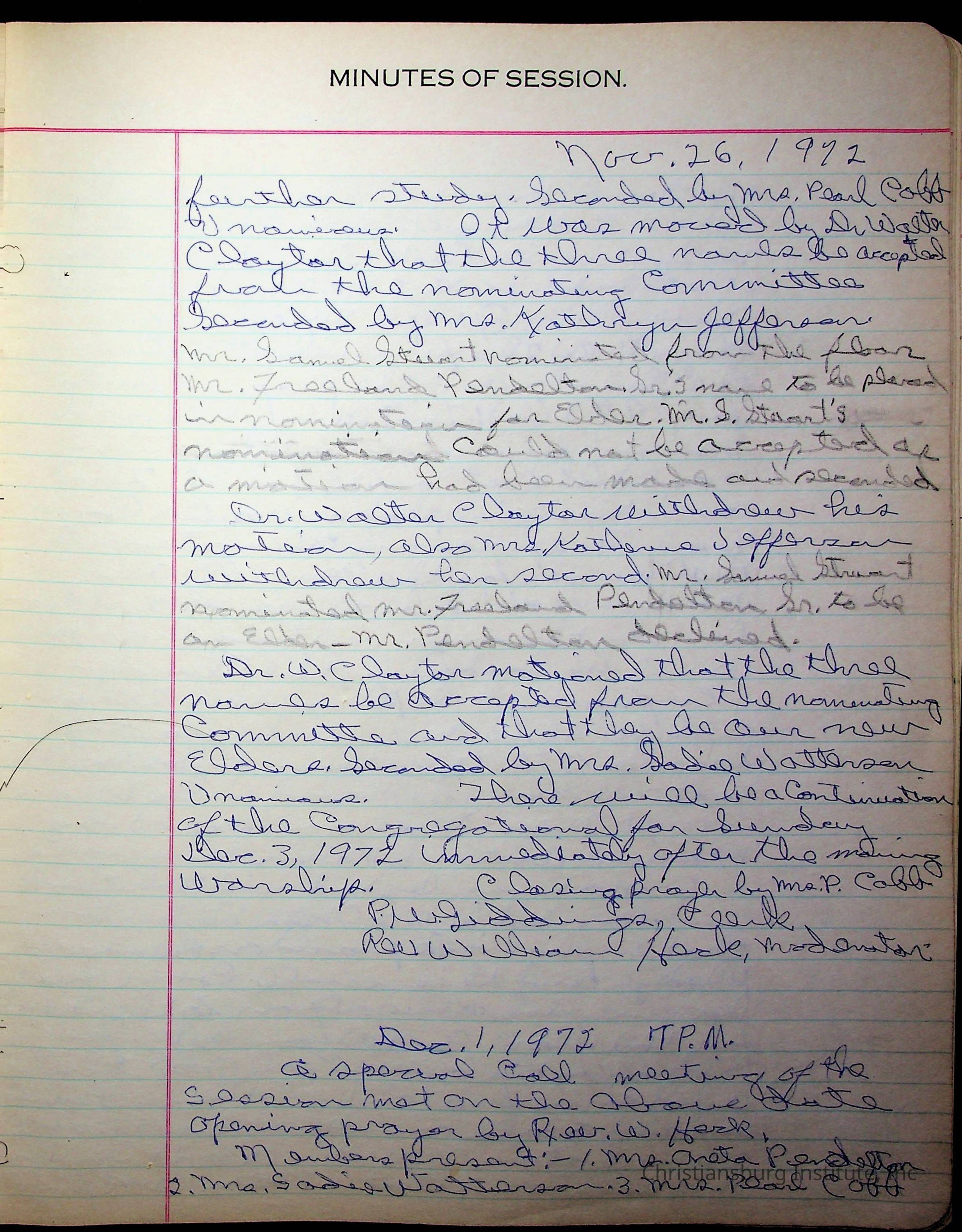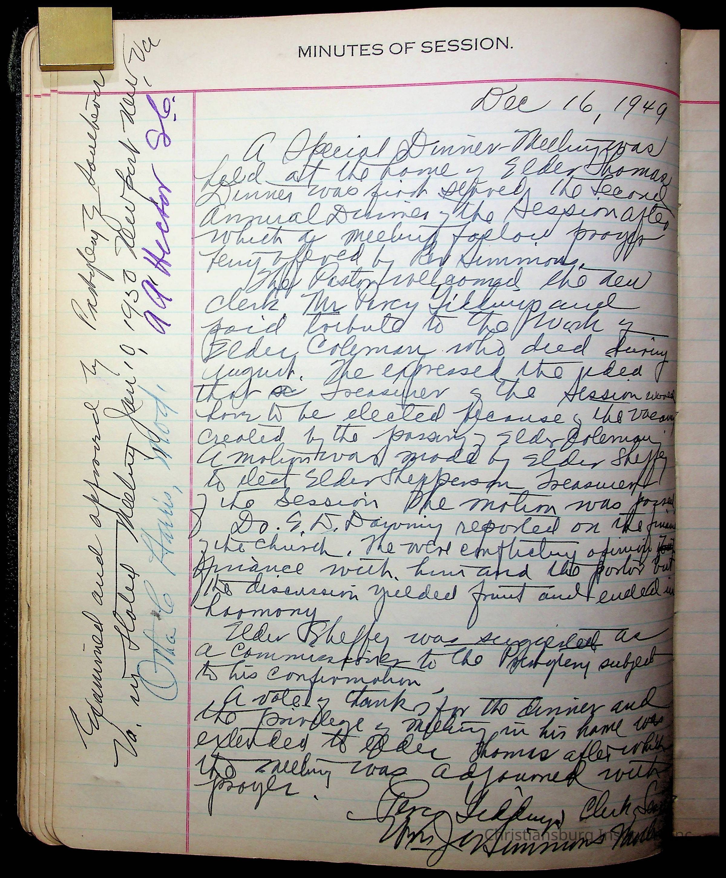 The session minutes for the Fifth Avenue Presbyterian Church from the years 1942-1972.Collection