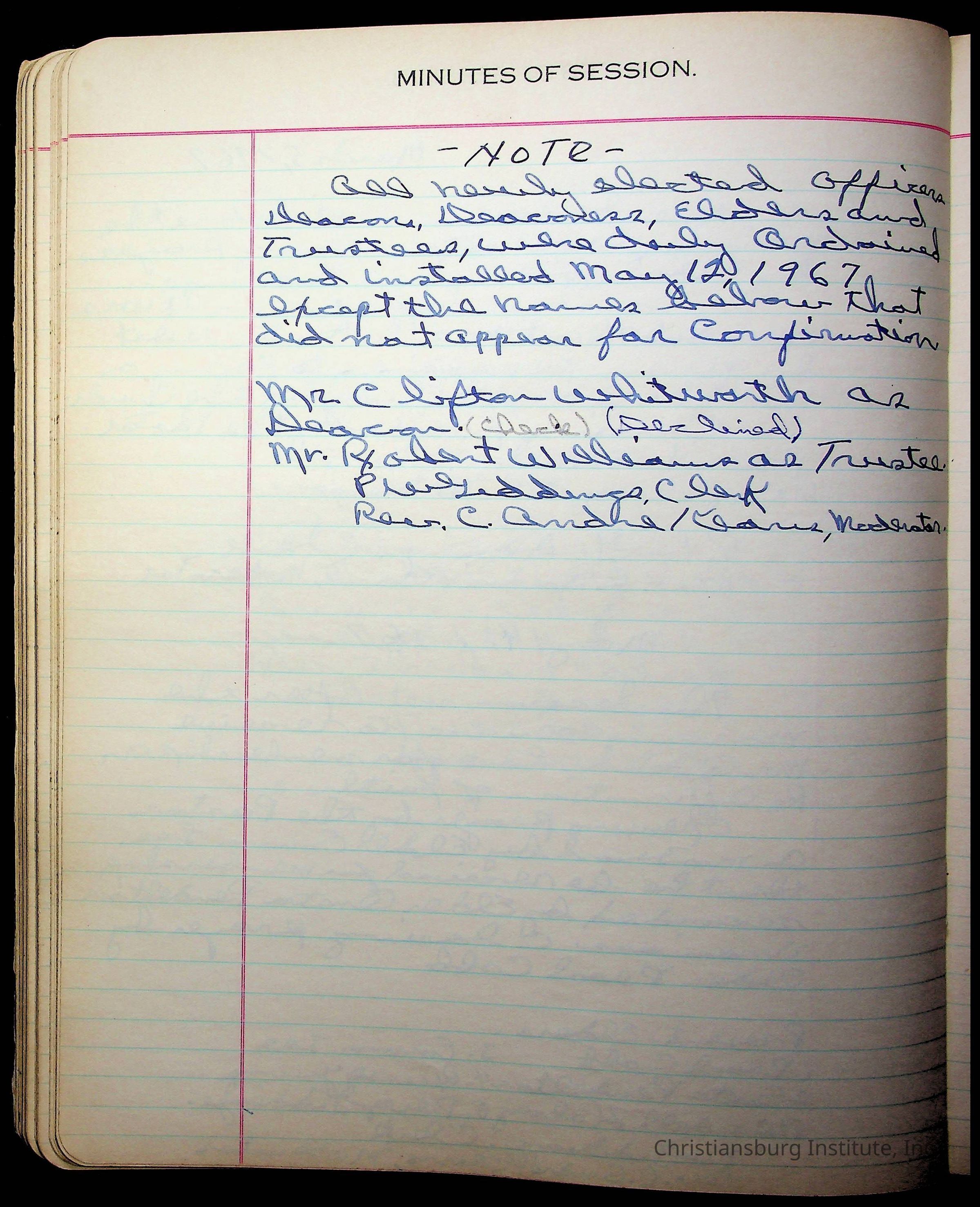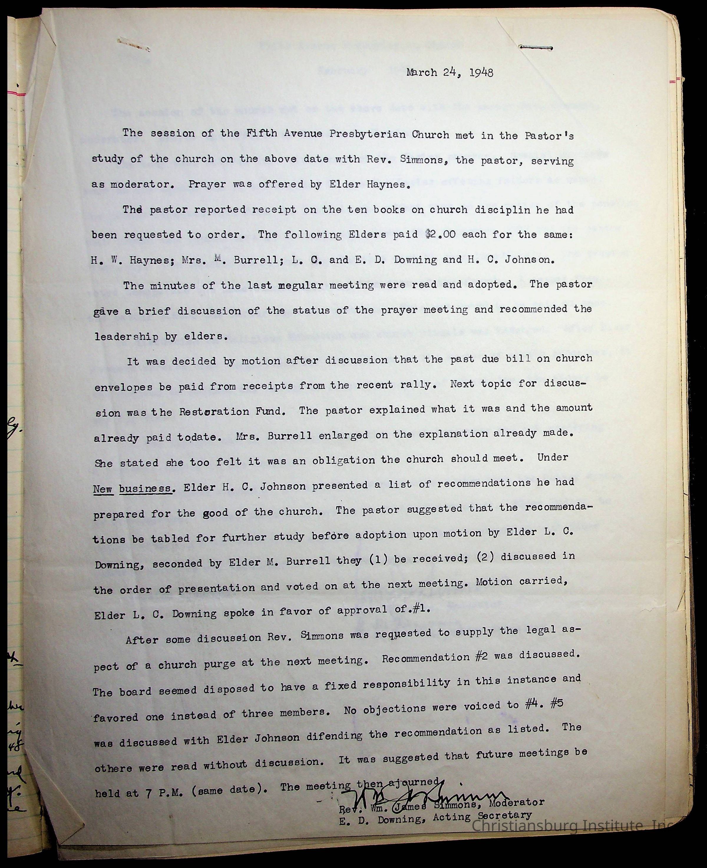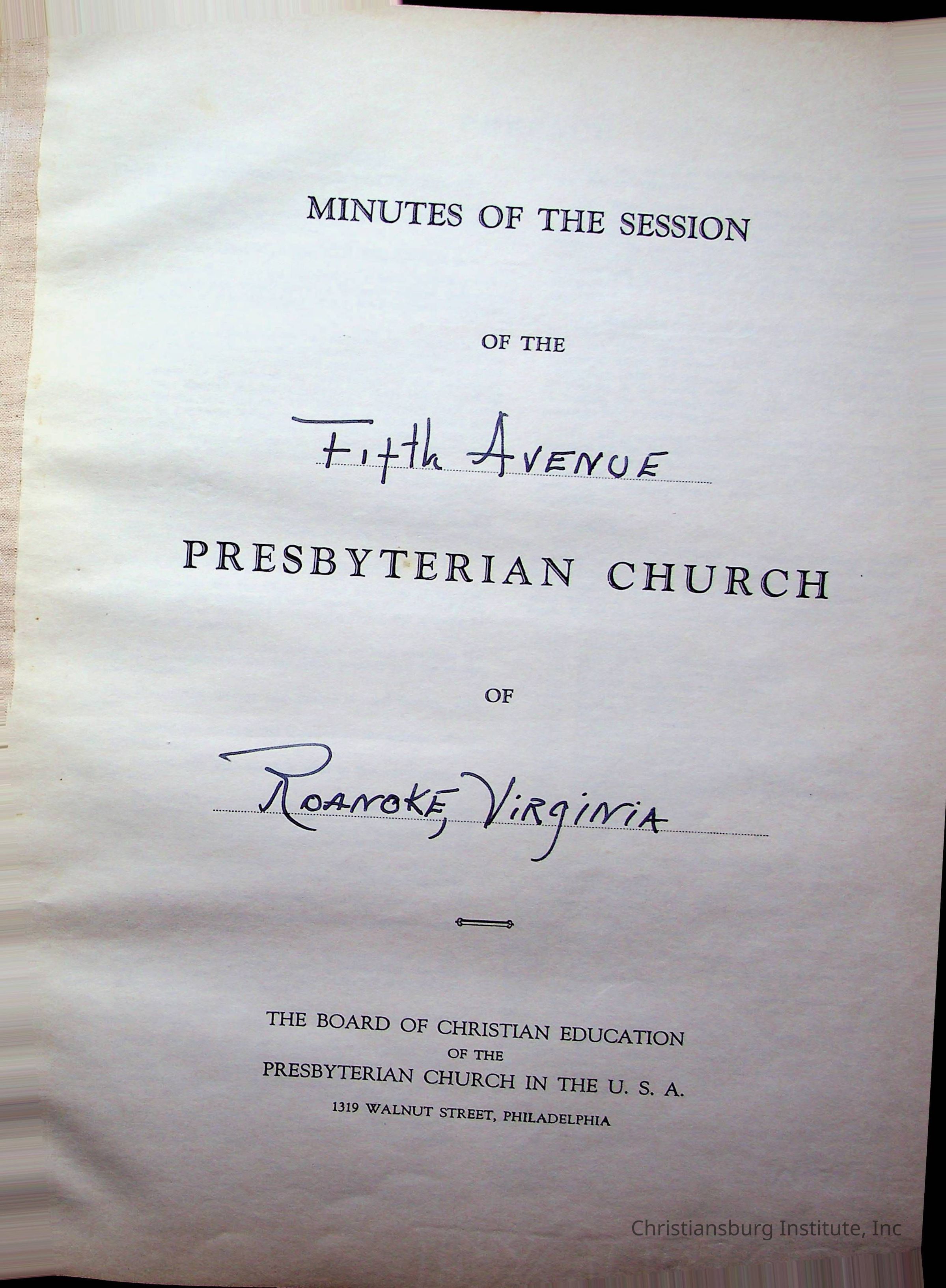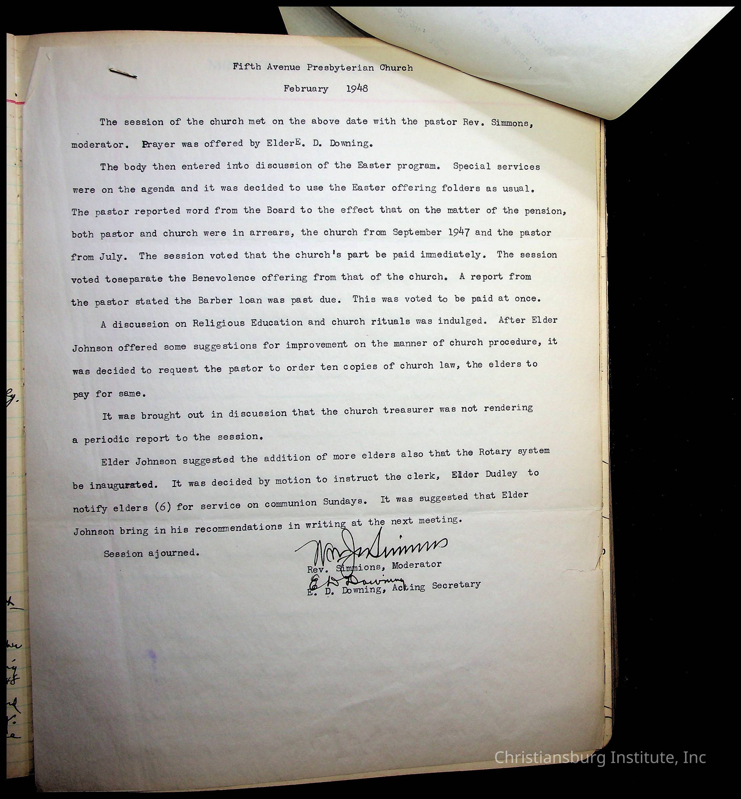 Copyright has been assigned to Christiansburg Institute Museum & Archives by Fifth Avenue Presbyterian Church. For permission to publish materials created by the donor, contact CIMA@christiansburginstitute.com. Materials not created by Fifth Avenue Presbyterian Church may still be under copyright.