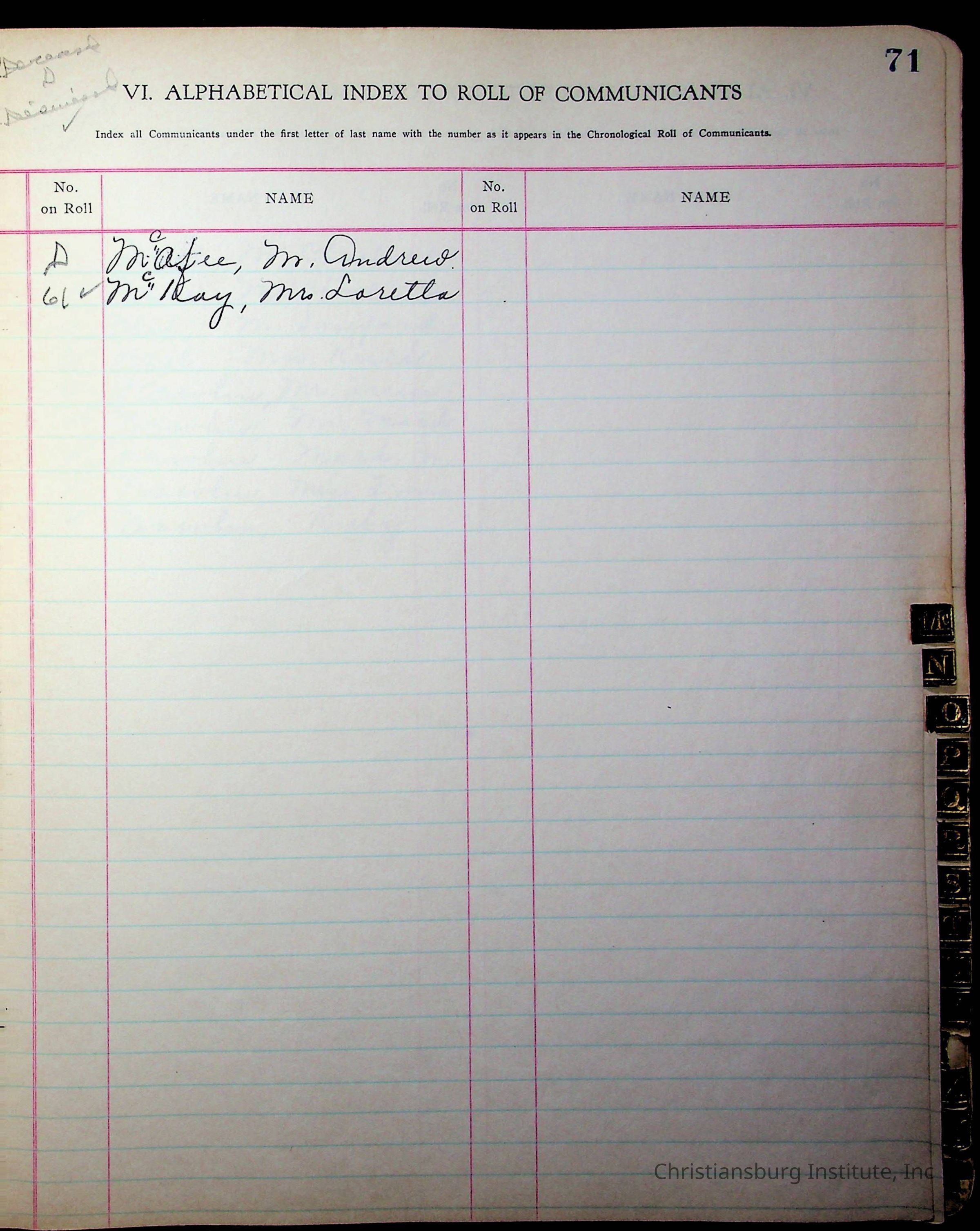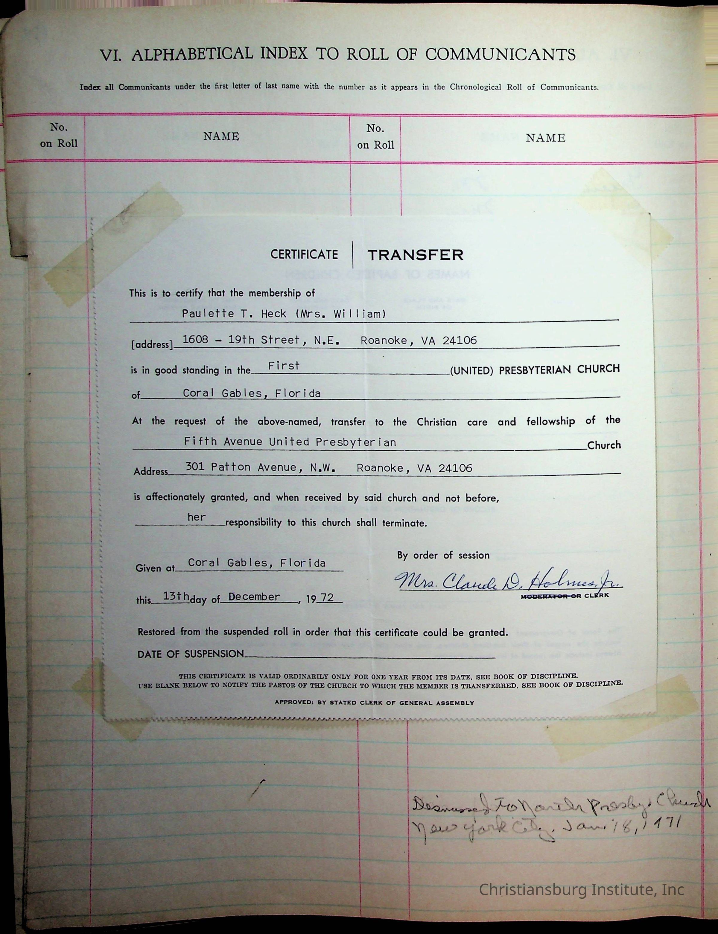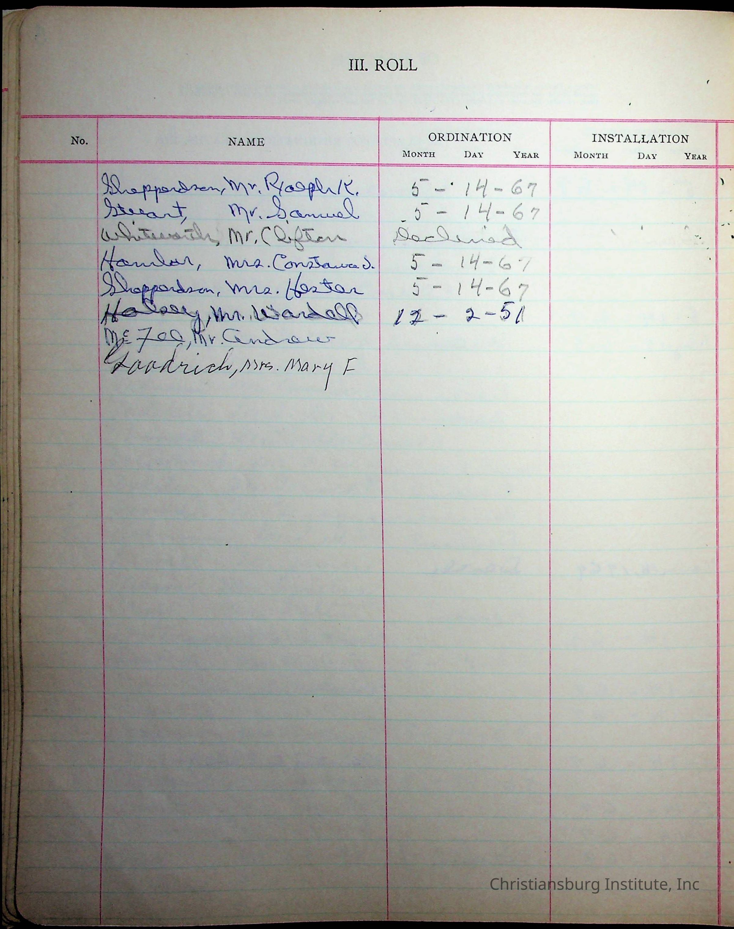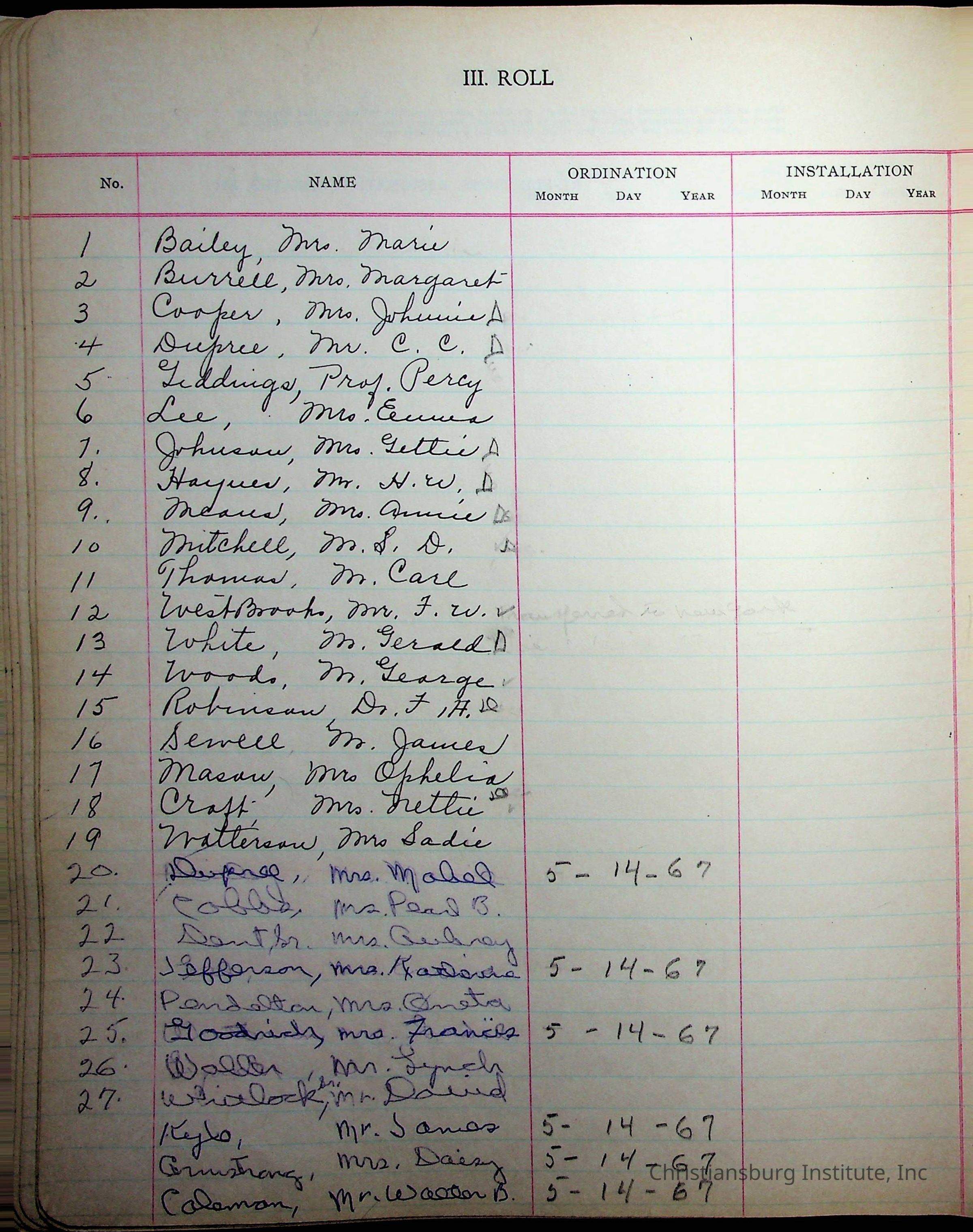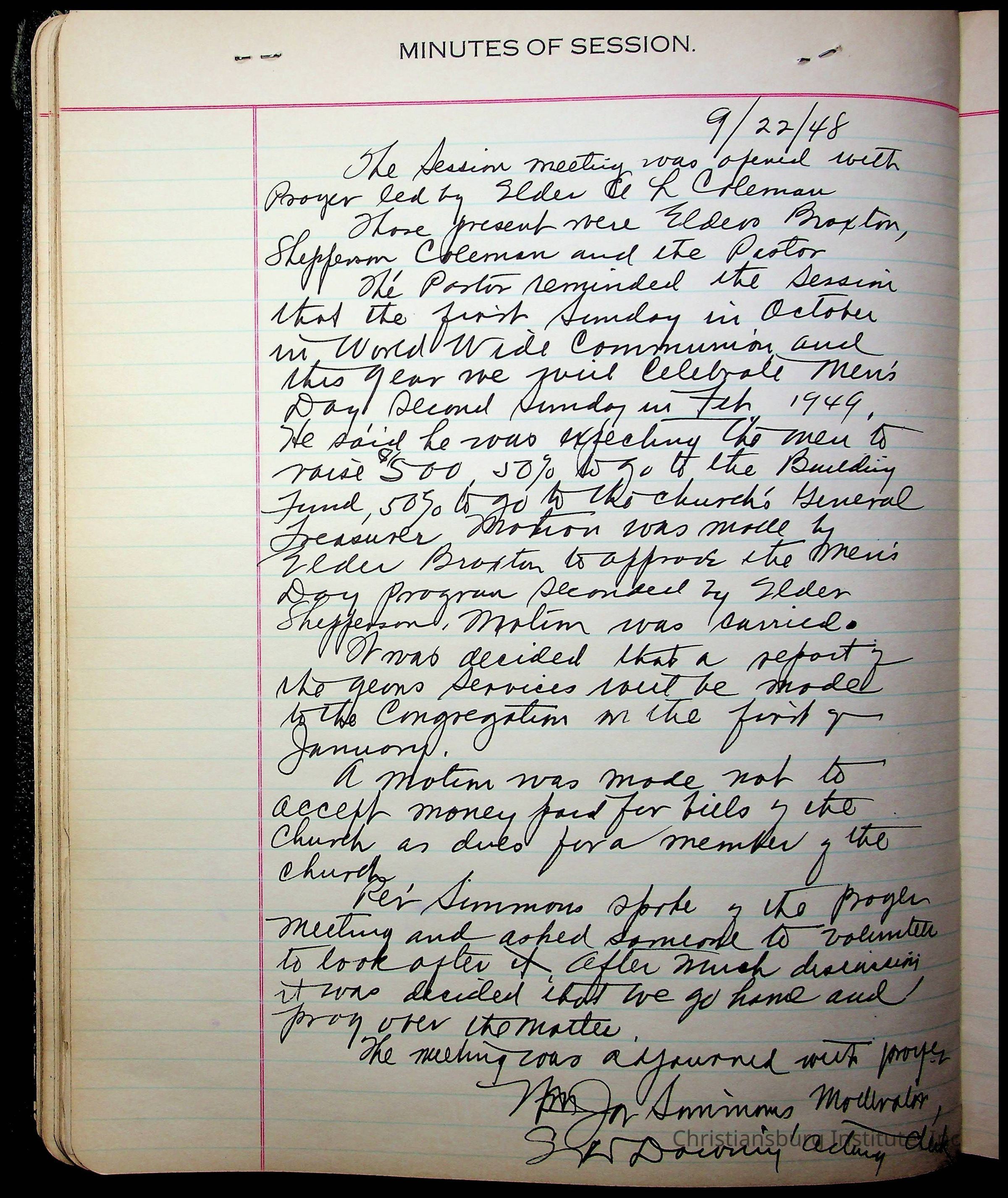 Copyright has been assigned to Christiansburg Institute Museum & Archives by Fifth Avenue Presbyterian Church. For permission to publish materials created by the donor, contact CIMA@christiansburginstitute.com. Materials not created by Fifth Avenue Presbyterian Church may still be under copyright.