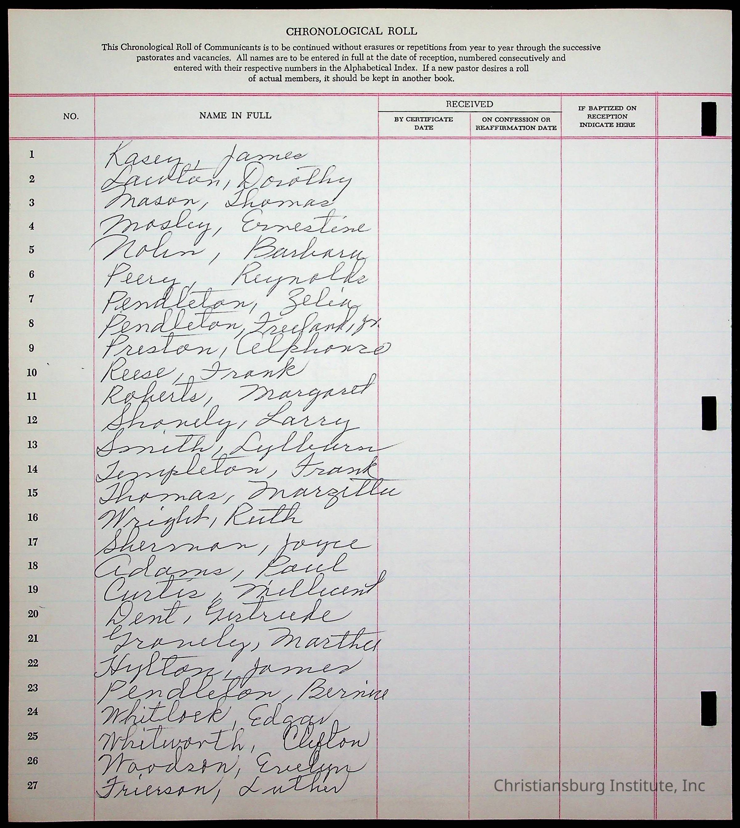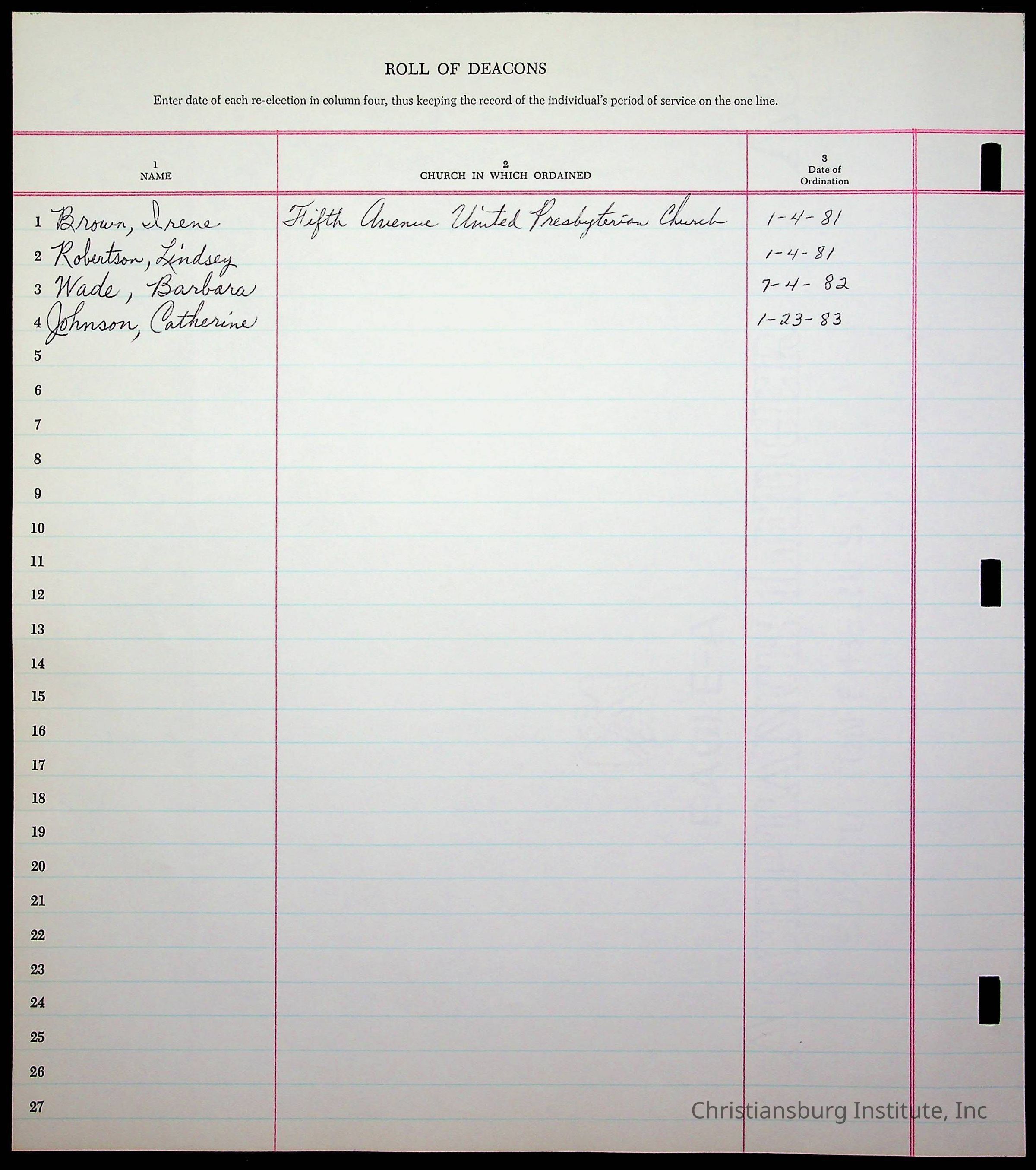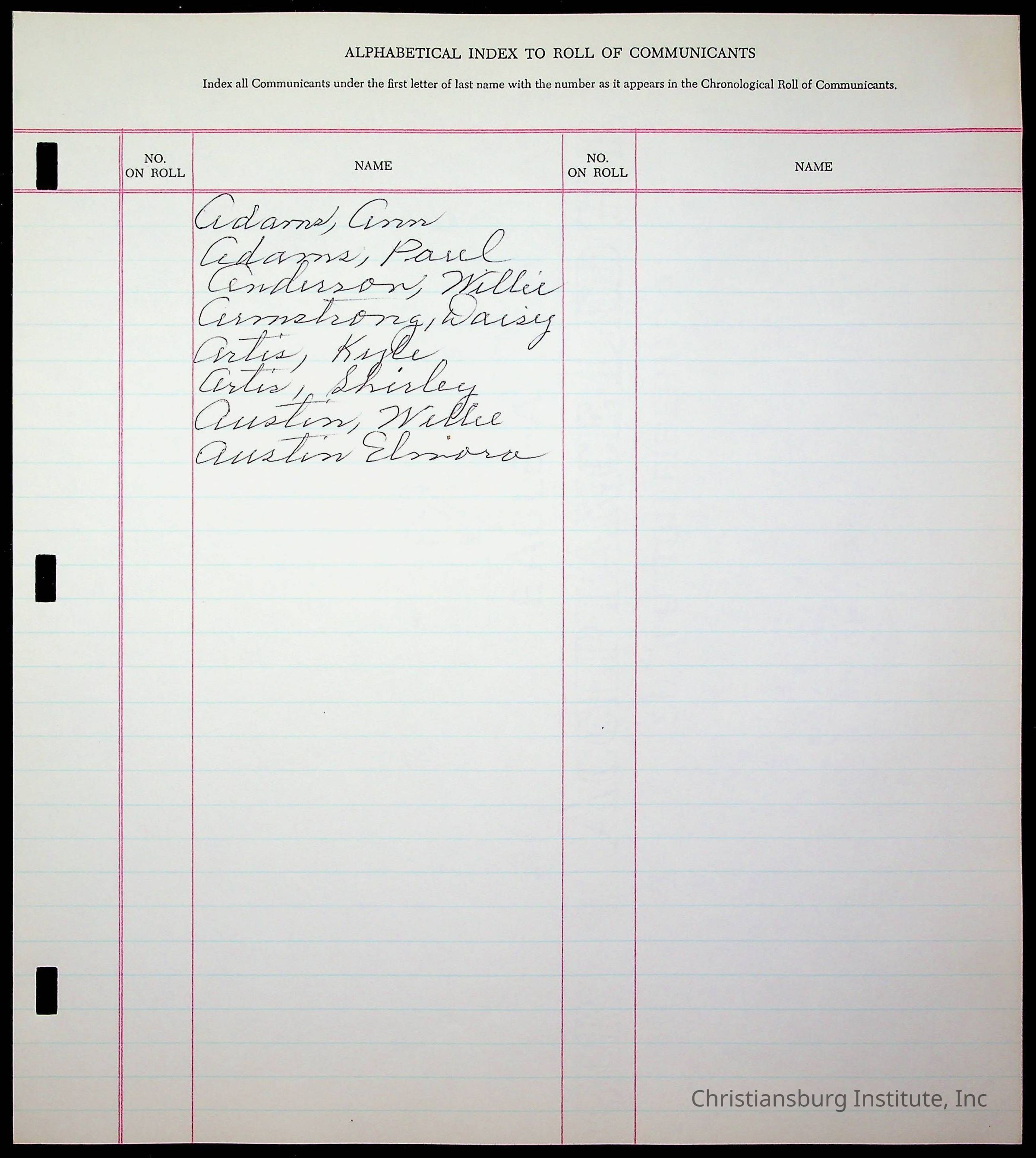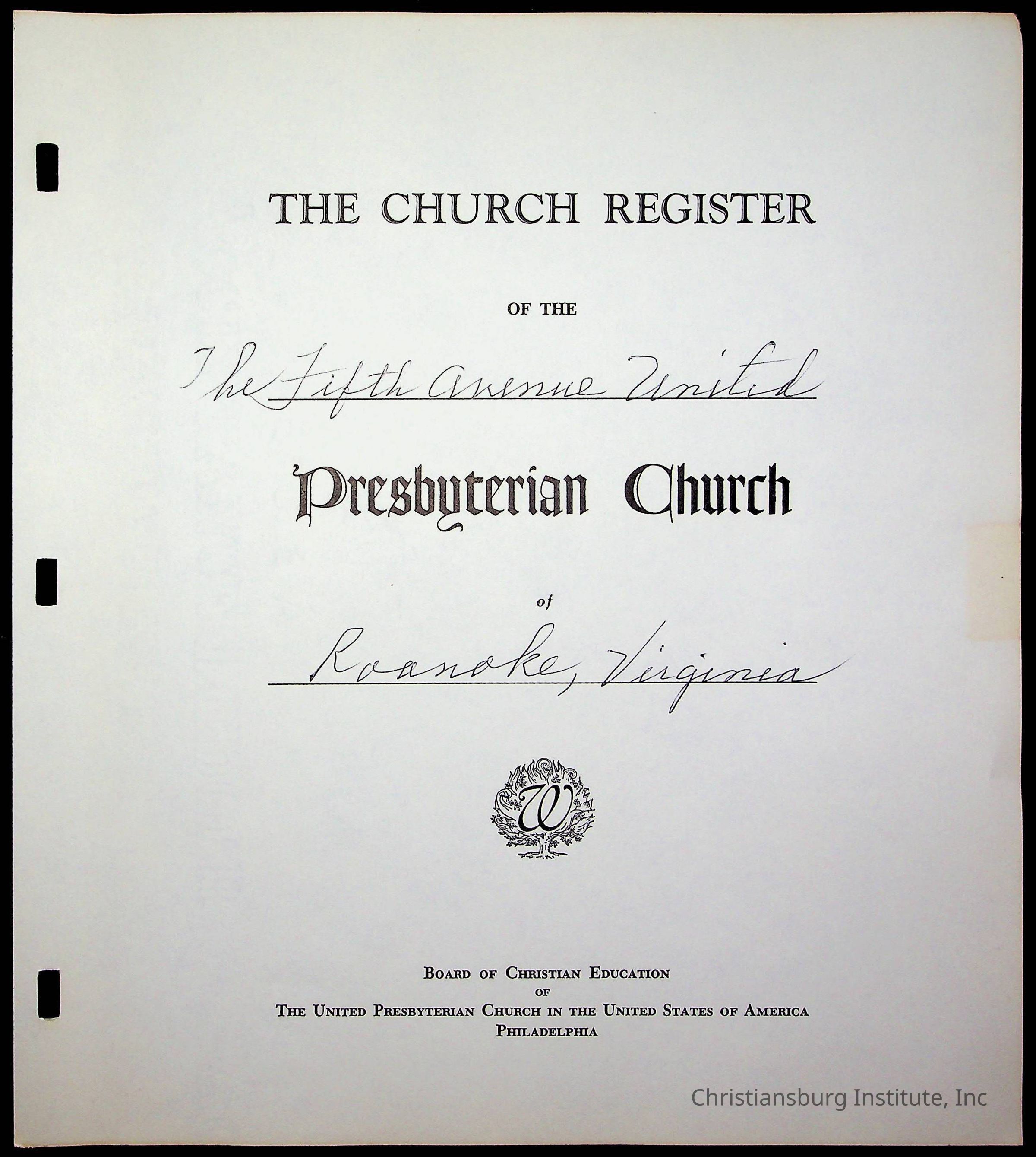 Copyright has been assigned to Christiansburg Institute Museum & Archives by Fifth Avenue Presbyterian Church. For permission to publish materials created by the donor, contact CIMA@christiansburginstitute.com. Materials not created by Fifth Avenue Presbyterian Church may still be under copyright.